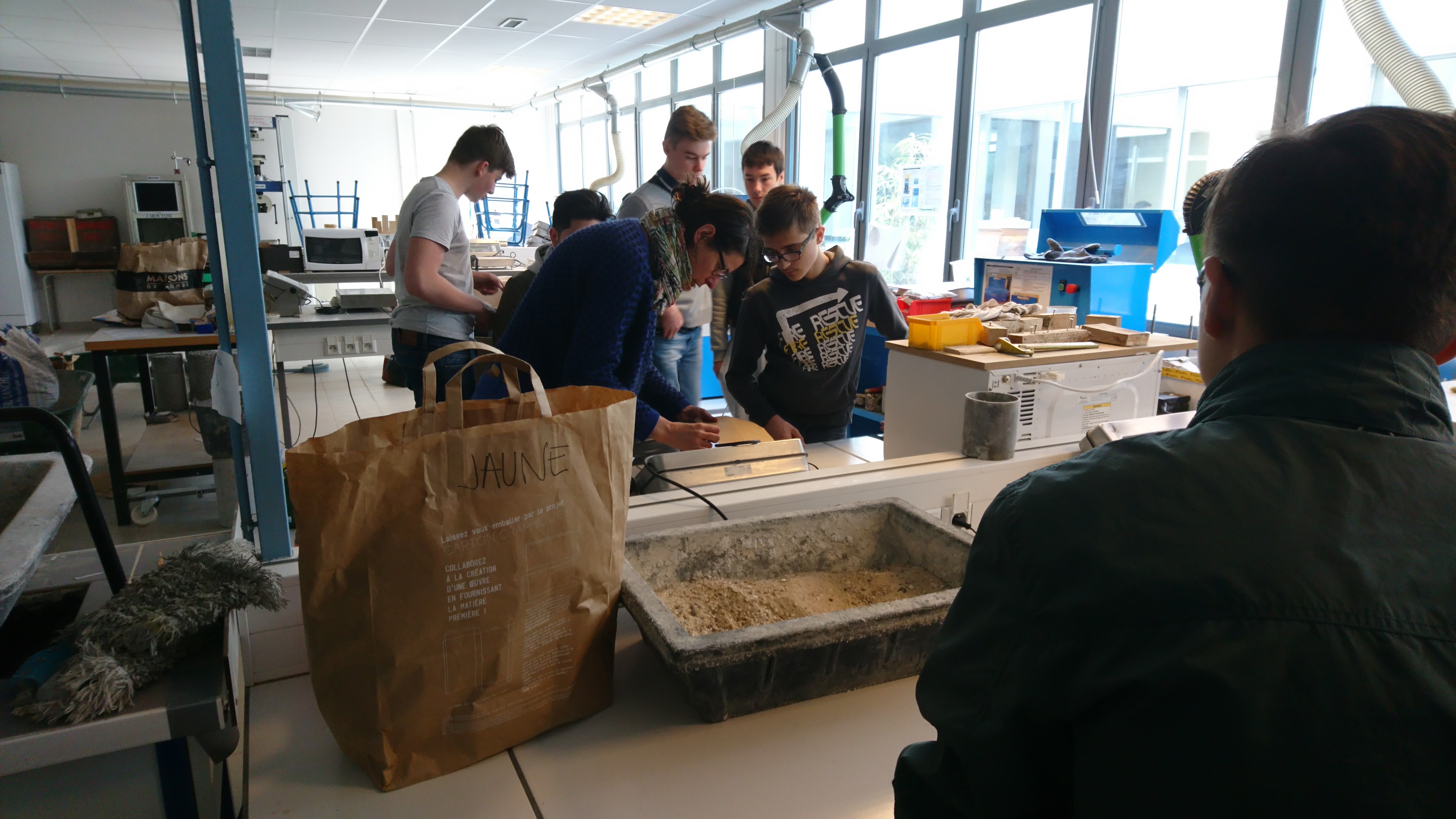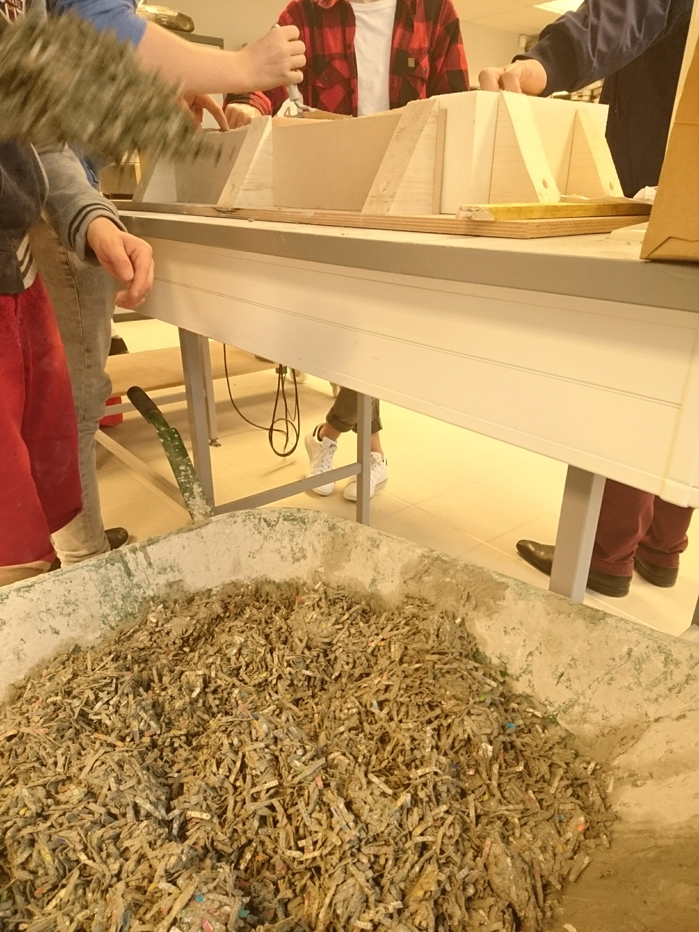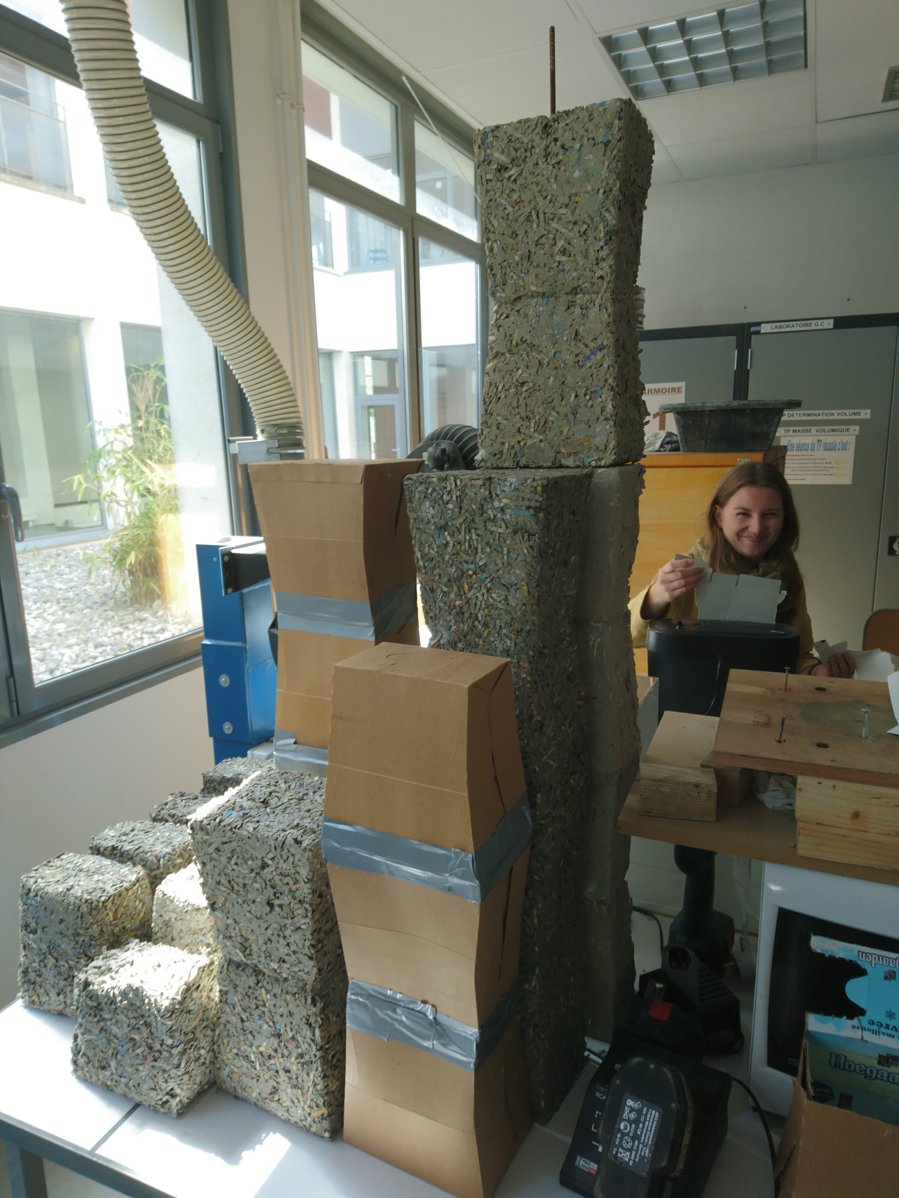 Atelier béton / carton Projet CARTON/BÉTON au Lycée SCHUMAN-PERRET (LH) avec les secondes TEB dans la classe de Benjamin Giraud /10h d’atelier Expérimentation et calcul d’une formule de « carton/béton », et réalisation de ‘Colonnes sans fin’ (à partir de packs de bière). Photos ©laire Le Breton pour ©L Minuscule Partager Imprimer(ouvre dans une nouvelle fenêtre) Imprimer Articles similaires