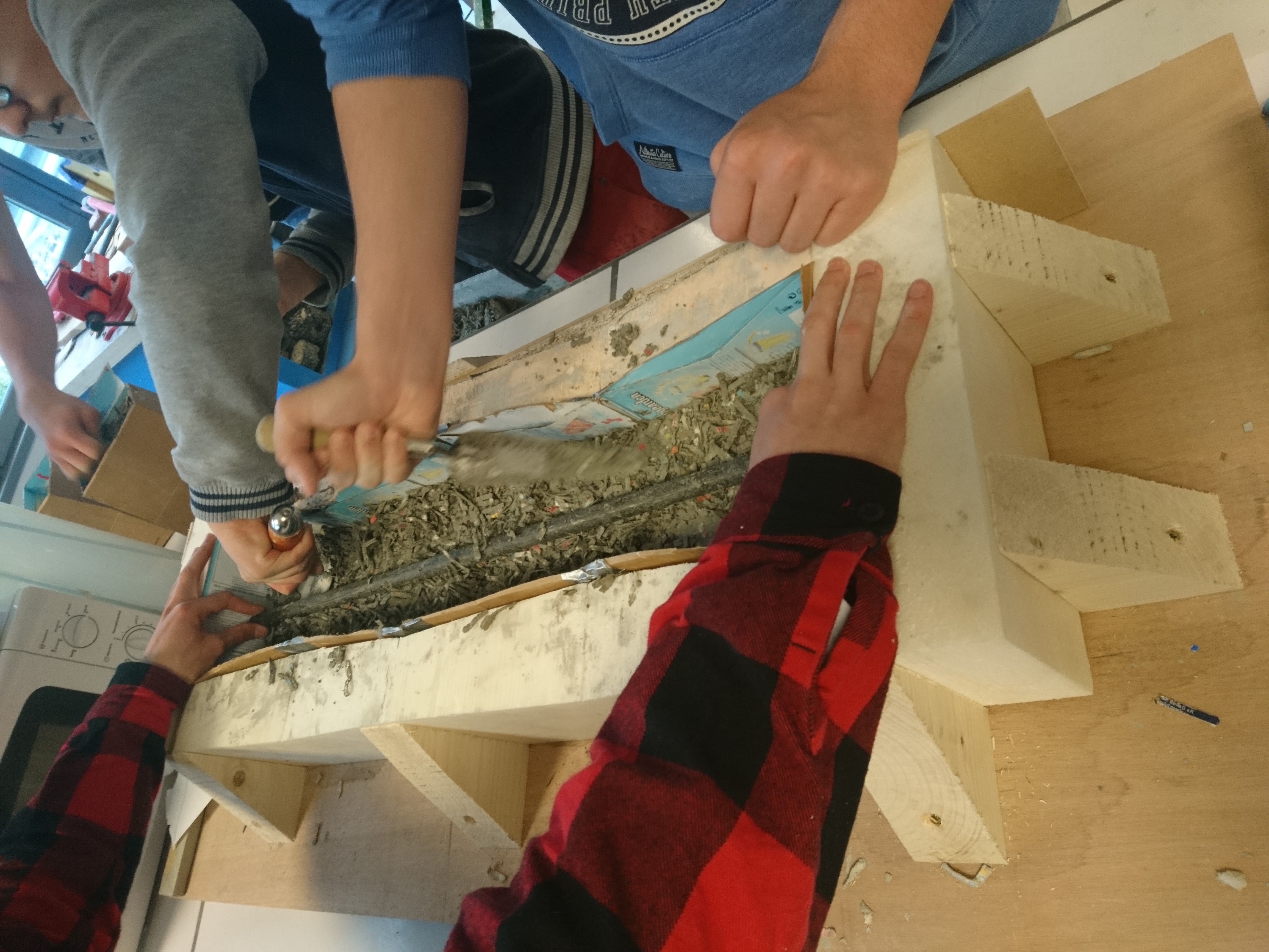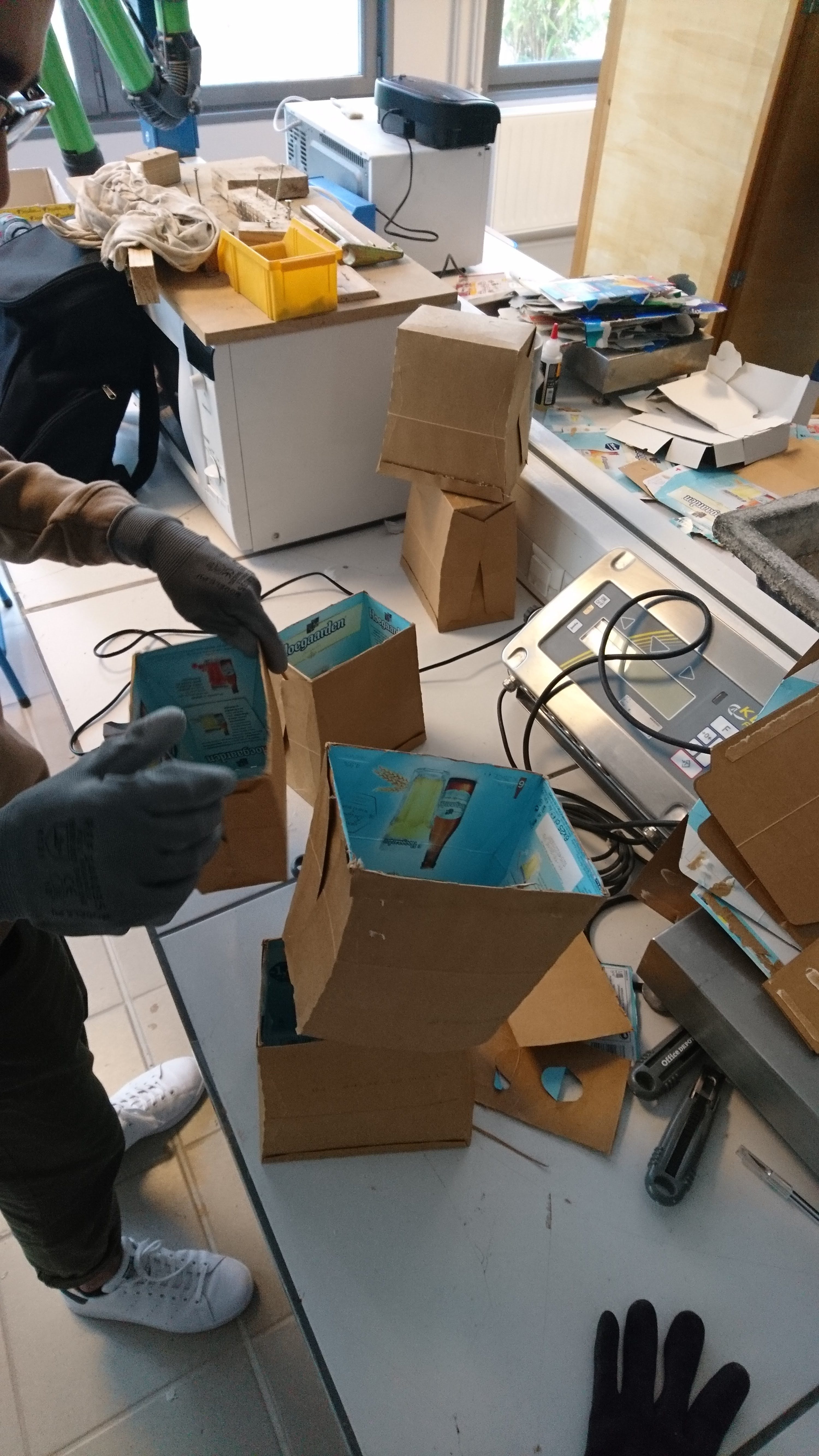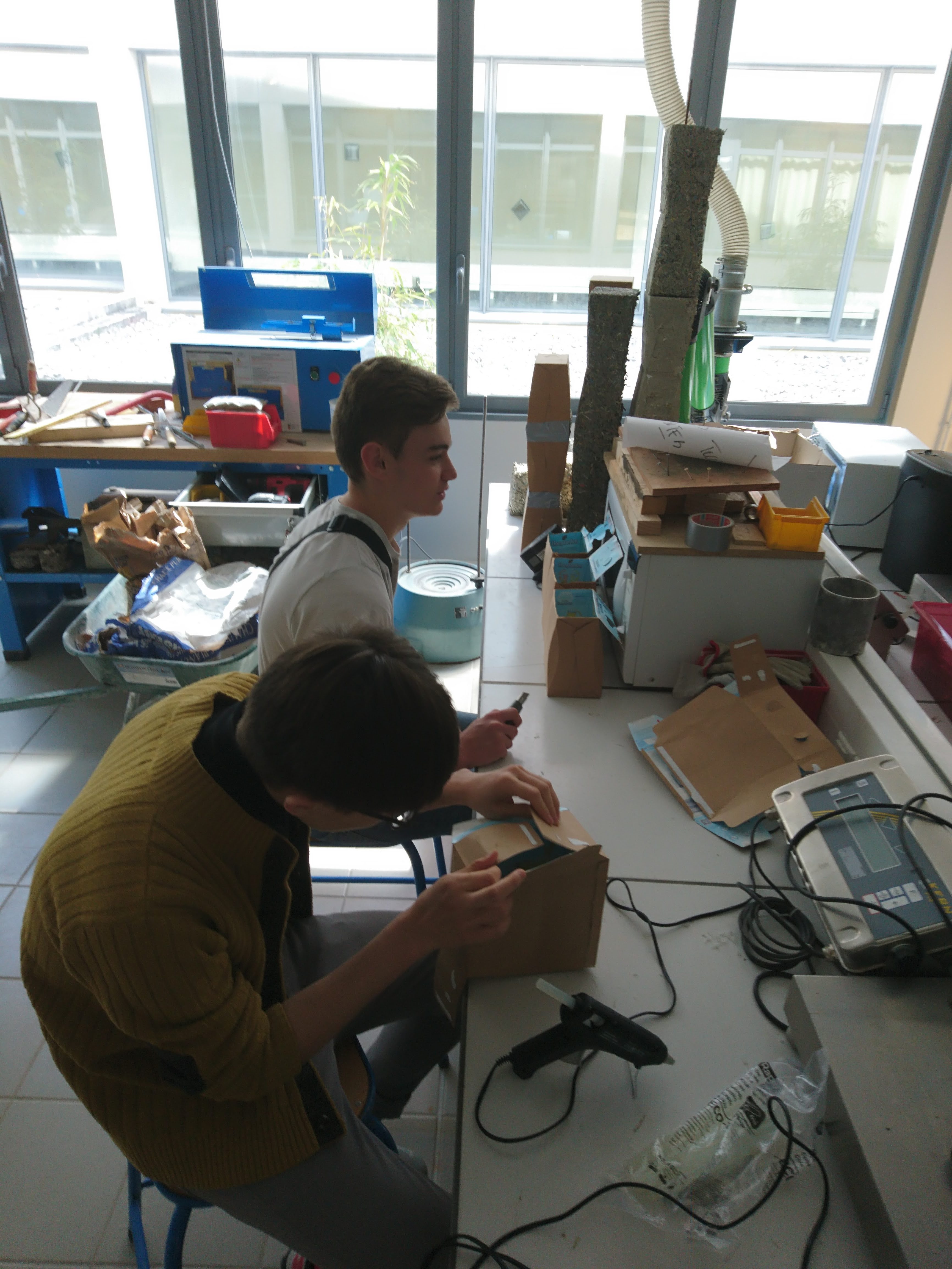 Atelier béton / carton Projet CARTON/BÉTON au Lycée SCHUMAN-PERRET (LH) avec les secondes TEB dans la classe de Benjamin Giraud /10h d’atelier Expérimentation et calcul d’une formule de « carton/béton », et réalisation de ‘Colonnes sans fin’ (à partir de packs de bière). Photos ©laire Le Breton pour ©L Minuscule Partager Imprimer(ouvre dans une nouvelle fenêtre) Imprimer Articles similaires