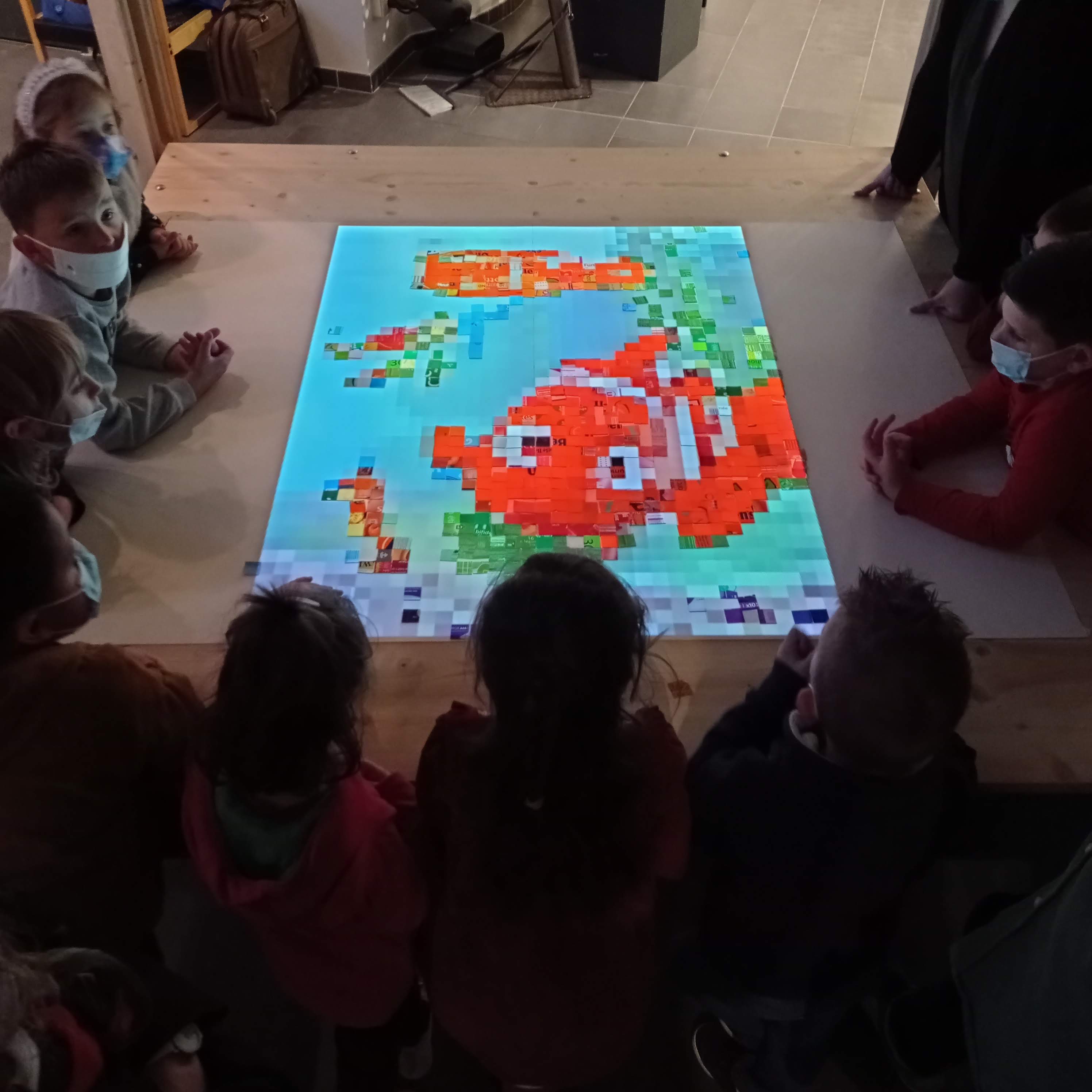 Montable/démontable il peut être installé dans différents lieux, tant que le rapport à une œuvre existe (écoles, centres culturels EHPAD, entreprises…). Le désir est que les participant.e.s découvrent des peintures, des photographies et se les réapproprient par un processus actif de fabrication de pixels colorés et d’observation via l’interprétation numérique.