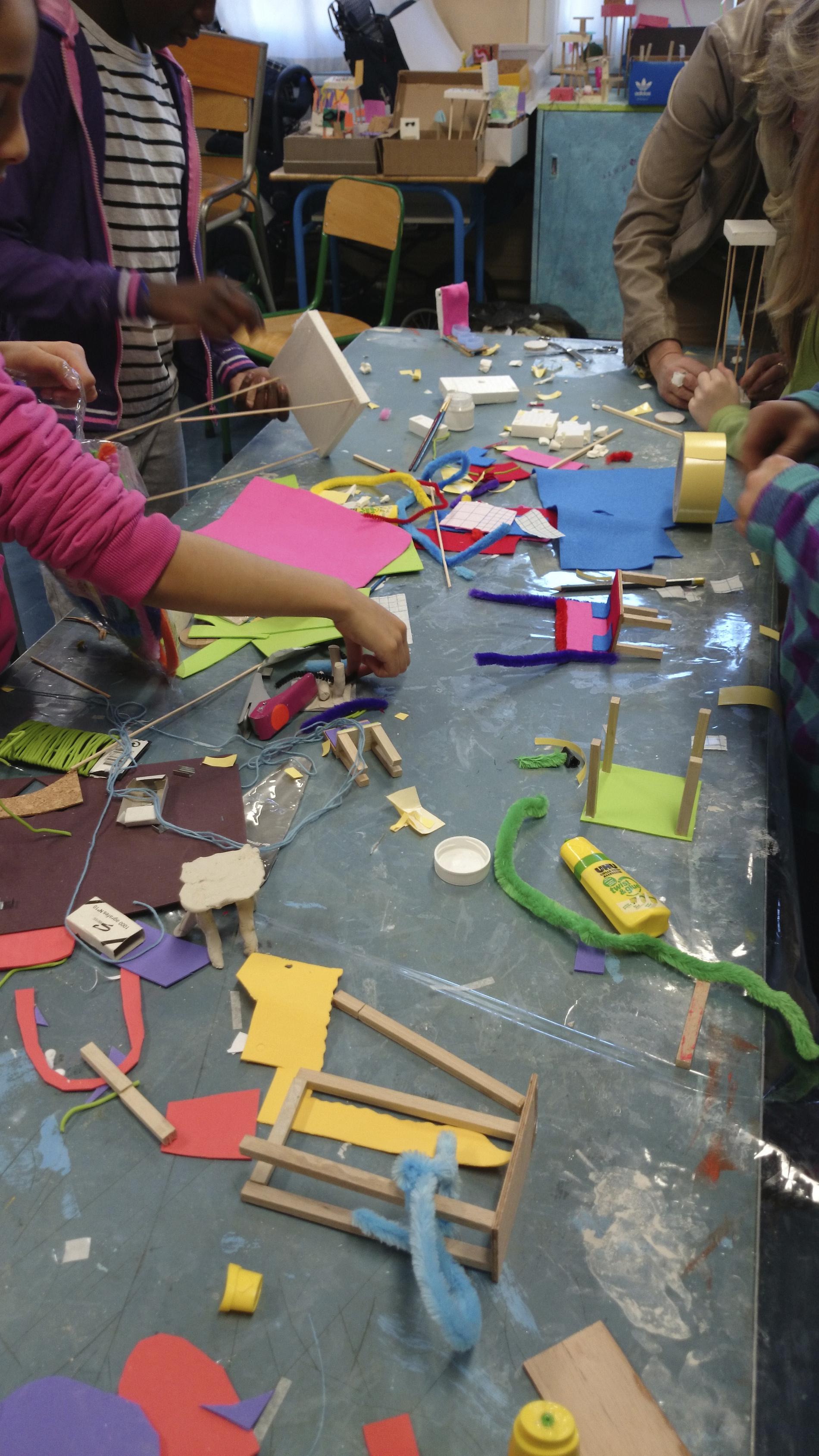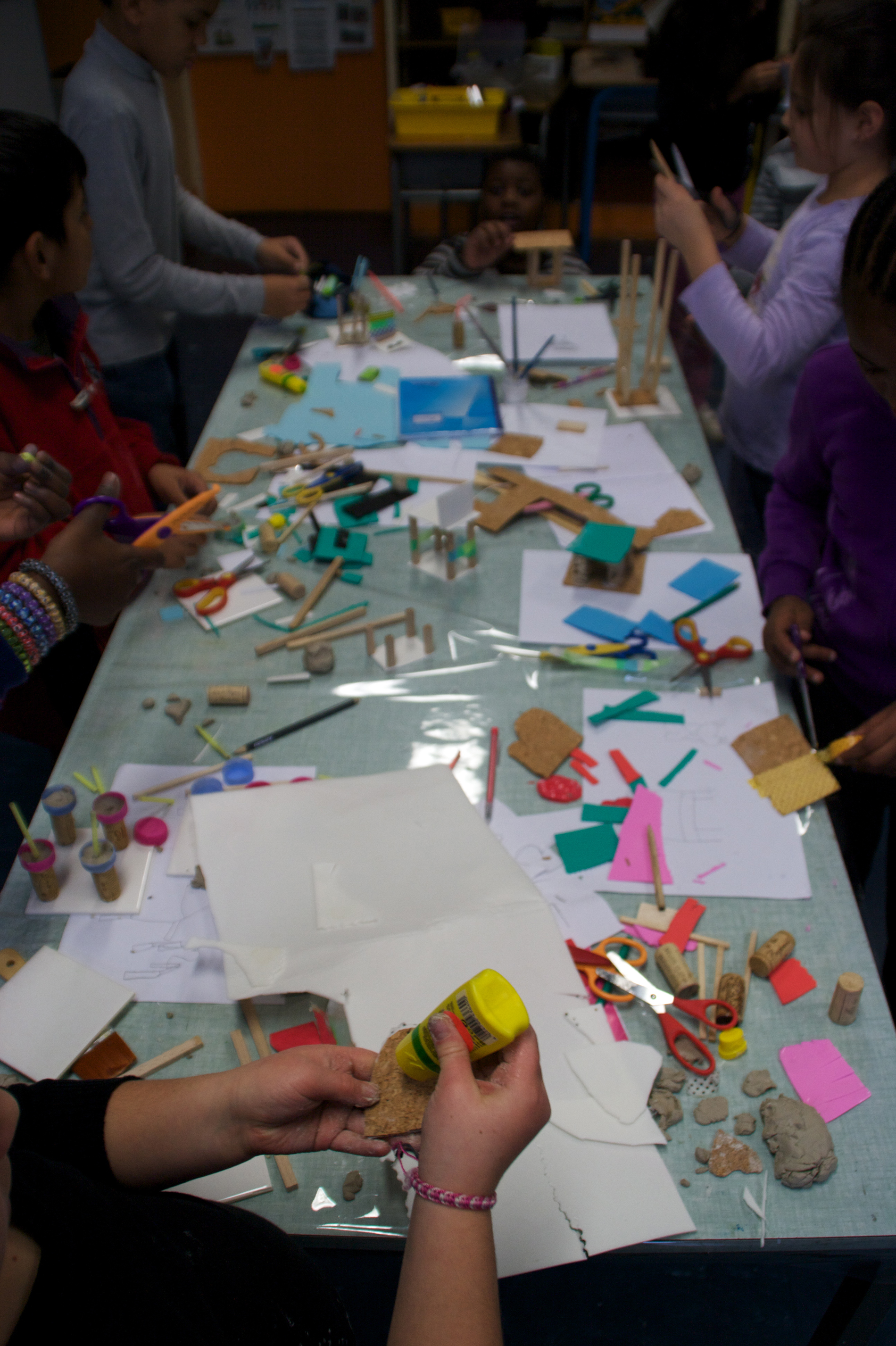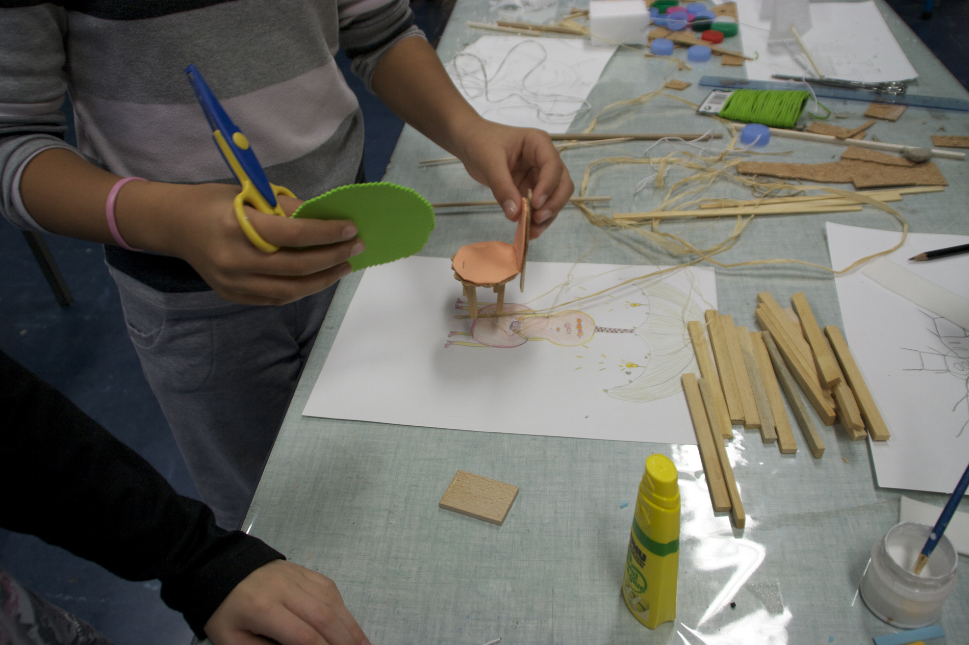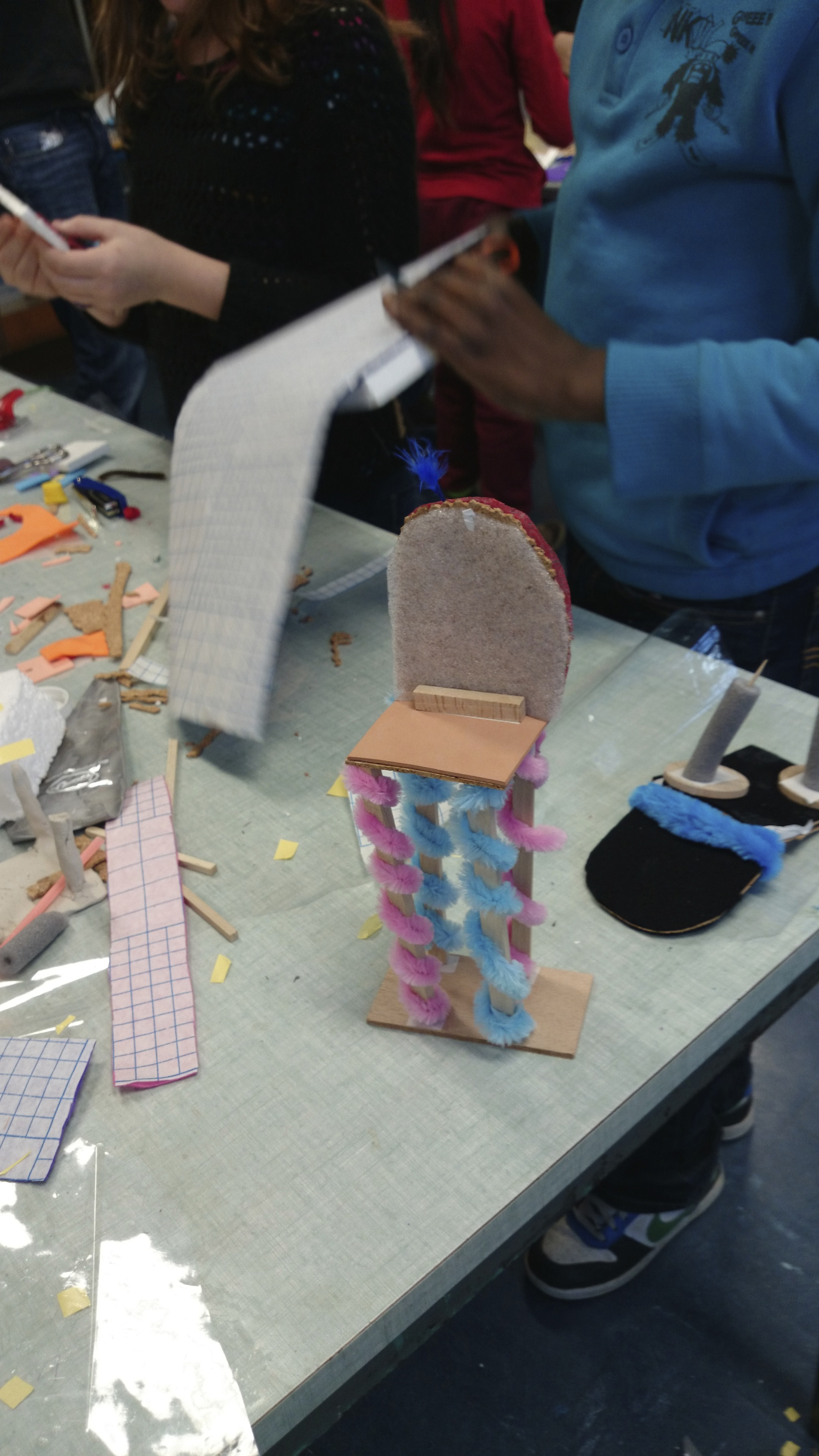 Chaque élève a ensuite été invité à dessiner la chaise qu’il aimerait concevoir, puis à la réaliser en miniature avec une grande variété de matériaux mis à disposition.