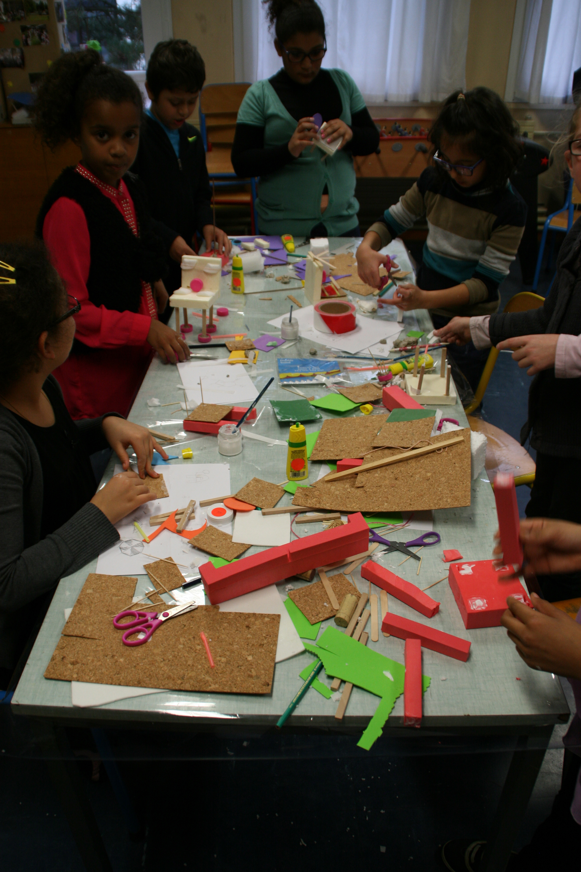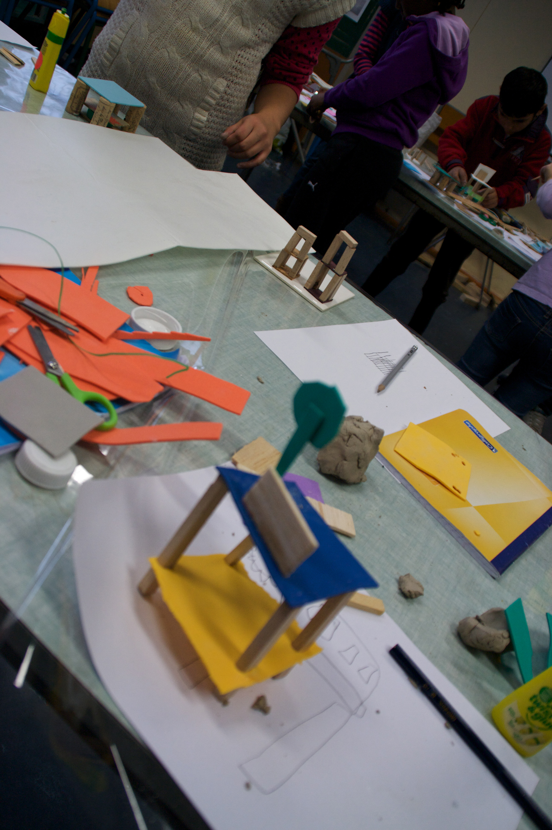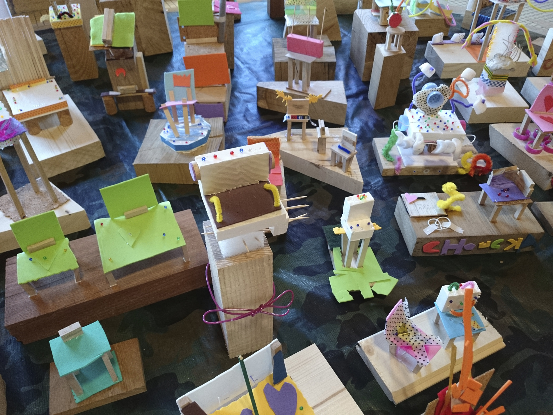 Chaque élève a ensuite été invité à dessiner la chaise qu’il aimerait concevoir, puis à la réaliser en miniature avec une grande variété de matériaux mis à disposition.