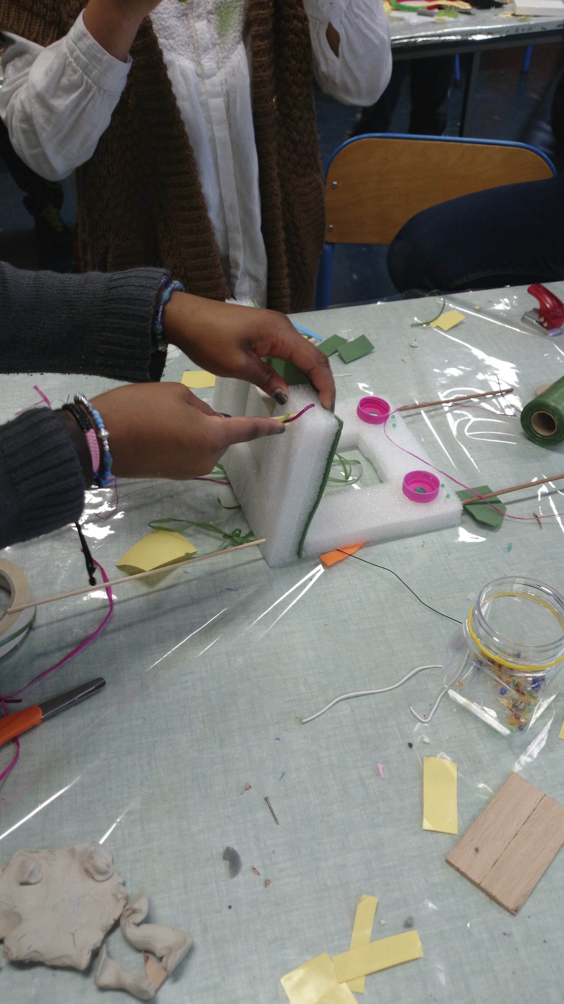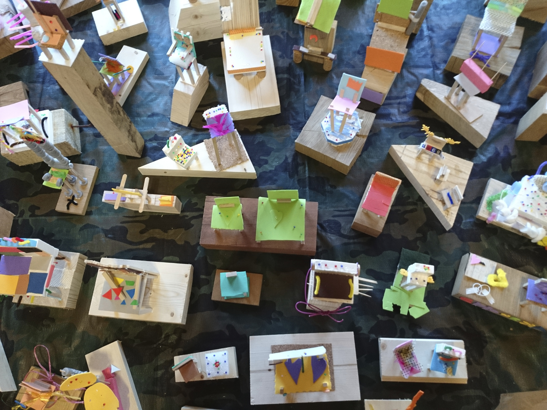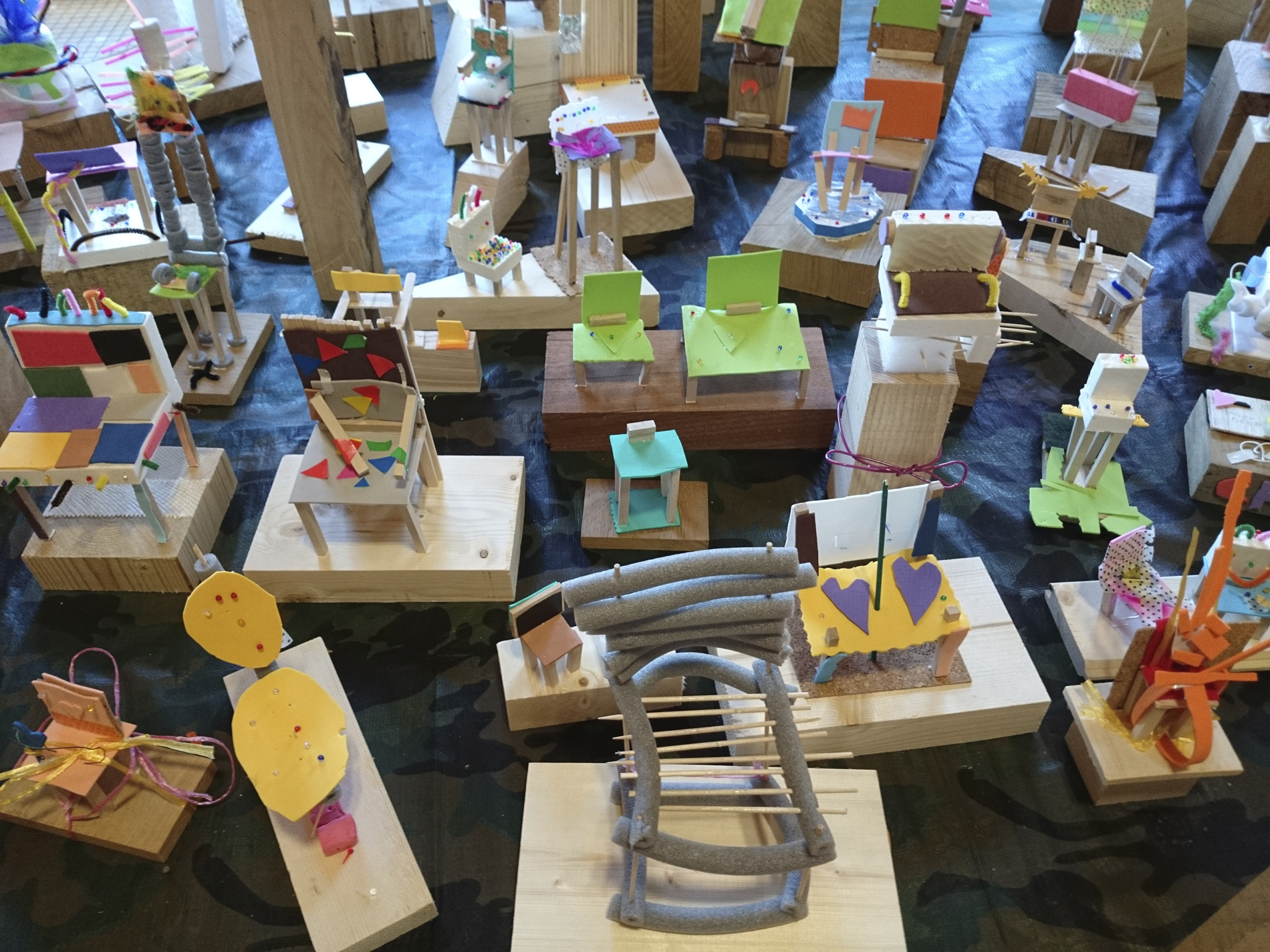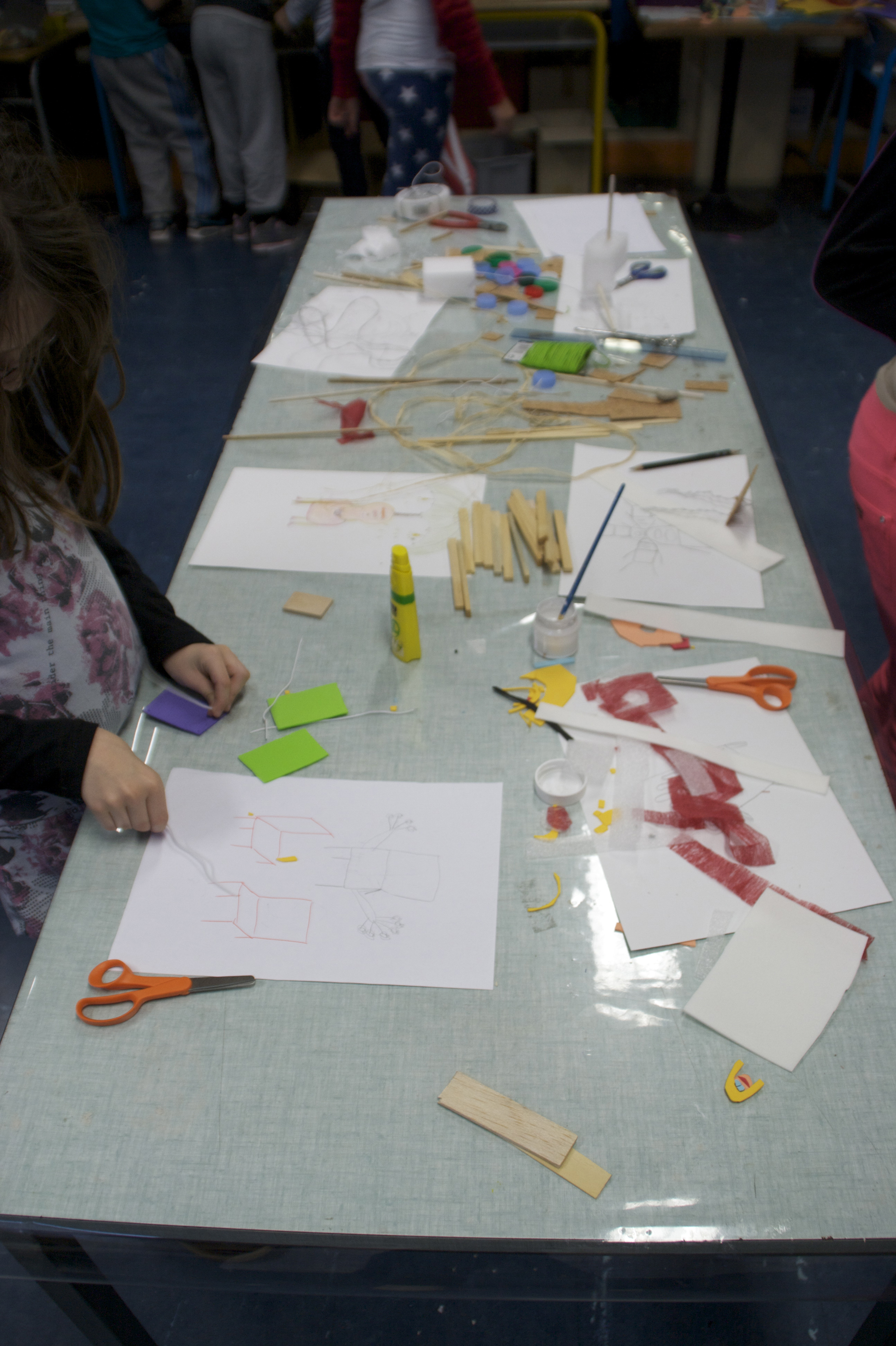 Chaque élève a ensuite été invité à dessiner la chaise qu’il aimerait concevoir, puis à la réaliser en miniature avec une grande variété de matériaux mis à disposition.