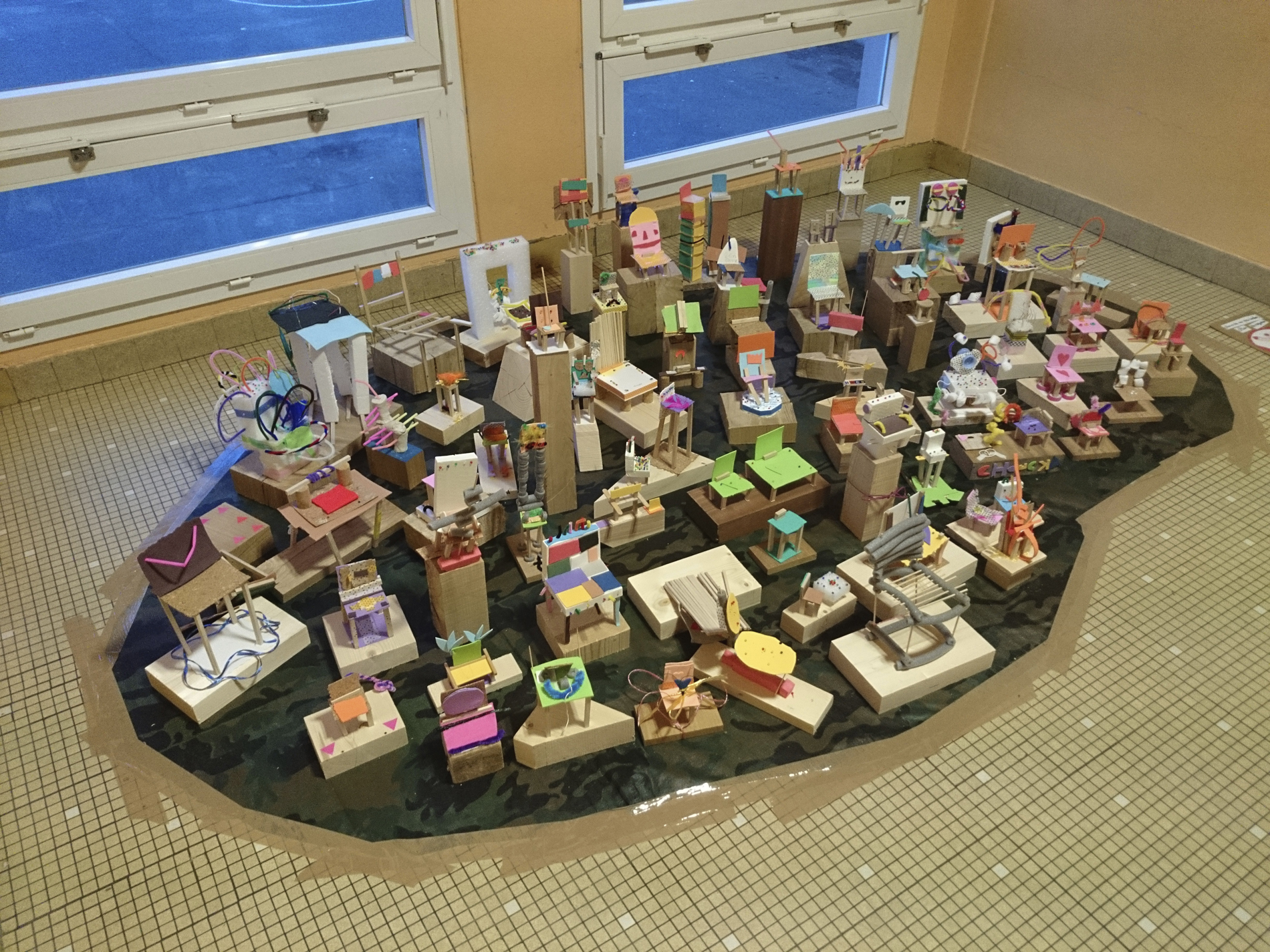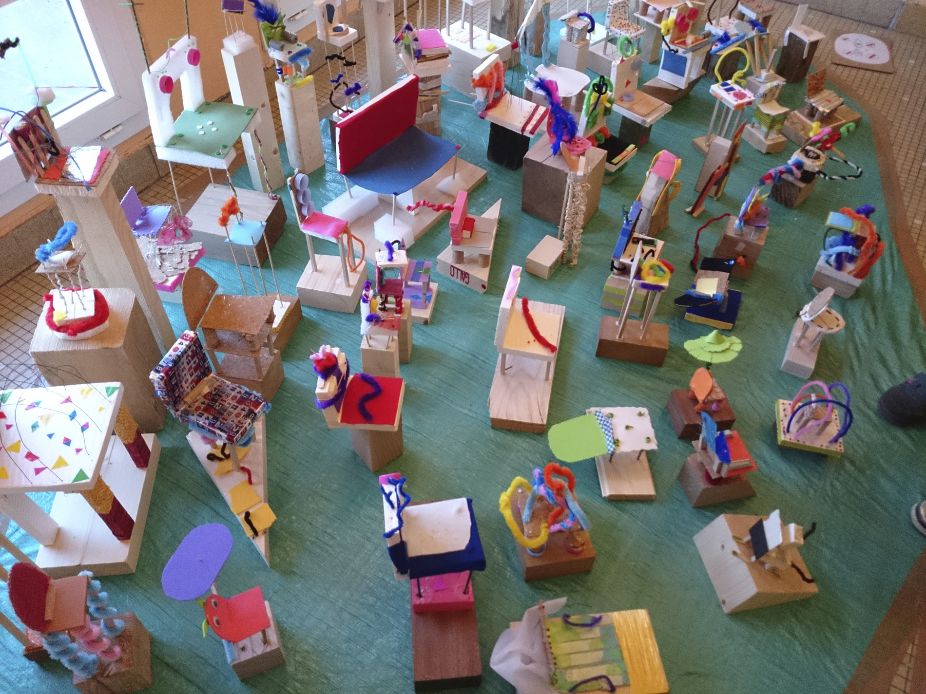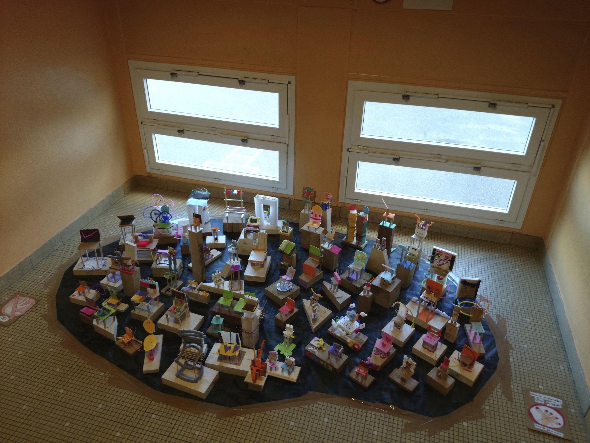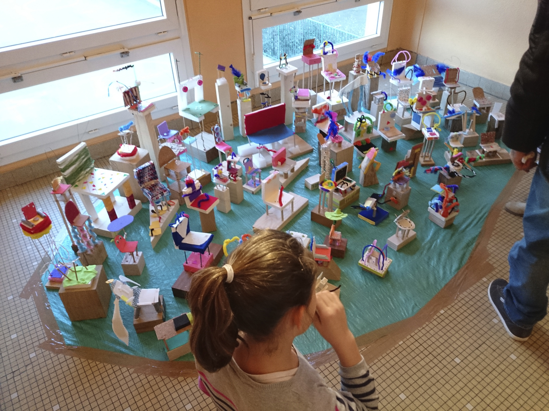Après l’exposition chacun à pu reprendre sa chaise. En tout, 140 chaises auront été conçues à l’école Varlin 2. (6h/classe)