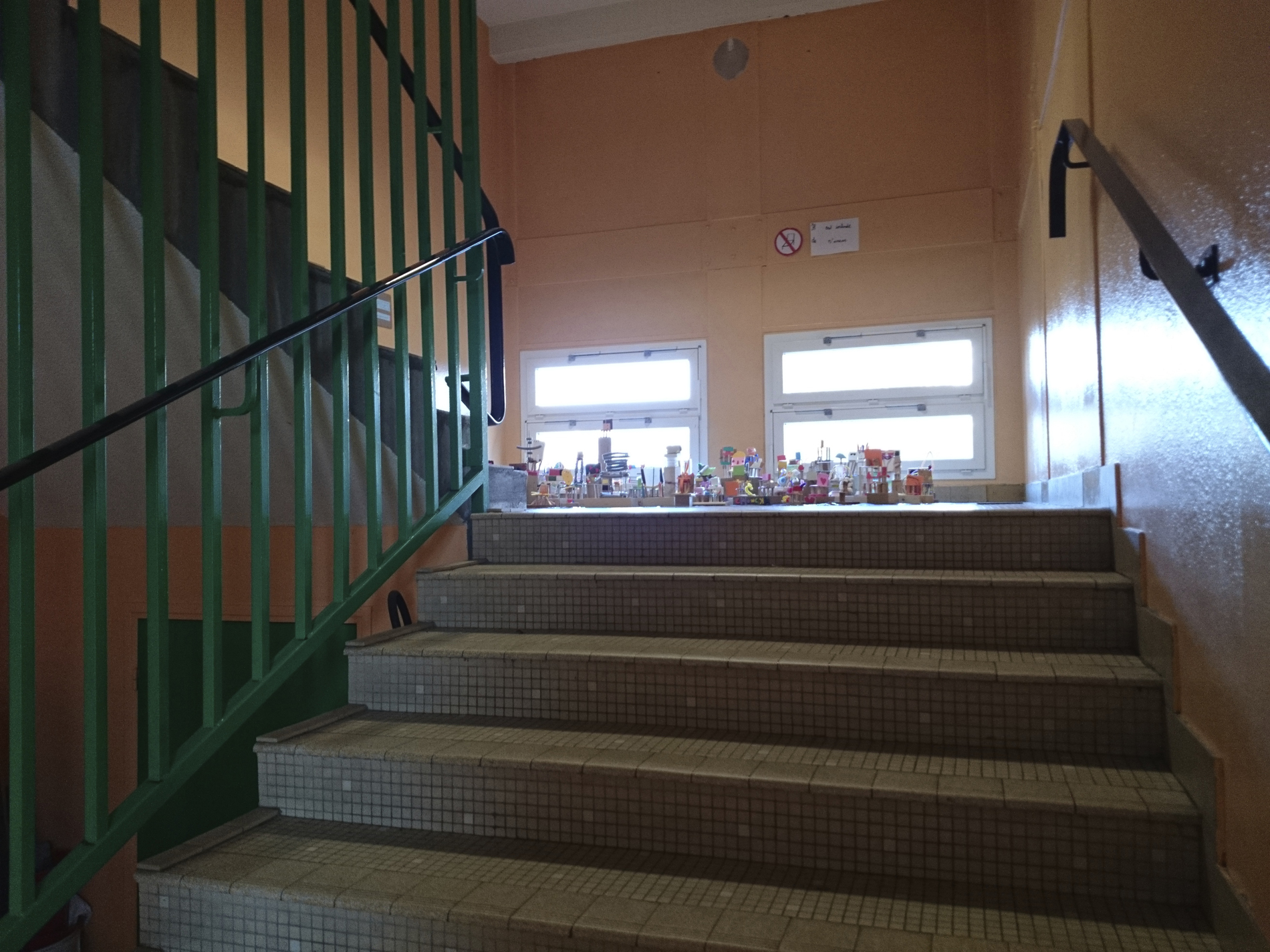 Elles ont été ensuite exposés de façon regroupés sur des sortes d’îlots dans la cage d’escalier à deux endroits bien distincts.