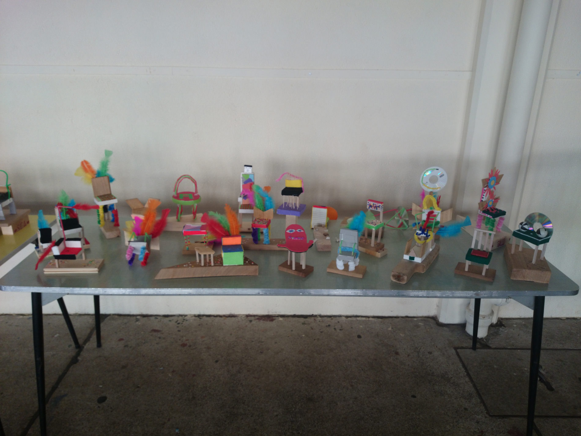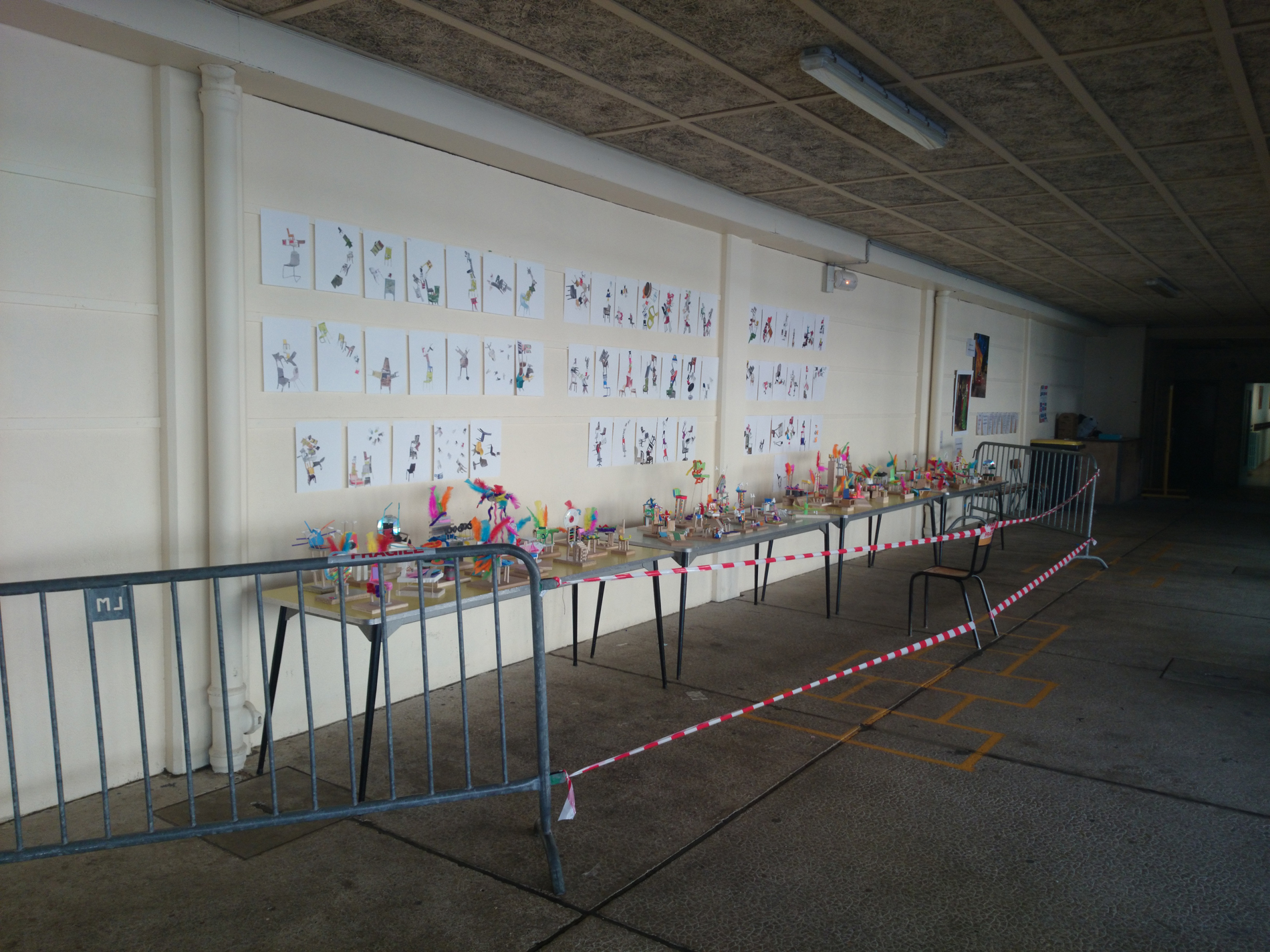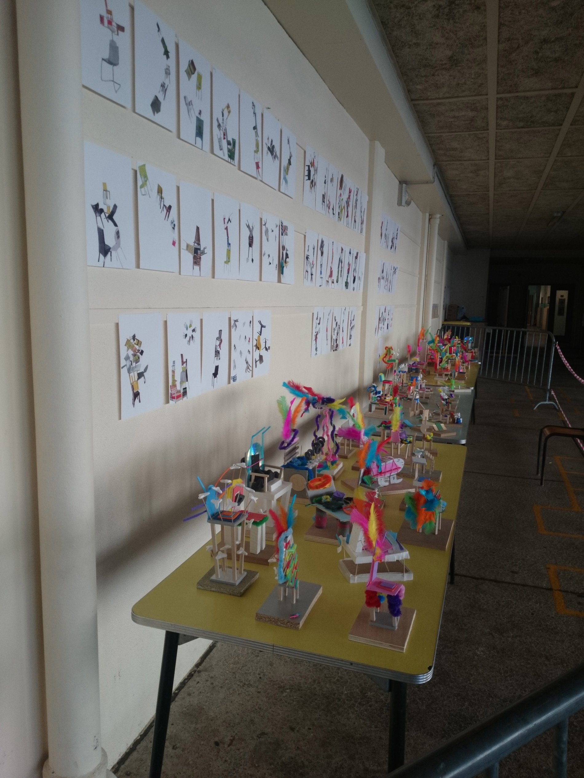 Elles ont été ensuite exposées sur des tables sous le préau, accompagnés des collages aux murs.