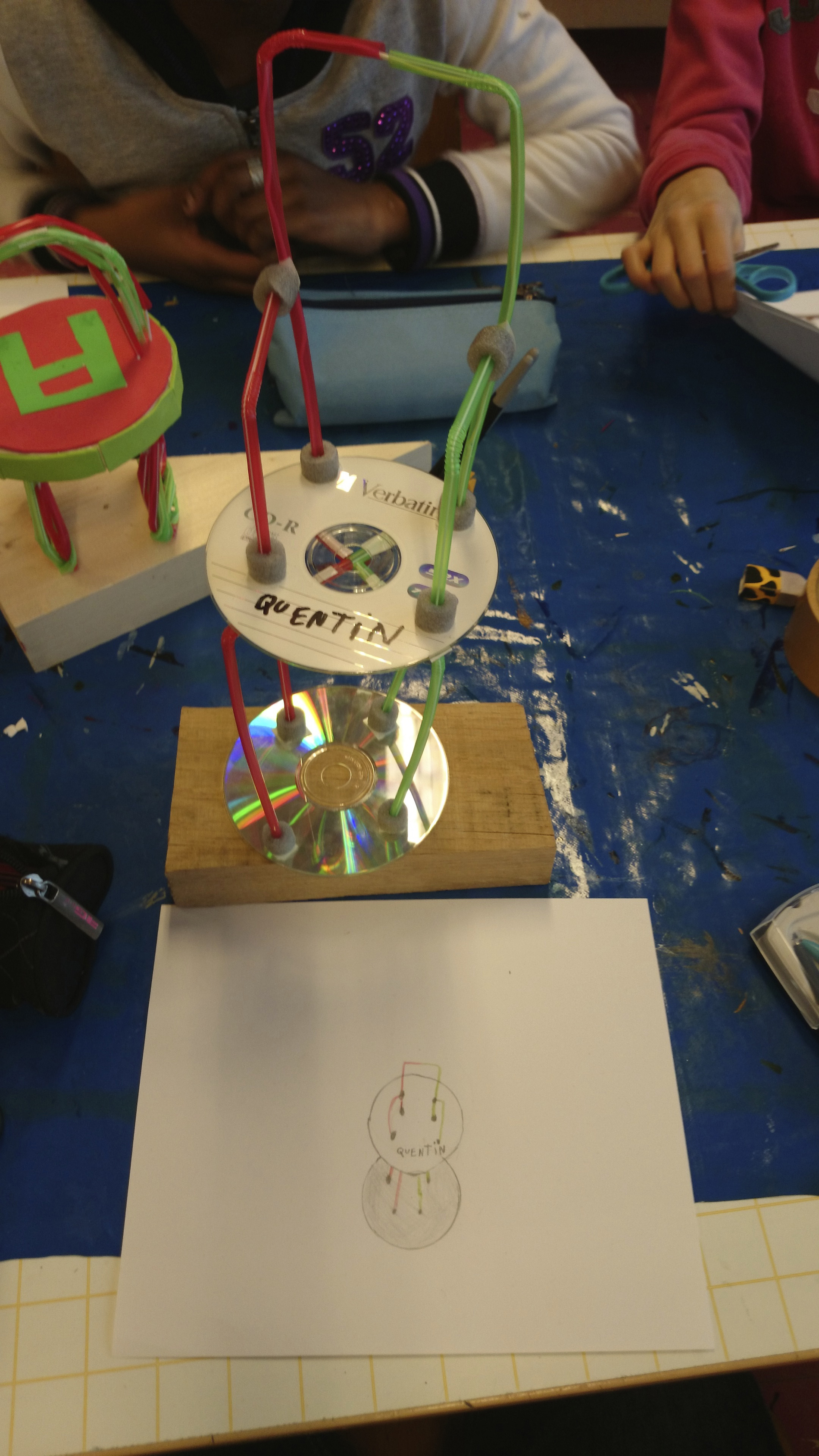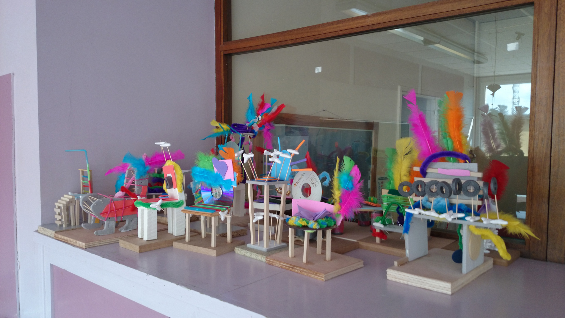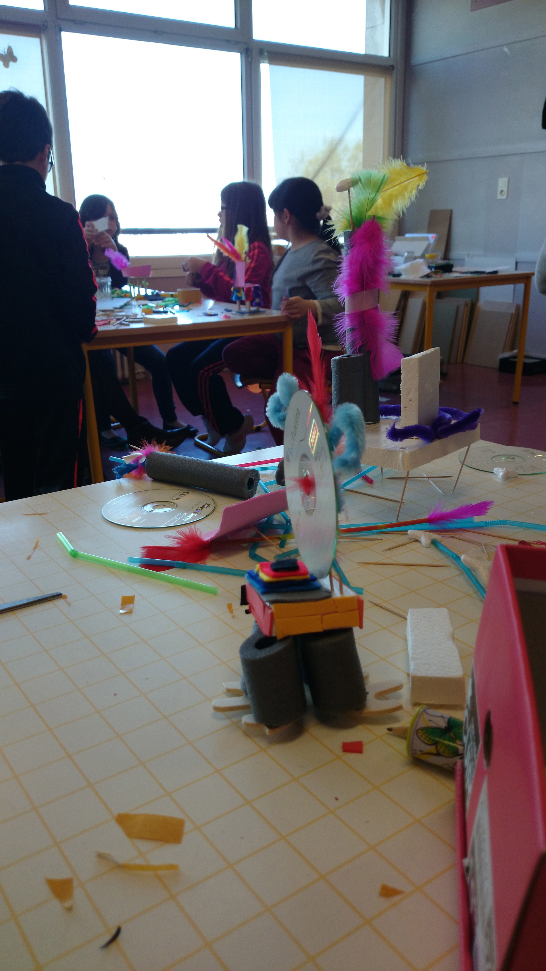 Elles ont été ensuite exposées sur des tables sous le préau, accompagnés des collages aux murs.