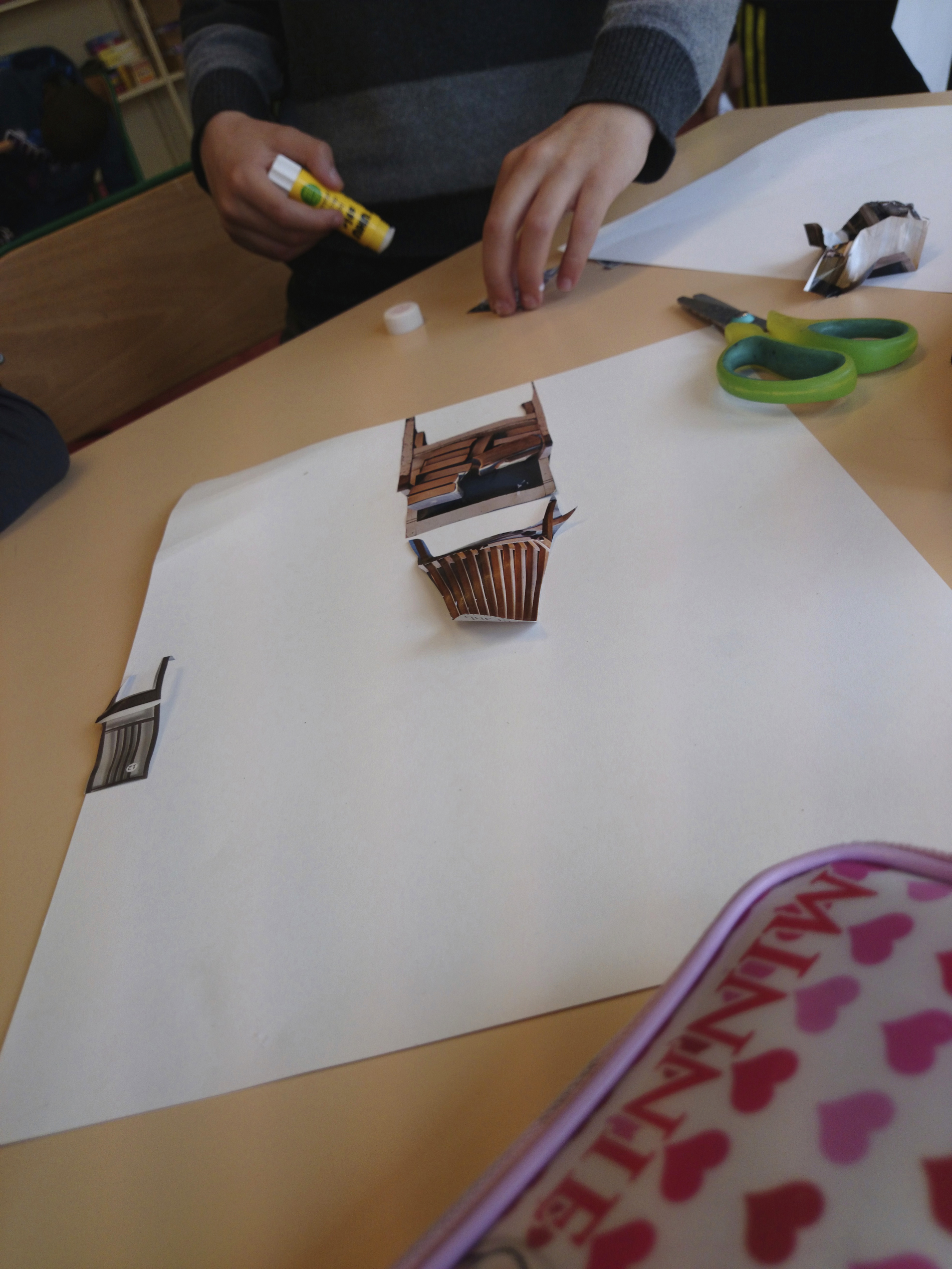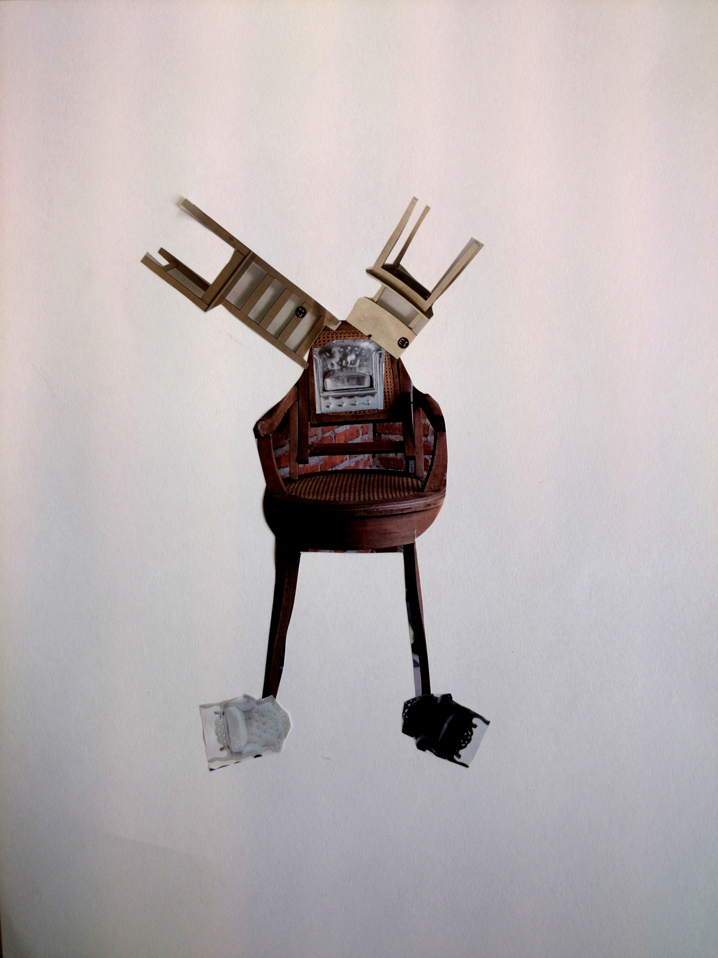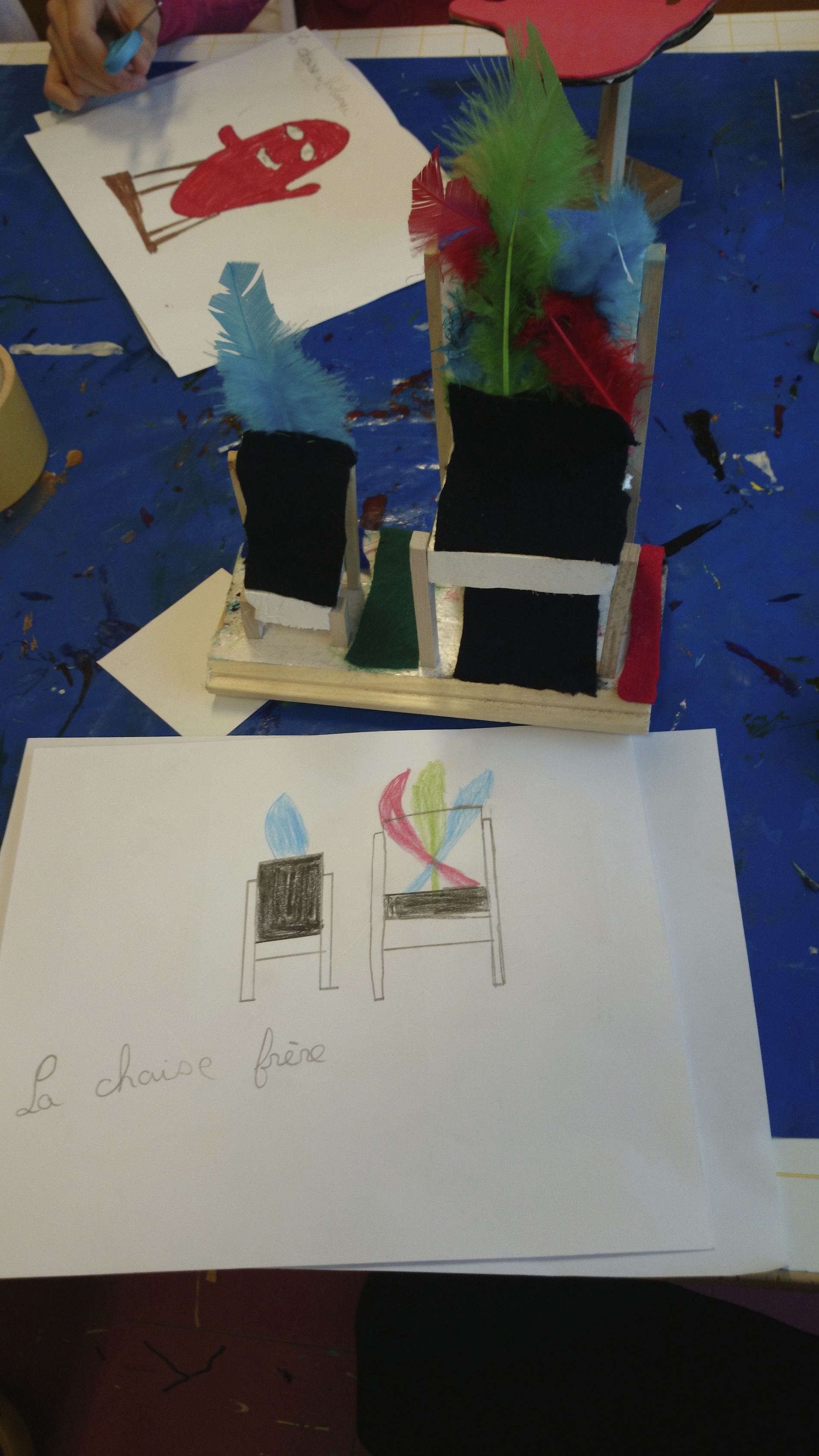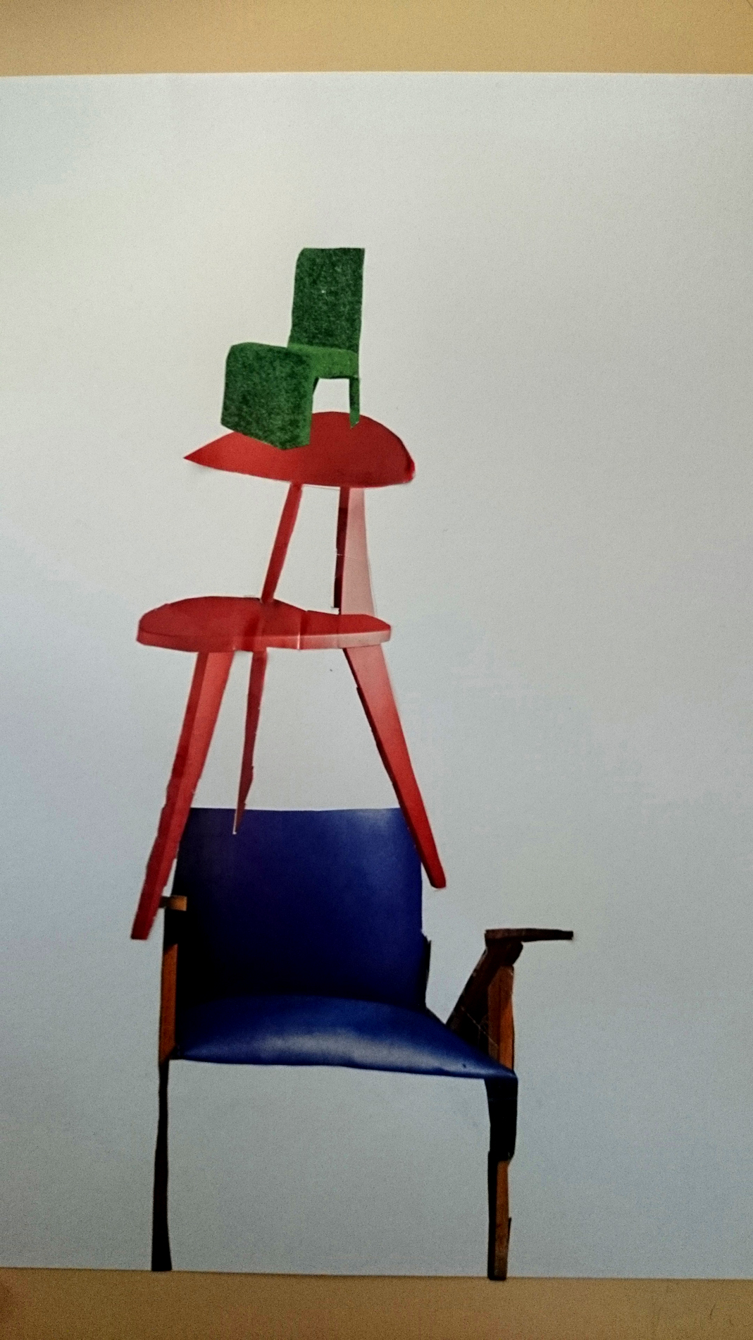 Dans un premier temps (contrairement à l’école Varlin 2) les élèves ont été invité à créer un composition à partir d’images de chaises découpés dans des catalogues.