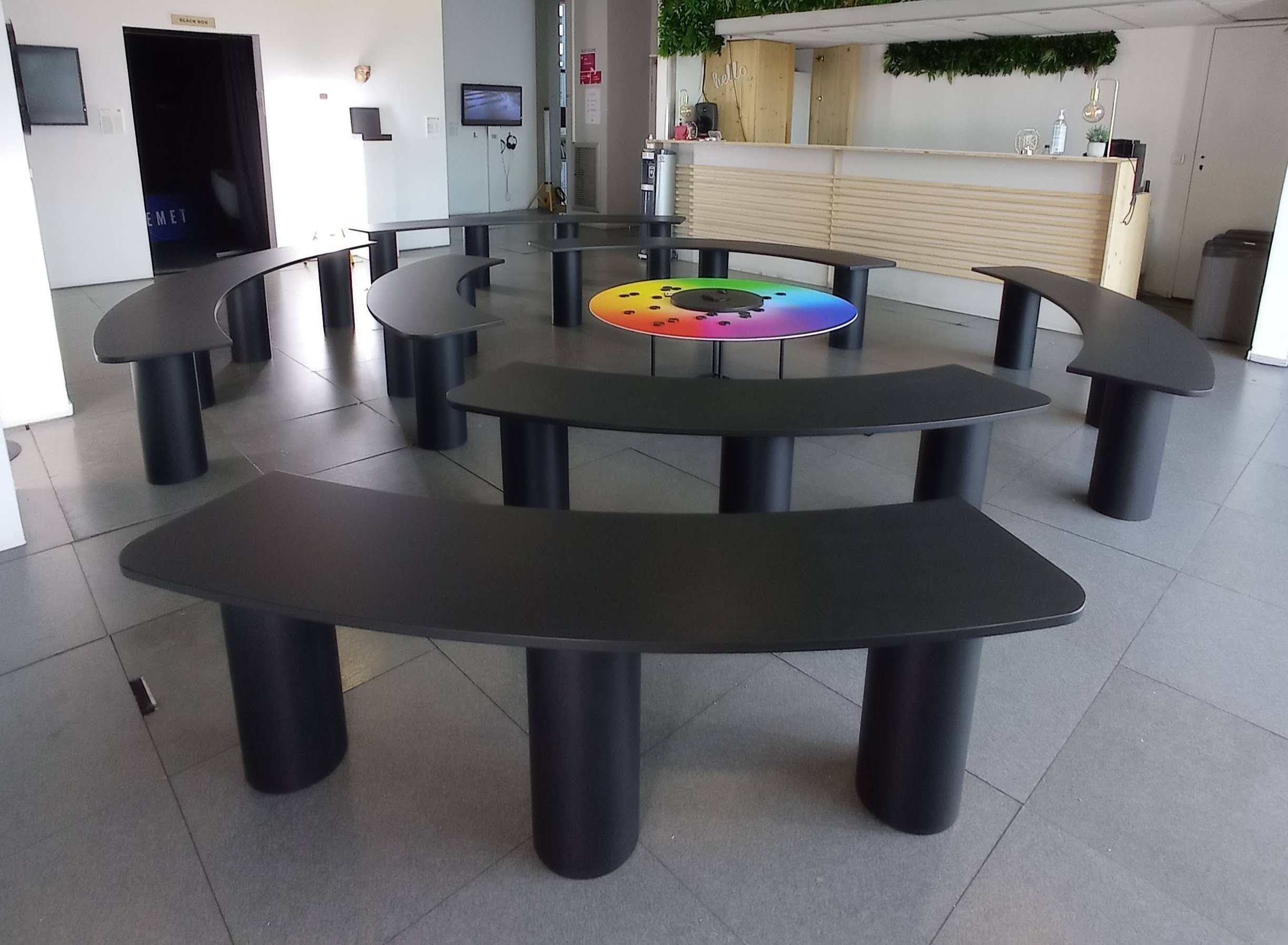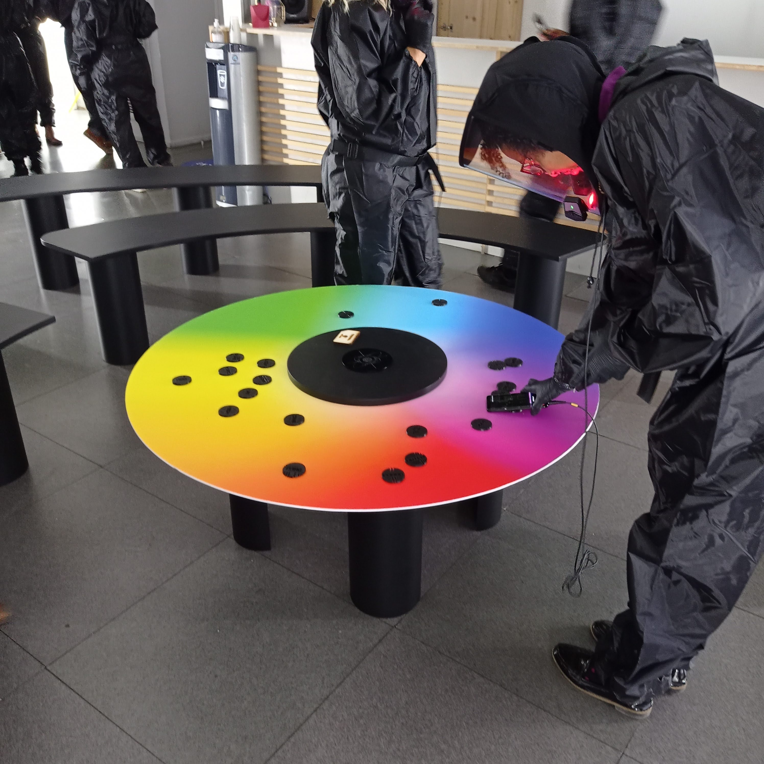 • AGORA : installation circulaire co-conçue par Frédéric Deslias, Bertrand Lacourt et Claire Le Breton, inspirée du logo dessiné par Chryste Laporte-Roy et réalisée par Bertrand Lacourt et Claire Le Breton.
