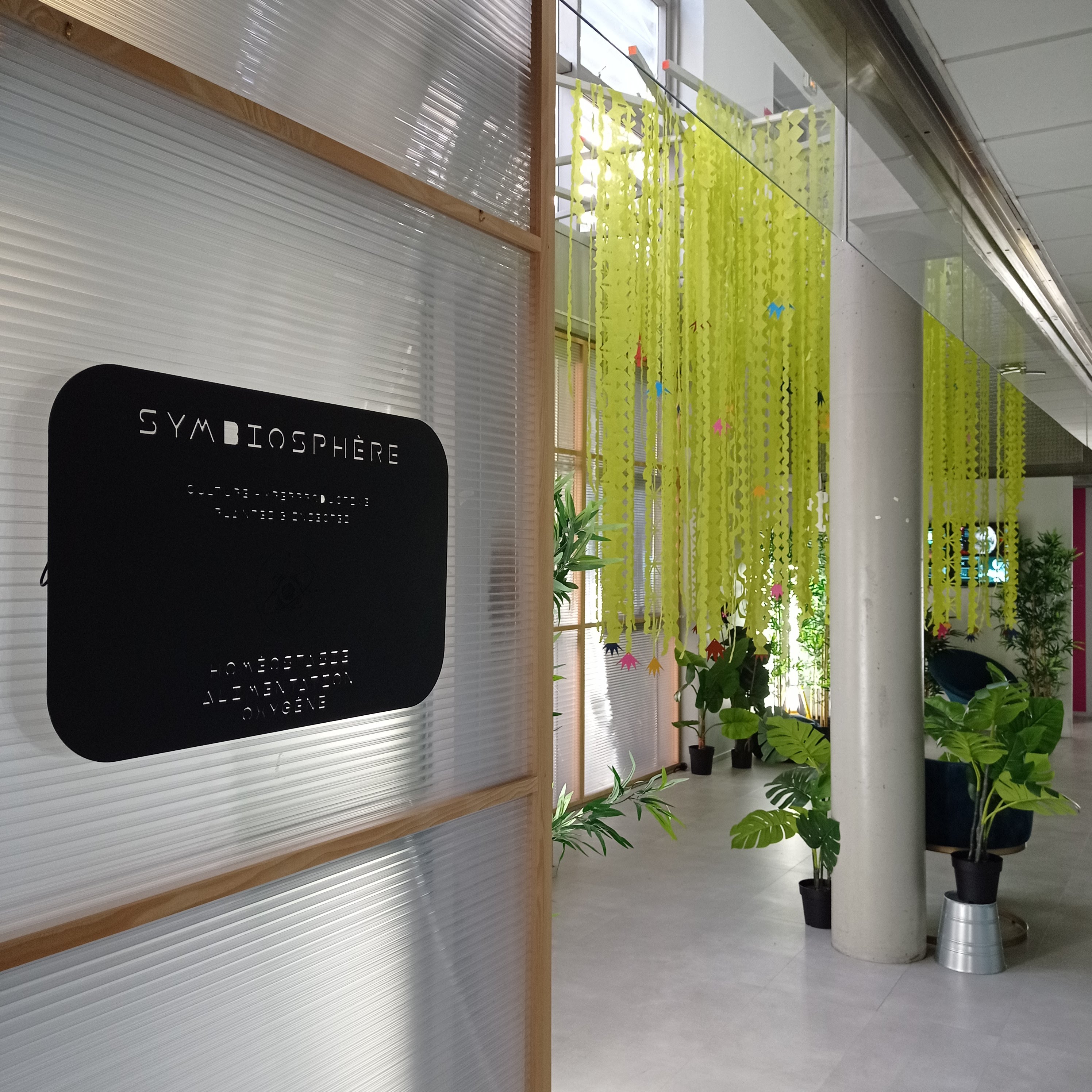 • SYMBIOSHPÈRE : installation in situ, papier Drop screen anis, Procédés Chénel International®