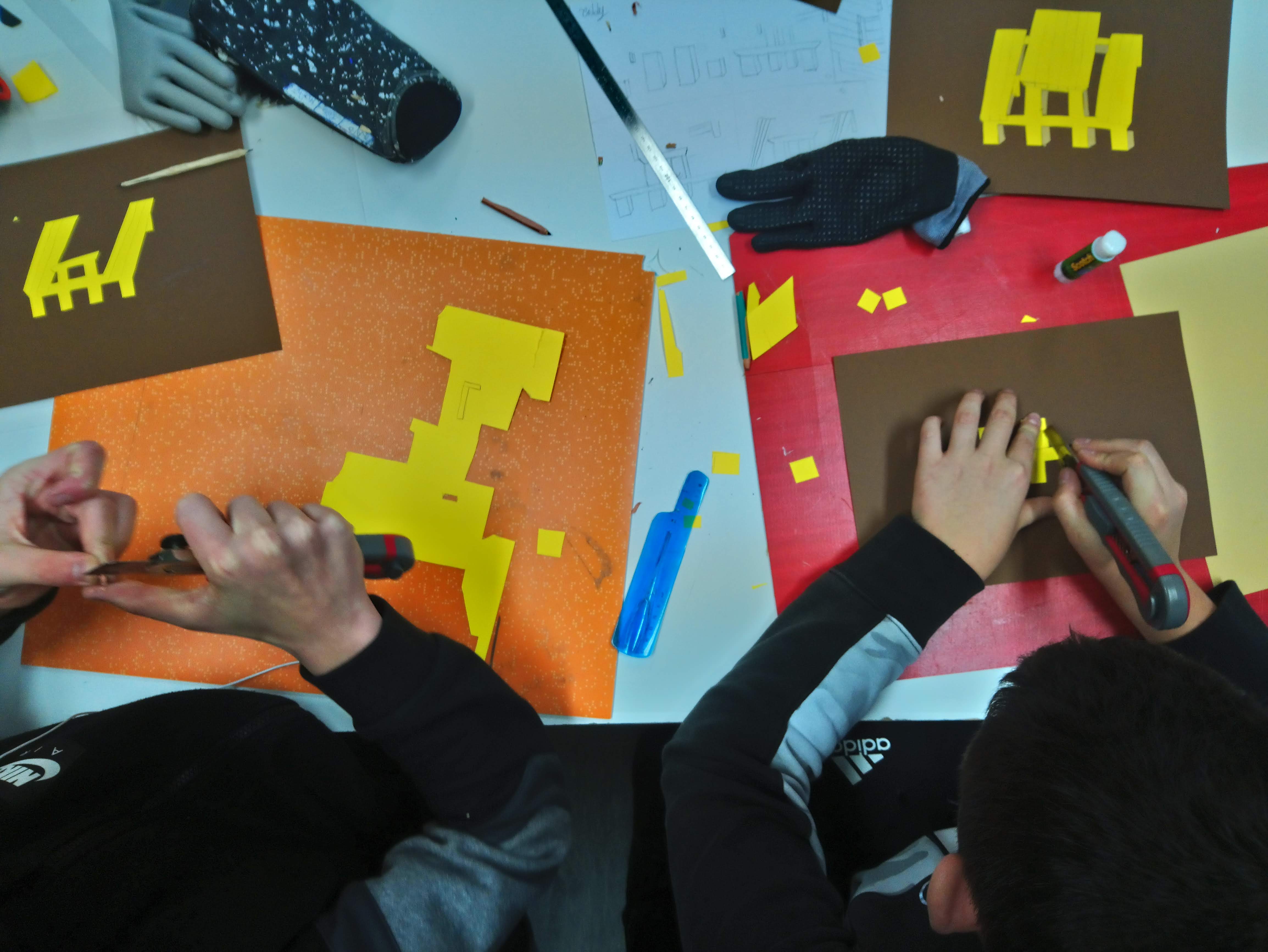 Des images animées, des vidéos et des sons sont produits par les élèves tous au long de l’année. Le résultat est diffusé par une installation audiovisuelle également créée par les élèves. Une structure en bois, accueillant un système de vidéo-projection, anime une maquette synthétique du lycée. Les images sont projetées directement sur l’espace miniature du lycée.