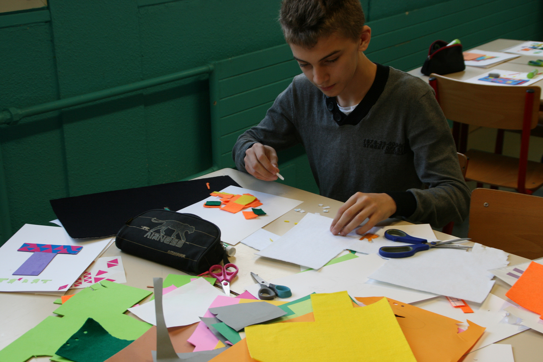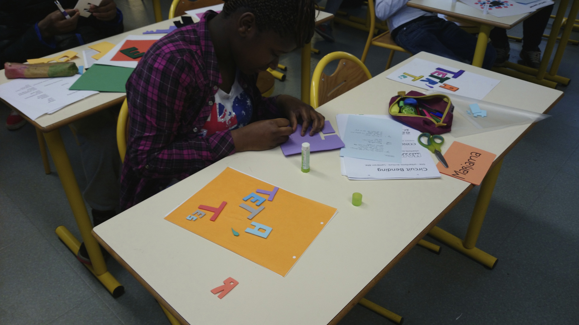 Création d’un logo et de pastilles visuelles en papier / Jumelage entre le Collège René Descartes et la Salle de spectacle et pôle de création au Havre, Le Tétris