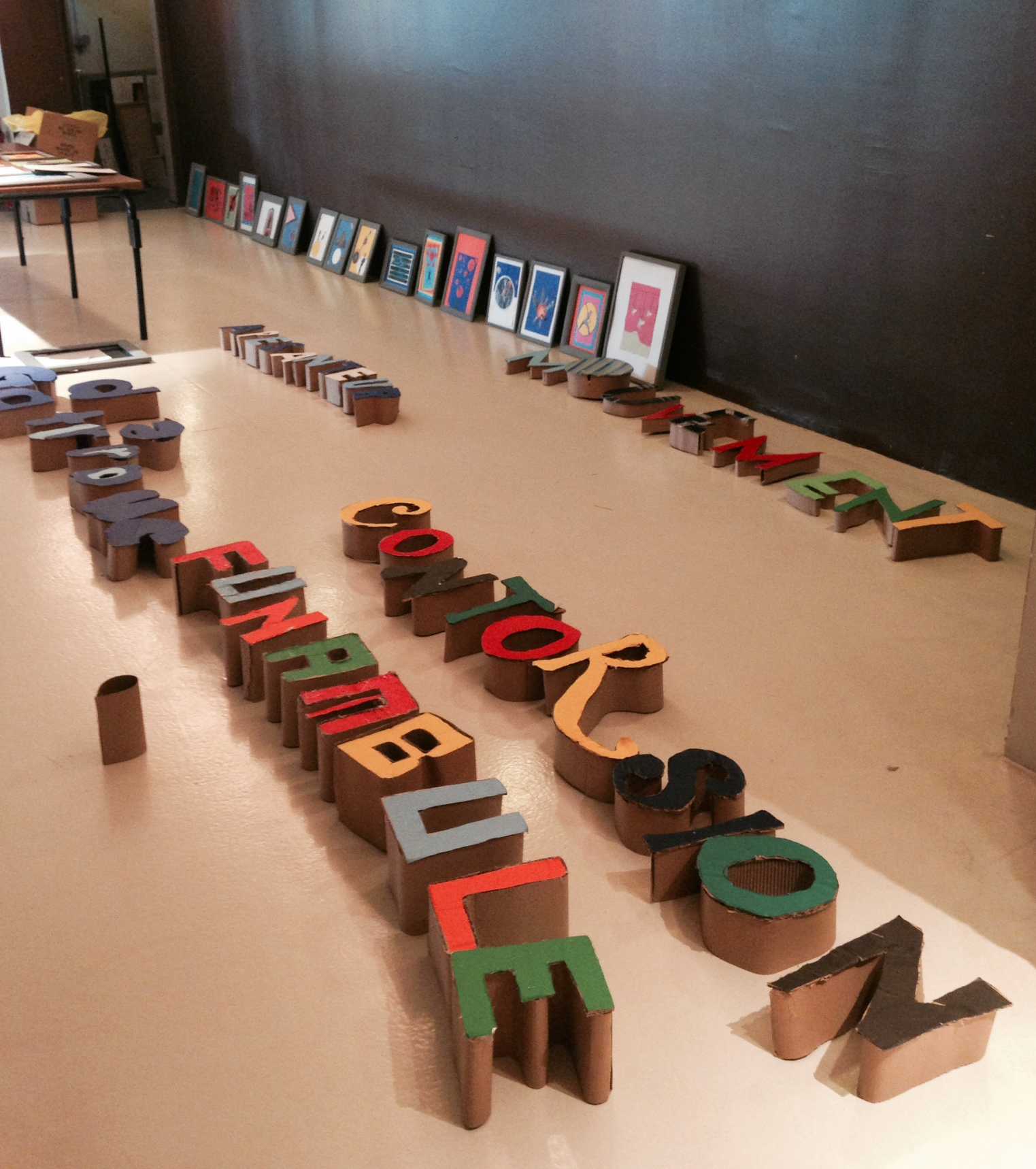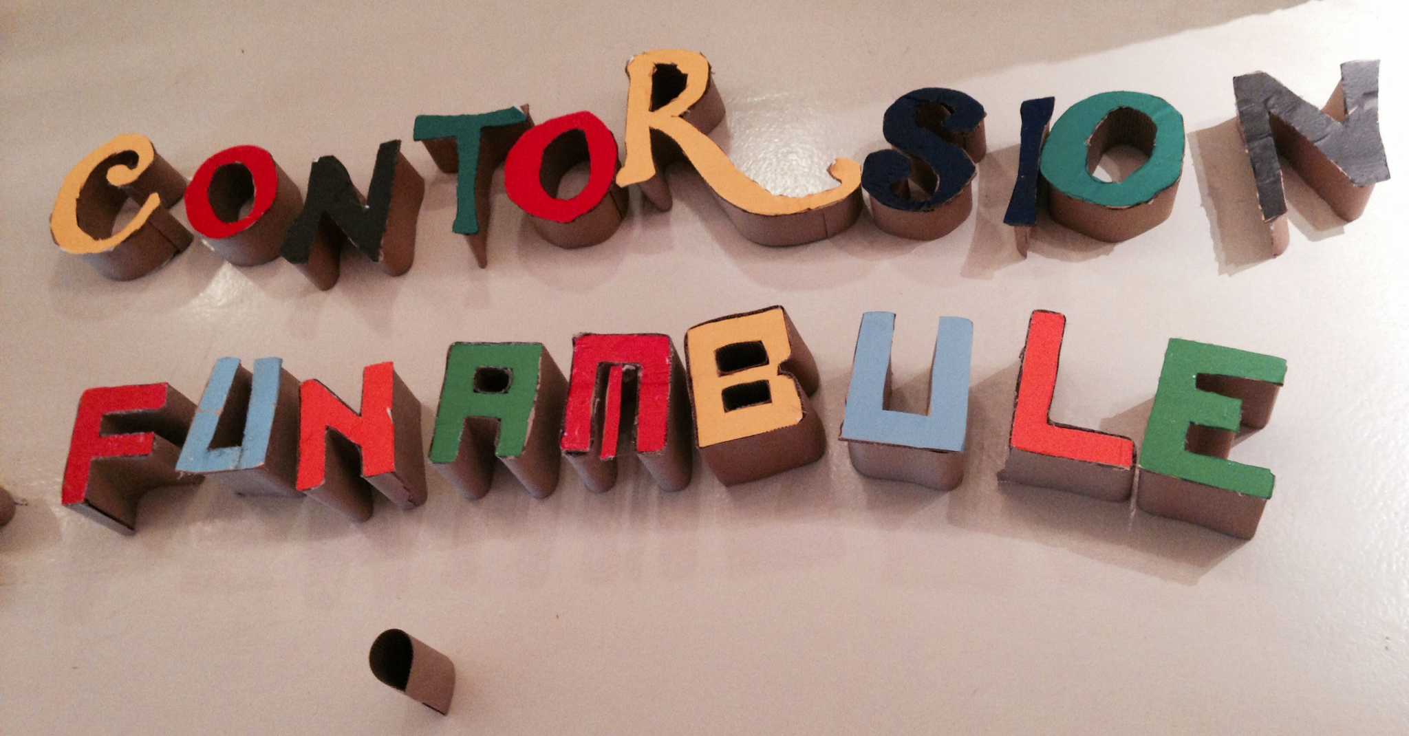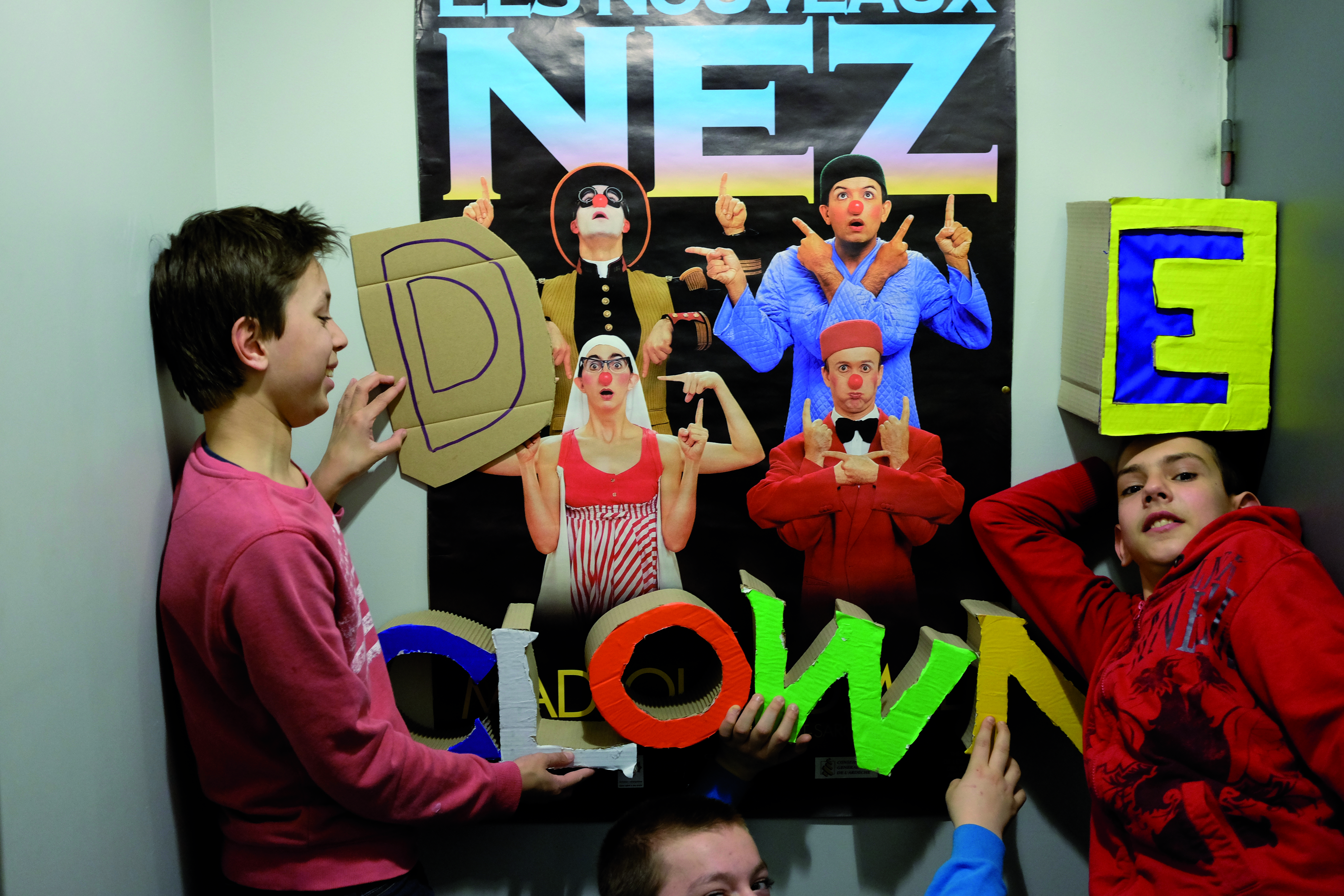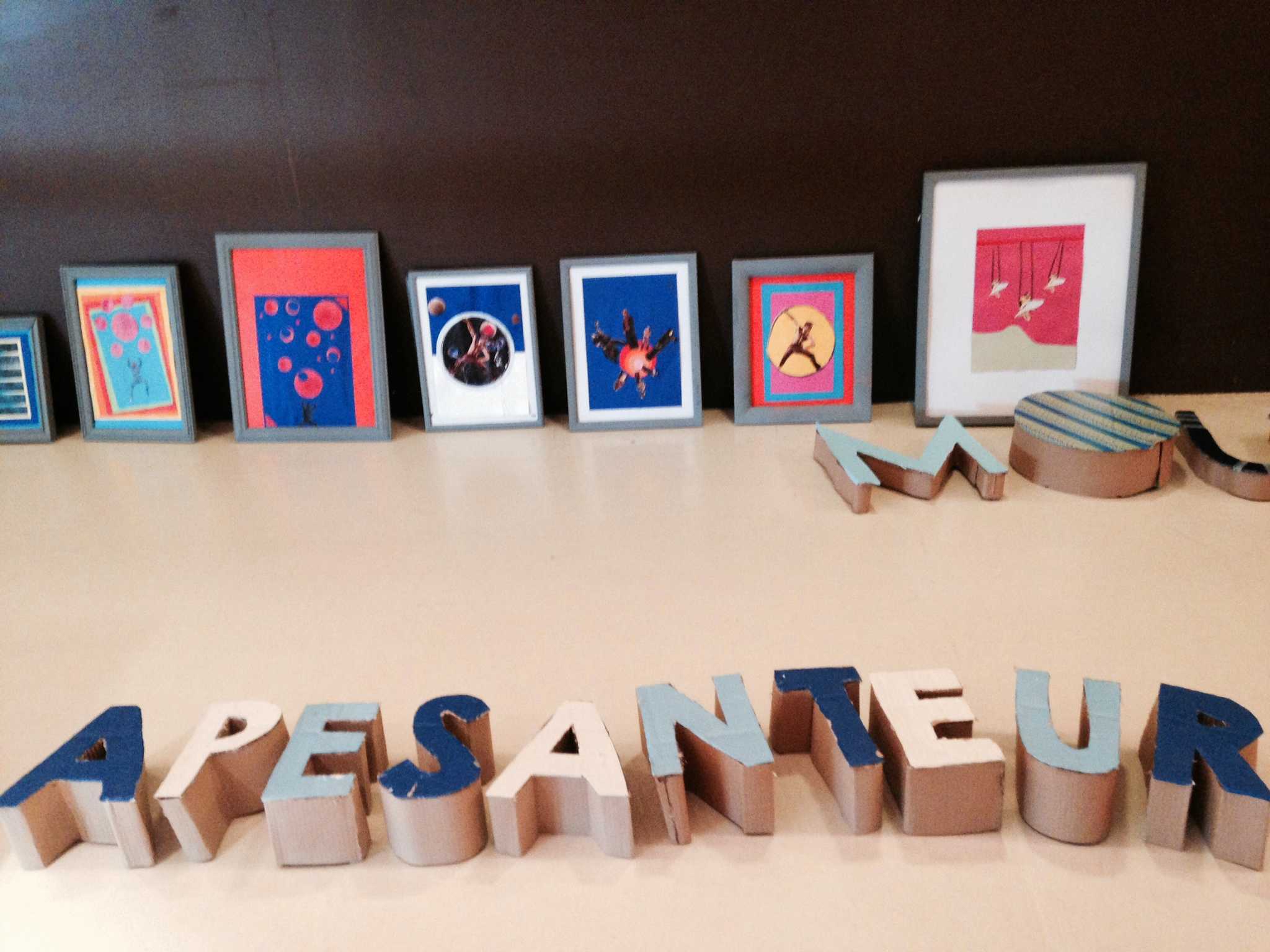 Les élèves du collège Nelson Mandela ont été invité à mêler art graphique, volumes en carton et photographie in-situ. L’objectif était de créer des mots géants à partir des mots spécifiques du cirque et de choisir un point de vue pour une prise en photo.