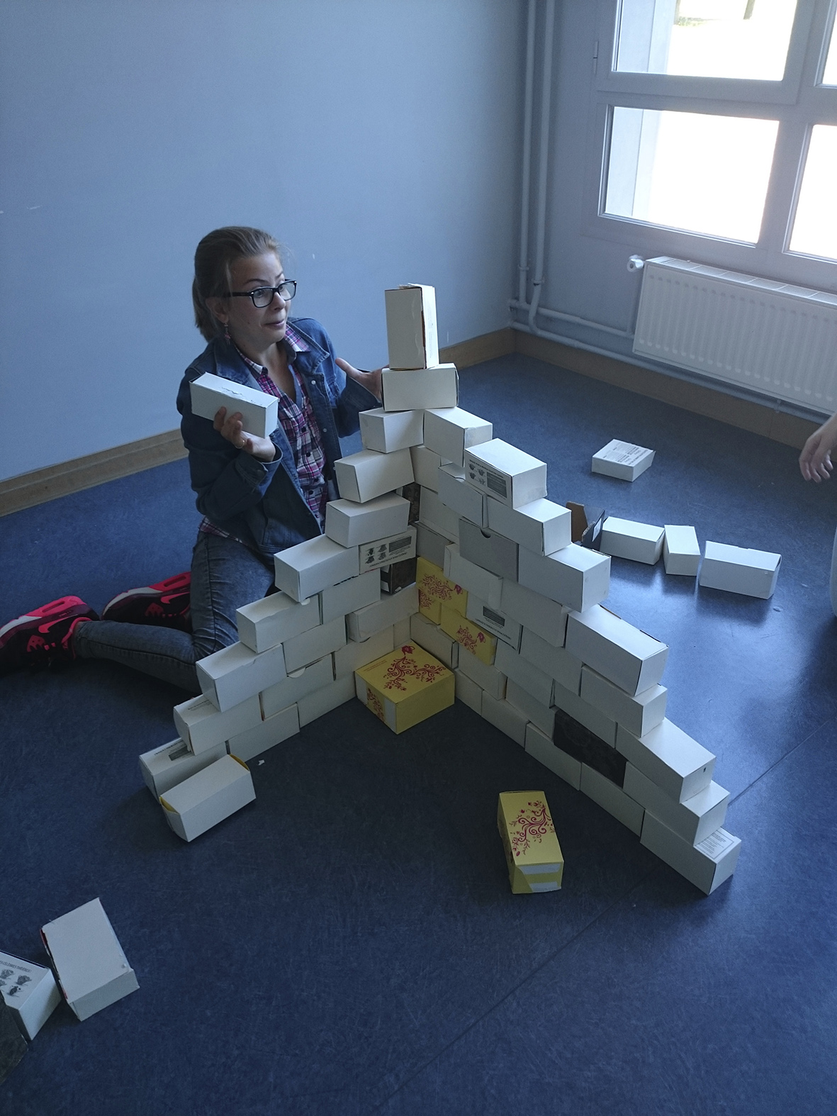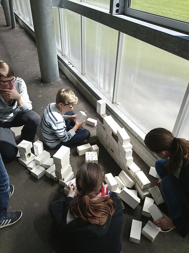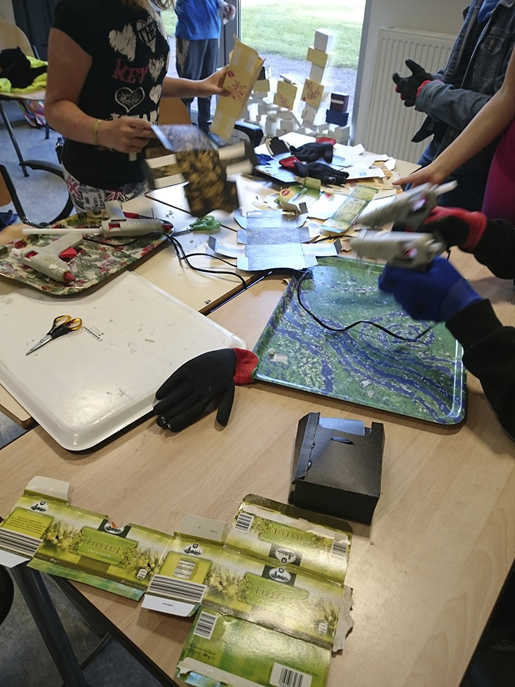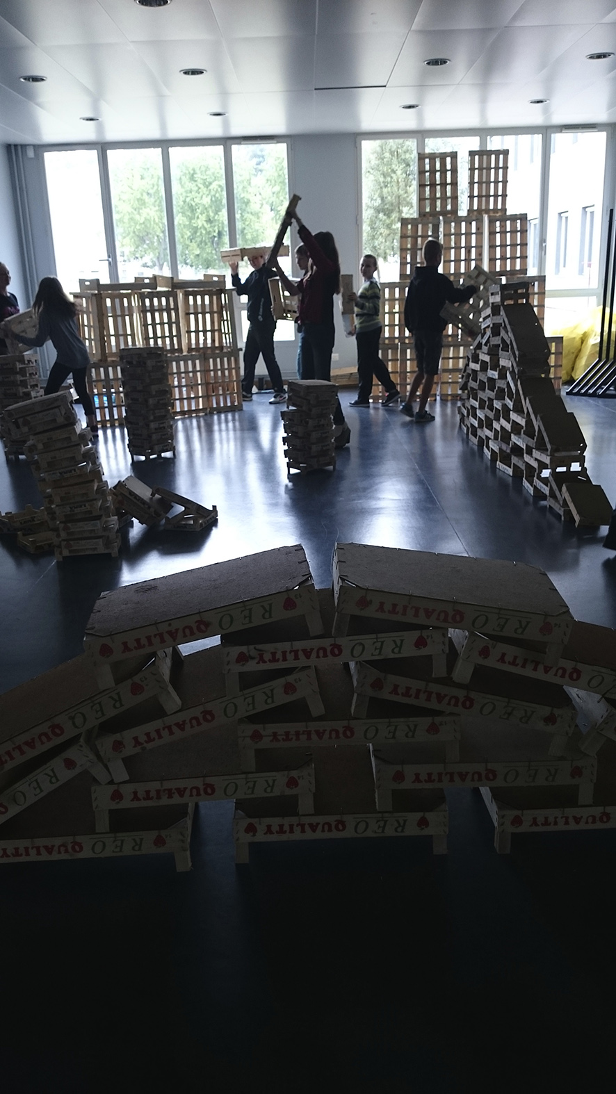 Scénographie à partir d’emballage et de carton – Restitution avec les musiciens de ALOA CHAMBER TRIO /
