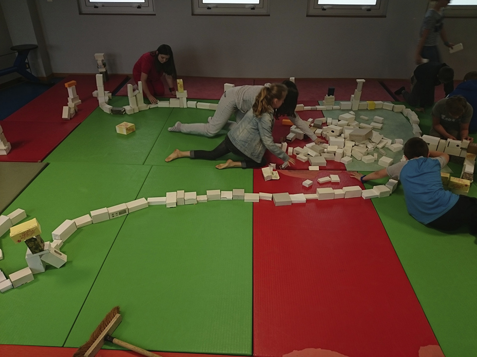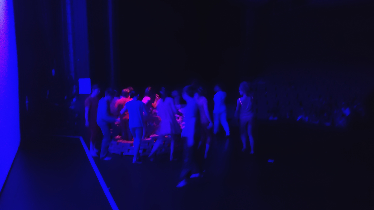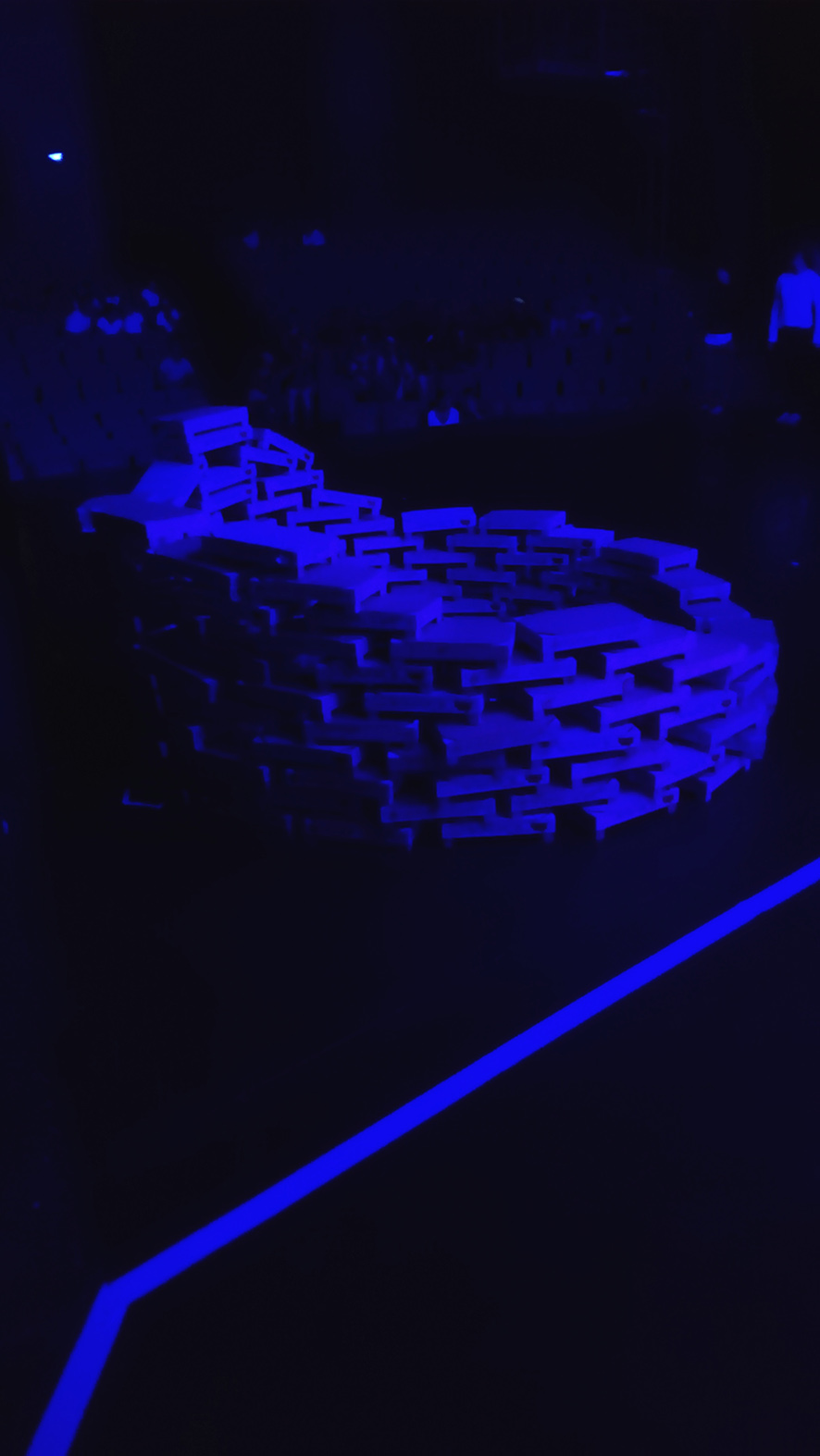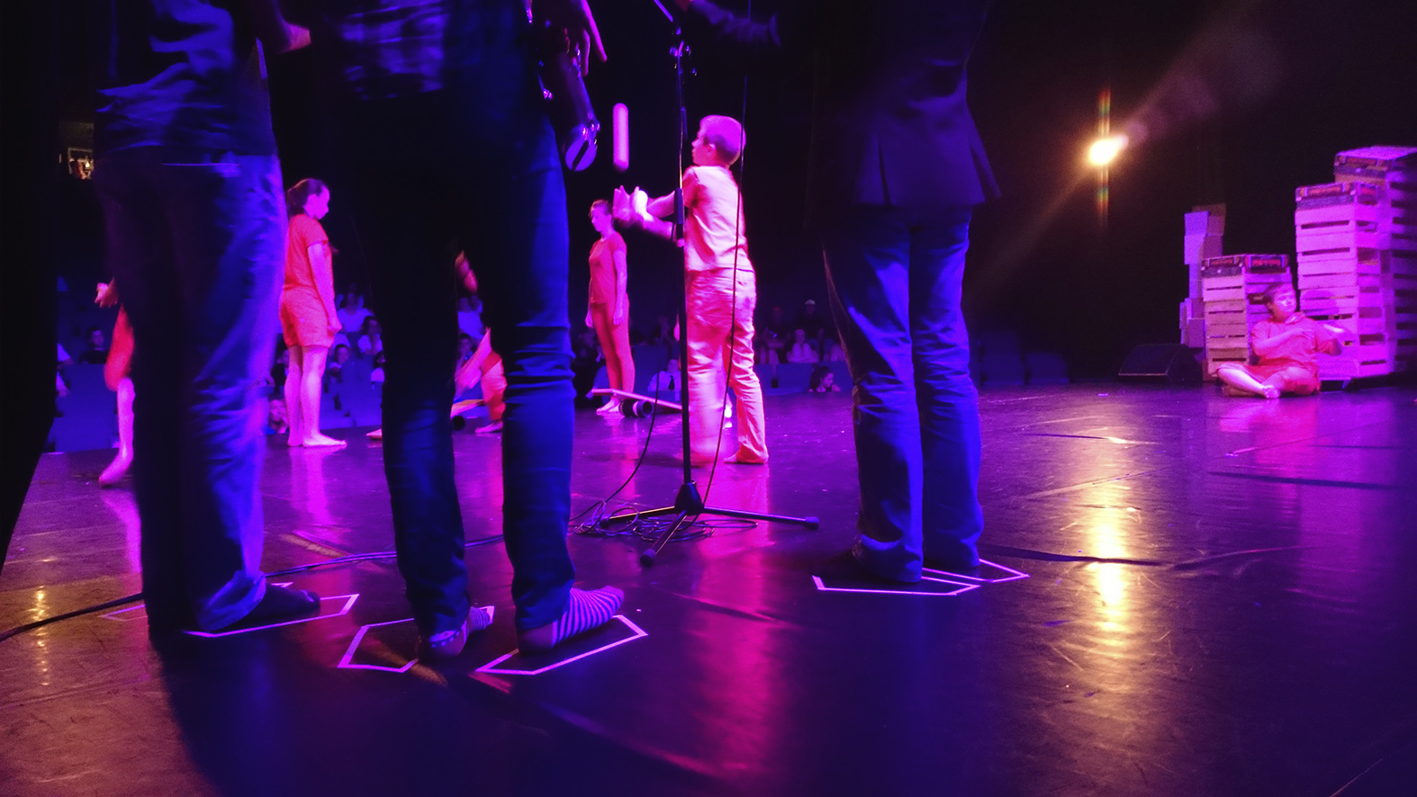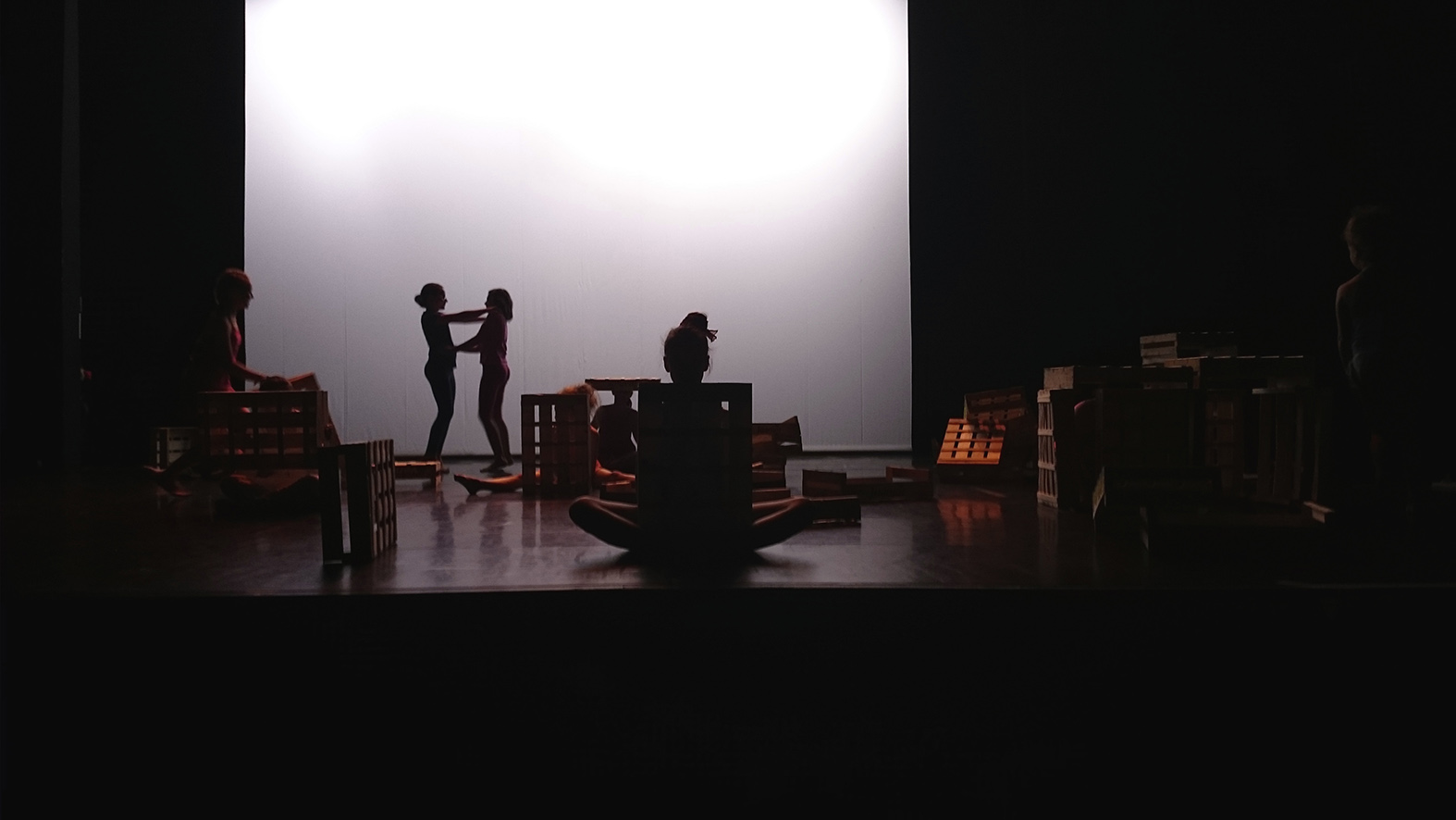 Réalisation de sept tableaux sans fermeture de rideau / L’intention est d’amener les élèves à poser un regard et des geste sur des objets du quotidiens tel que les emballages (par une analyse graphique et une expérimentation via des compositions graphiques et spatiales) dans le but de créer une scénographie pour un spectacle de danse en perpétuel mouvement.