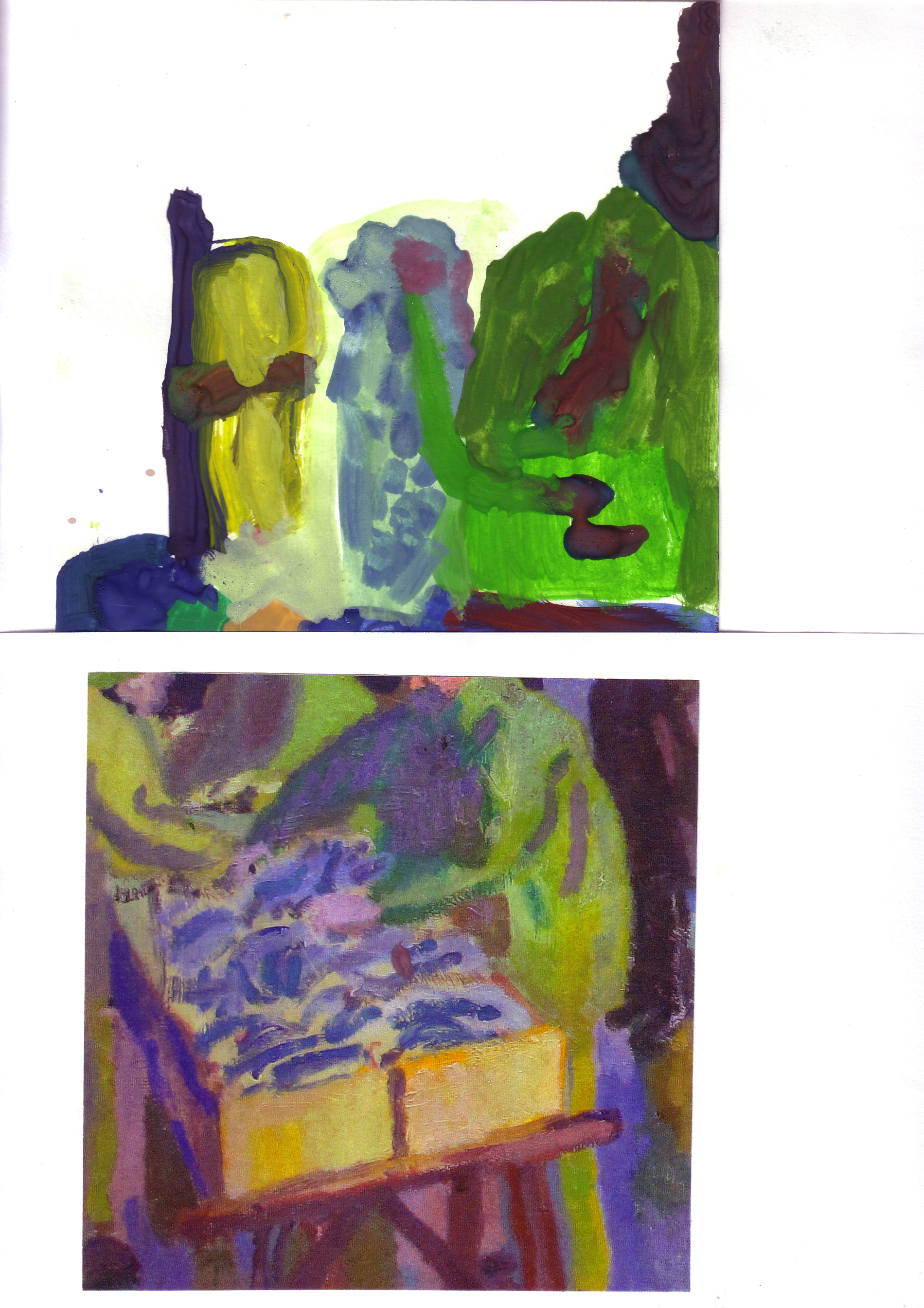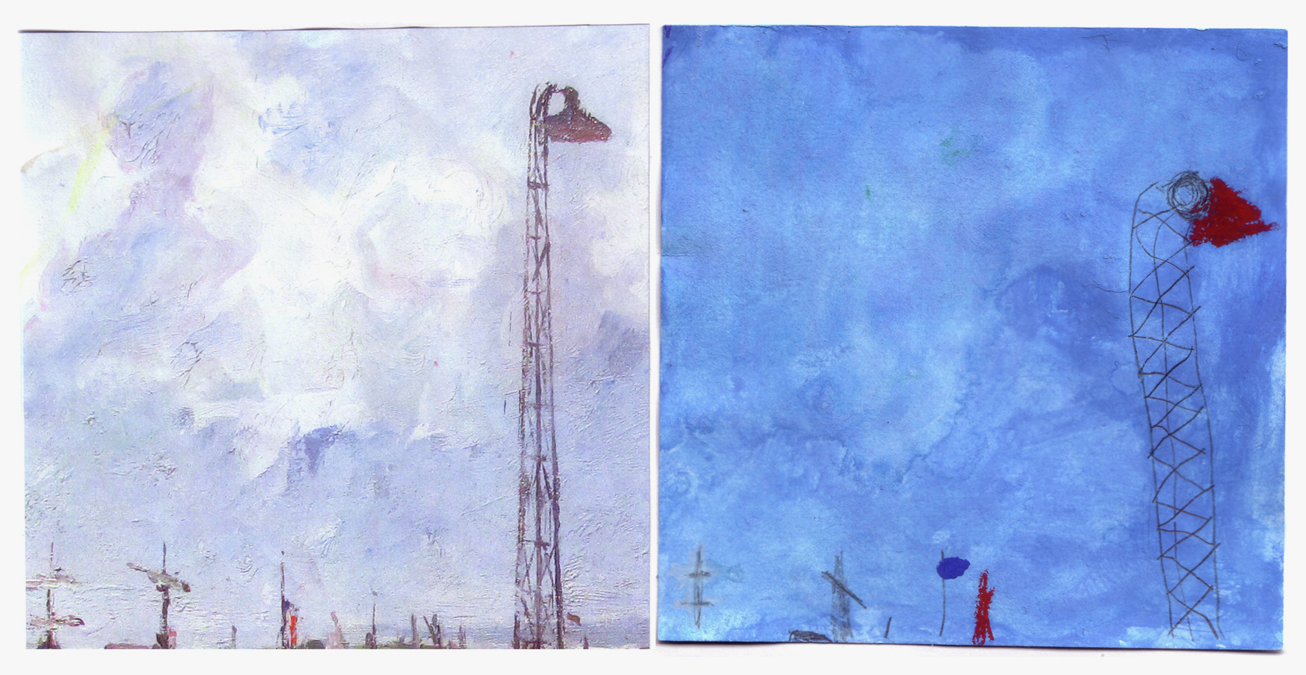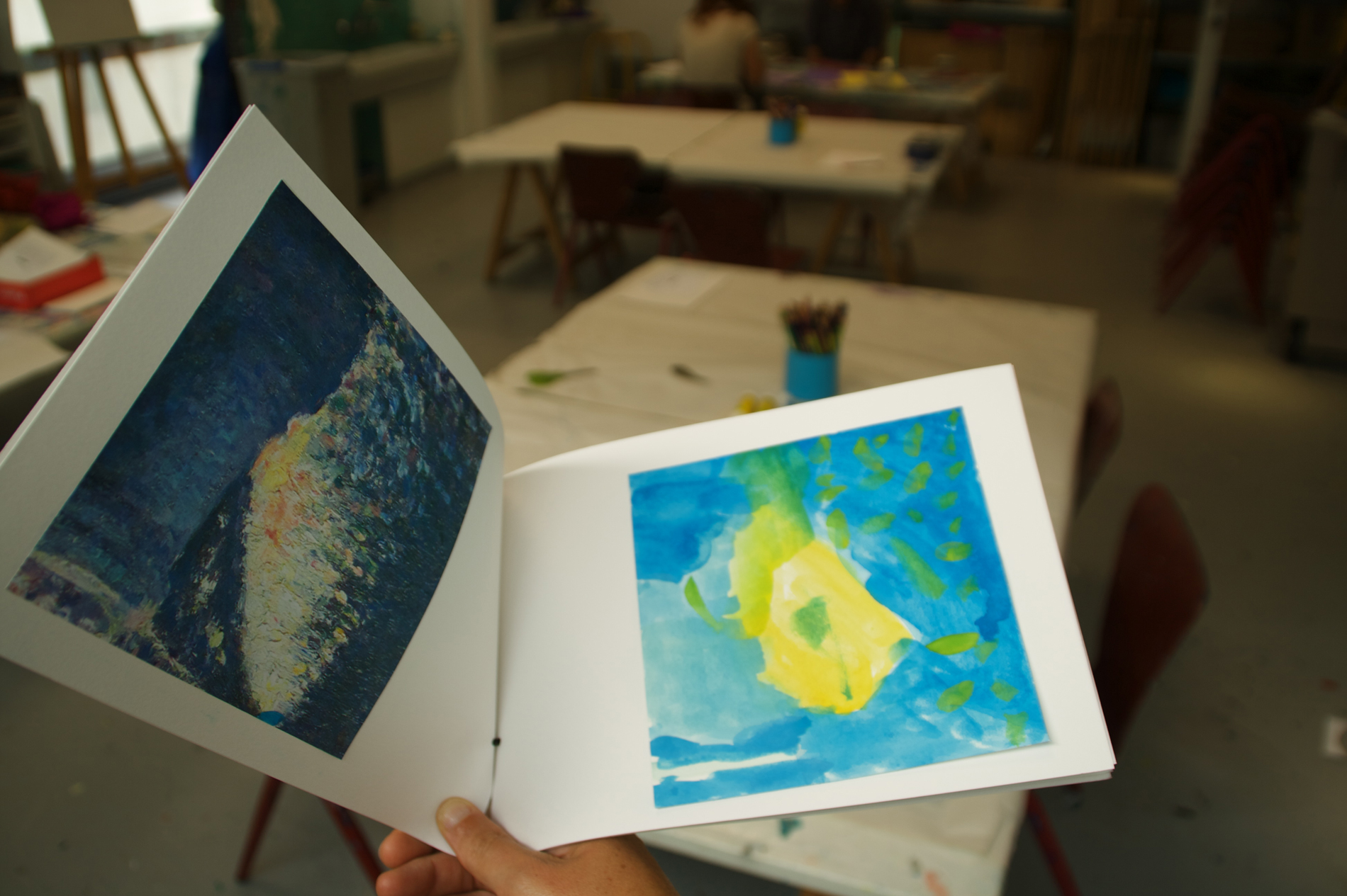 À partir de fragment de ciel, d’eau, ou autre matière grossie provenant de tableaux : expérimentation de plusieurs techniques de peinture, puis confrontation des effets obtenus. Après cette étude minutieuse : recherche dans le musée des tableaux correspondants aux fragments.