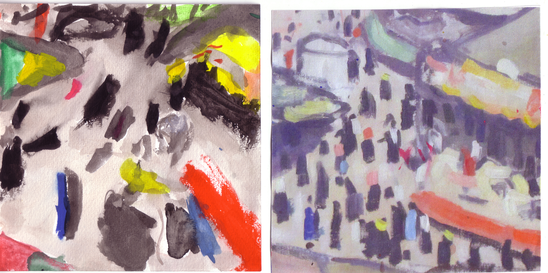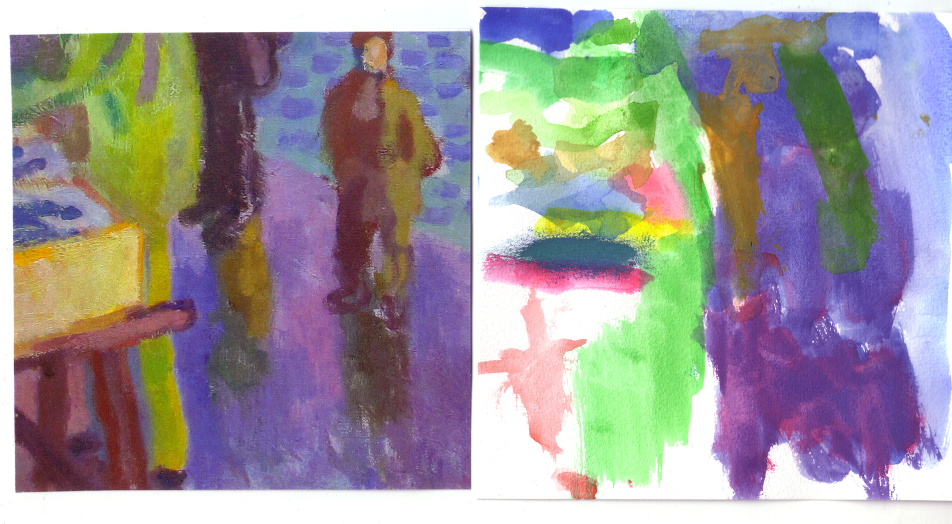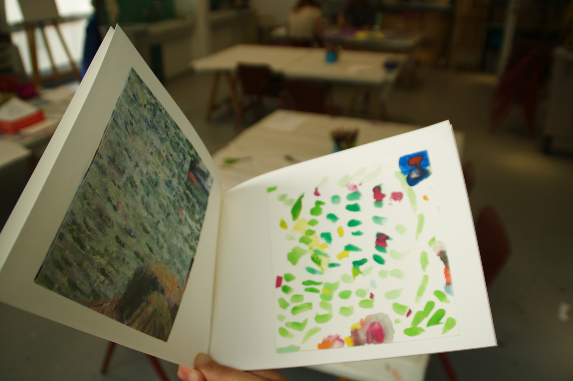 À partir de fragment de ciel, d’eau, ou autre matière grossie provenant de tableaux : expérimentation de plusieurs techniques de peinture, puis confrontation des effets obtenus. Après cette étude minutieuse : recherche dans le musée des tableaux correspondants aux fragments.