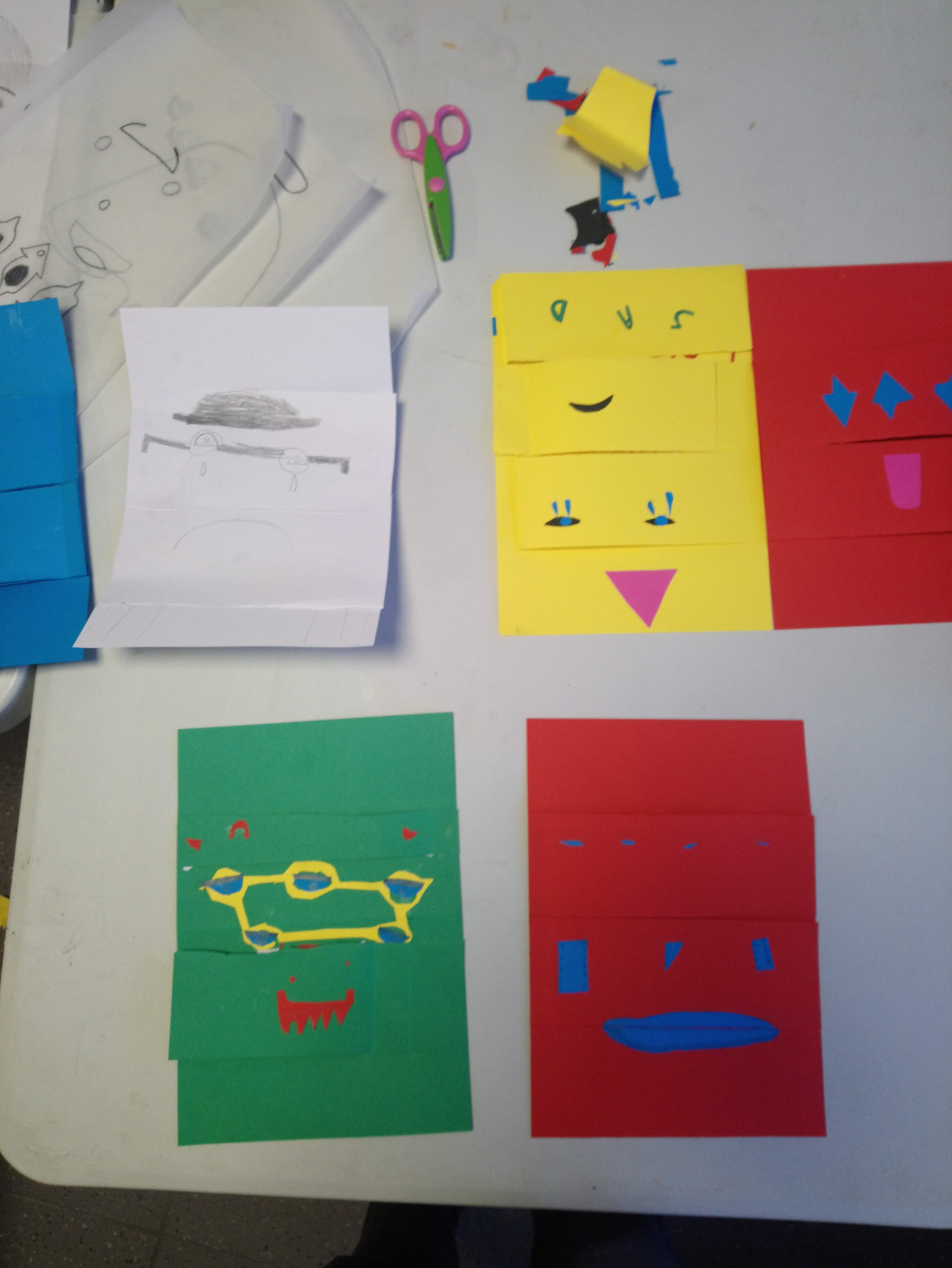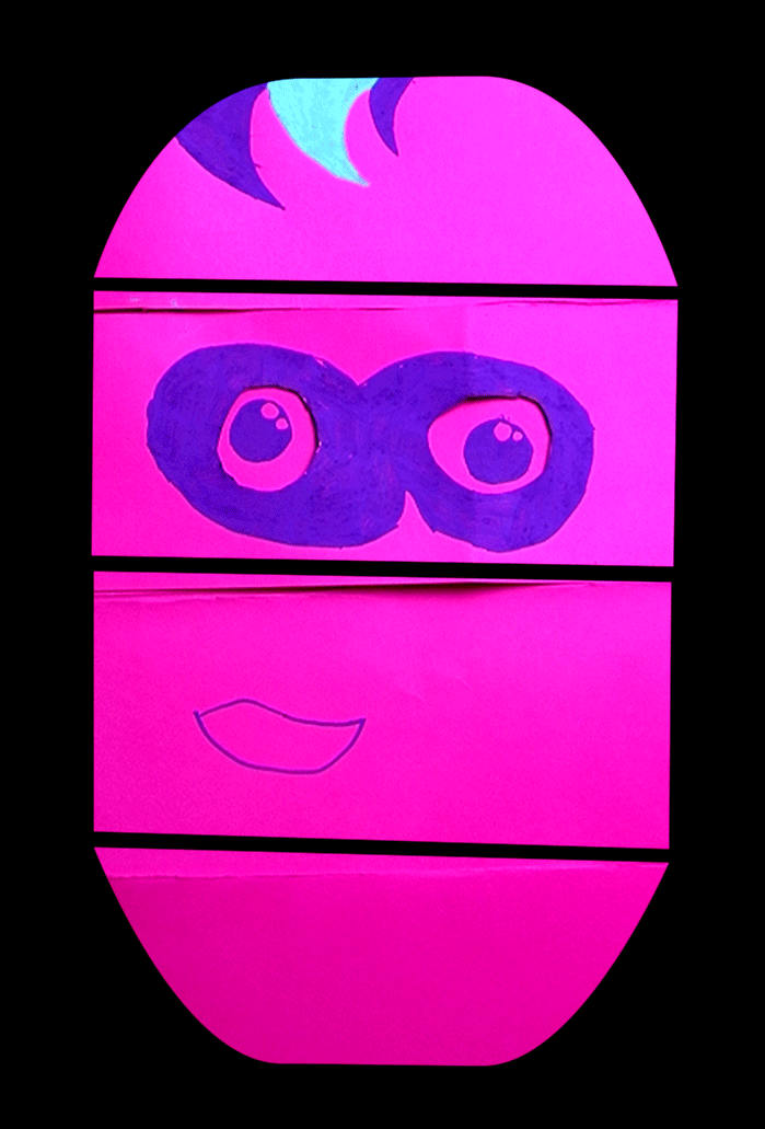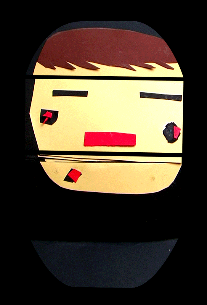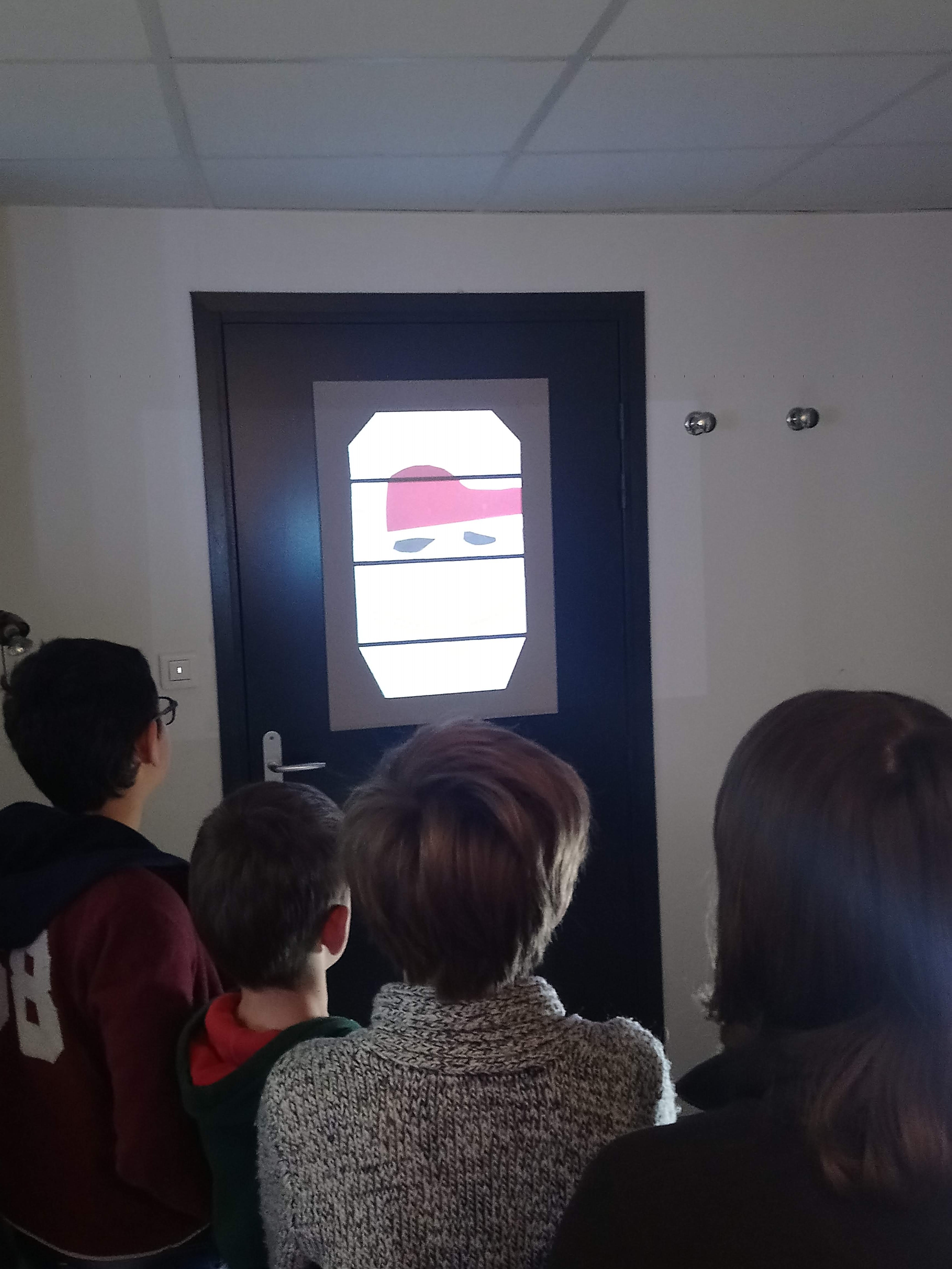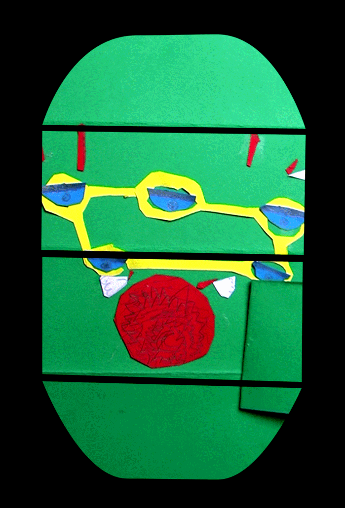 Les enfants ont réalisé des portraits à partir de papiers découpés. Avec les techniques du stop-motion et de la video-projection, leurs productions sont ensuite été projetées sur des gabarit en cartons. Chacun a pu animer son portrait en temps réel.