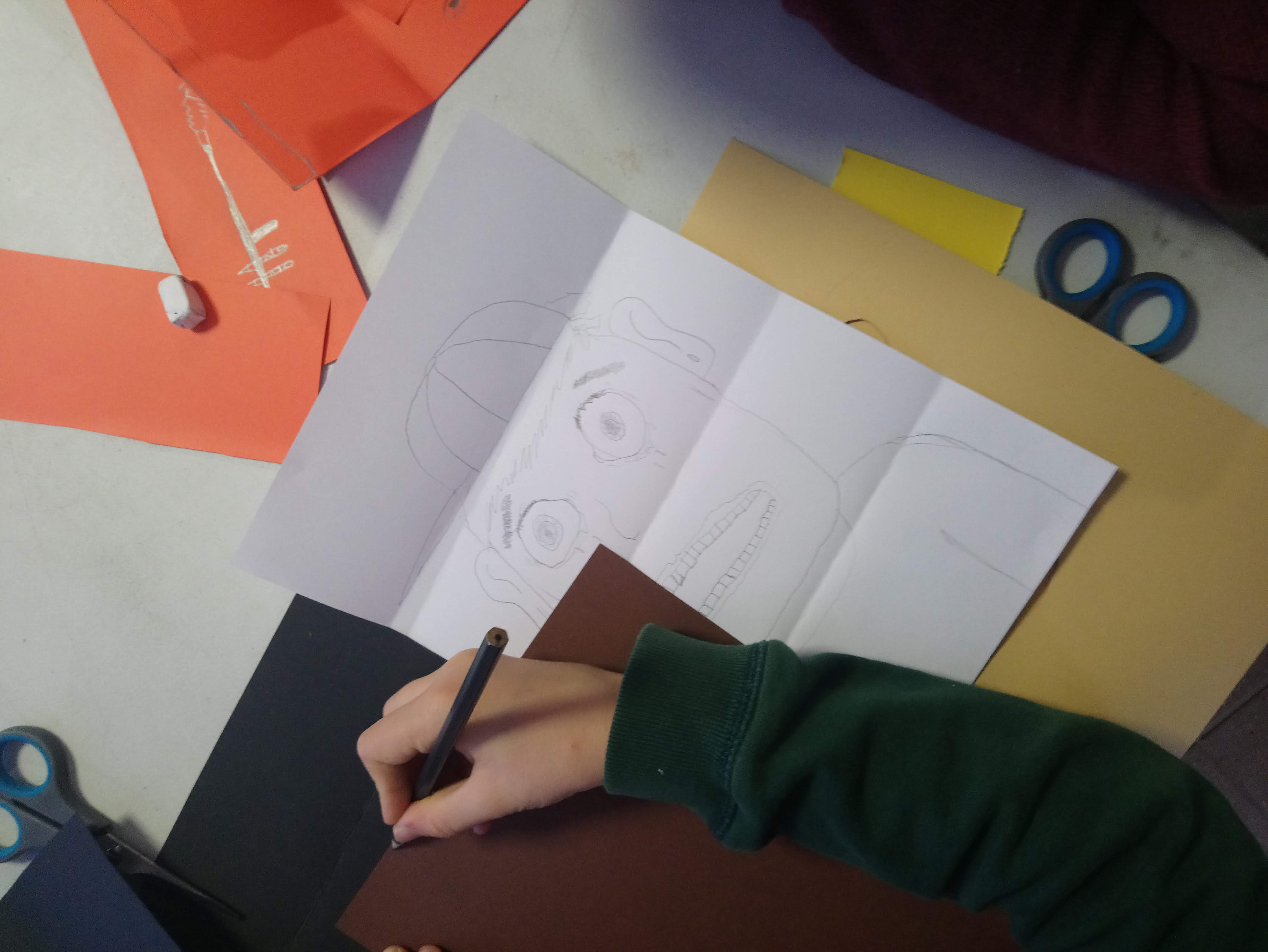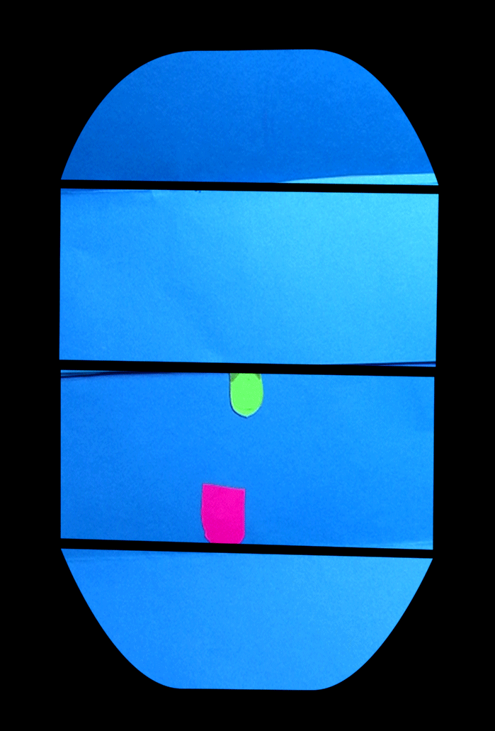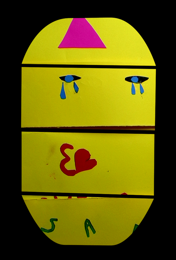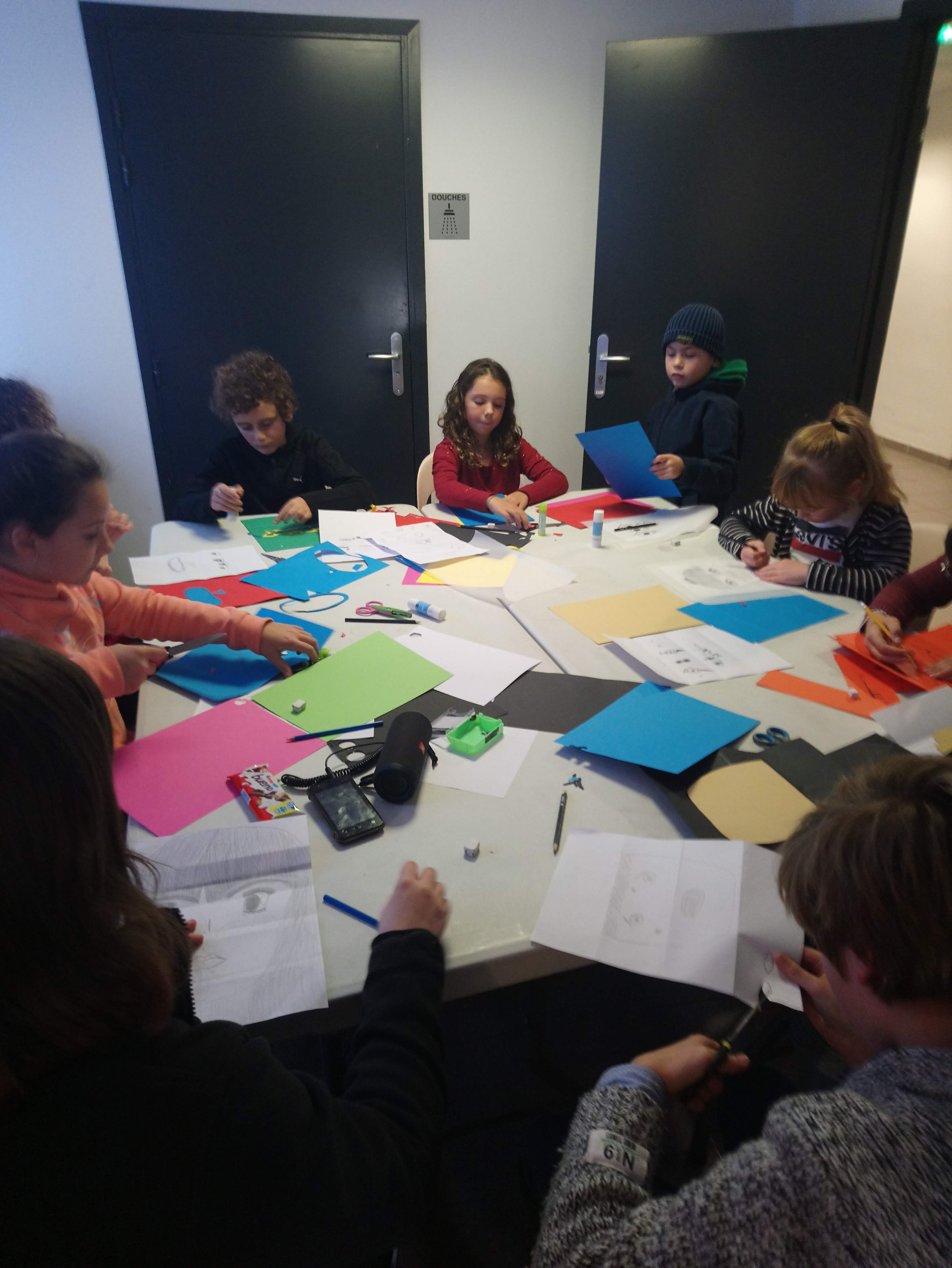 Les enfants ont réalisé des portraits à partir de papiers découpés. Avec les techniques du stop-motion et de la video-projection, leurs productions sont ensuite été projetées sur des gabarit en cartons. Chacun a pu animer son portrait en temps réel.