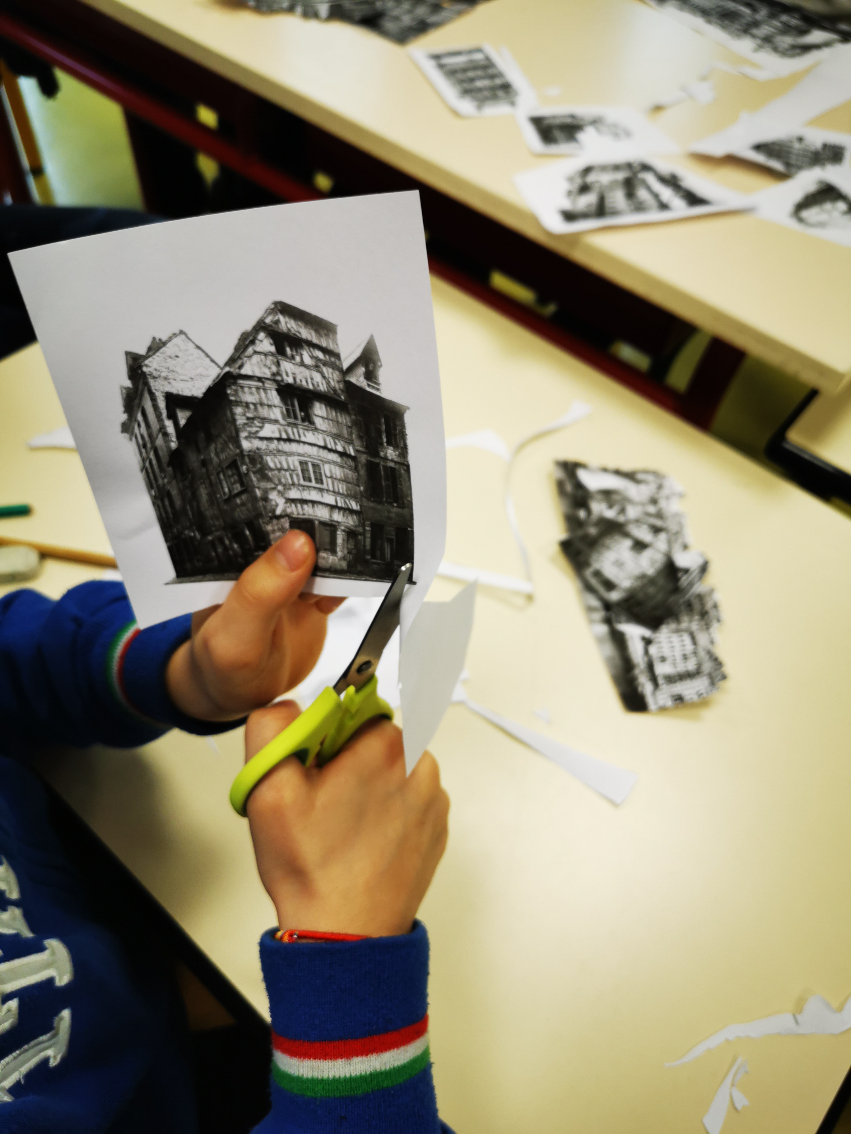 Symbolisées par des éléments graphiques colorés, les enfants racontent l’avant guerre (1517 – 1895), la destruction (1941 – 1945), la reconstruction (1947 – 1965), et la période contemporaine (1980 – 2019).