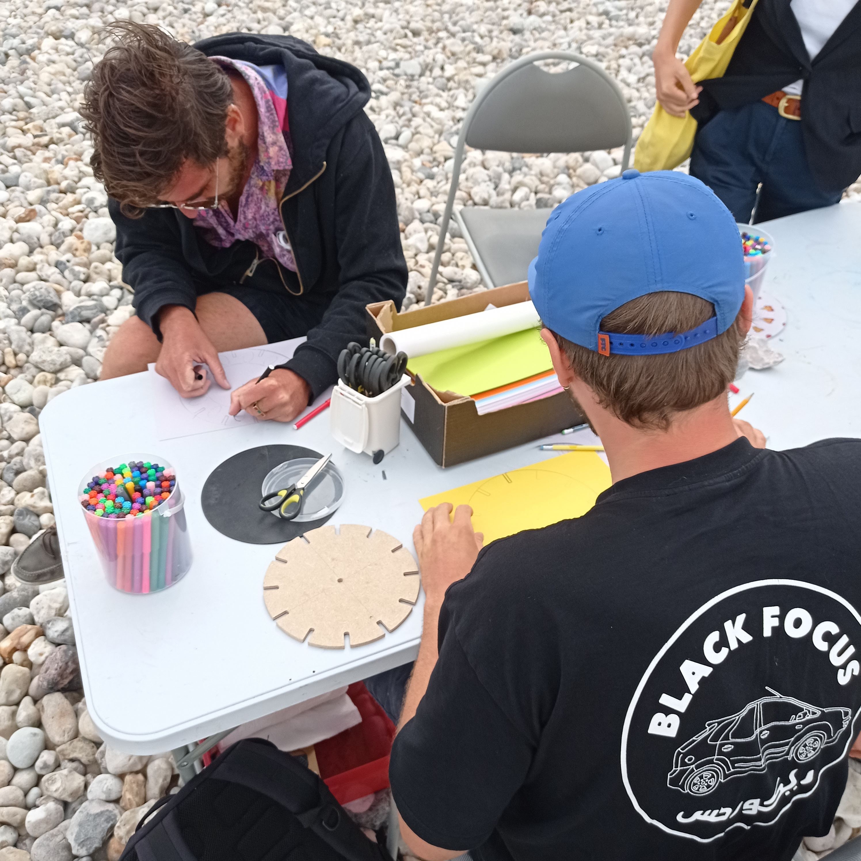 Les participants ont dessiné une séquence et laissé le vent l’animer, grâce au phénakistiscope fabriqué par Simon !