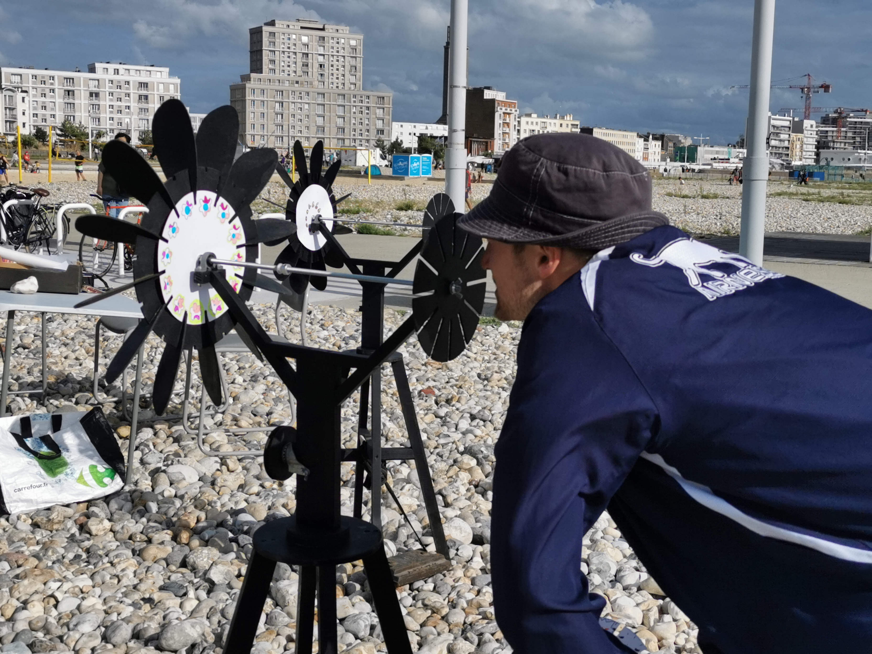 Dans le cadre de GRAVE 2020, festival du livre d’artiste et de l’image imprimée, qui a eu lieu les 22 et 23 août sur la plage du Havre, Simon Leroux a proposé des ateliers de création animée à la main (et au vent).