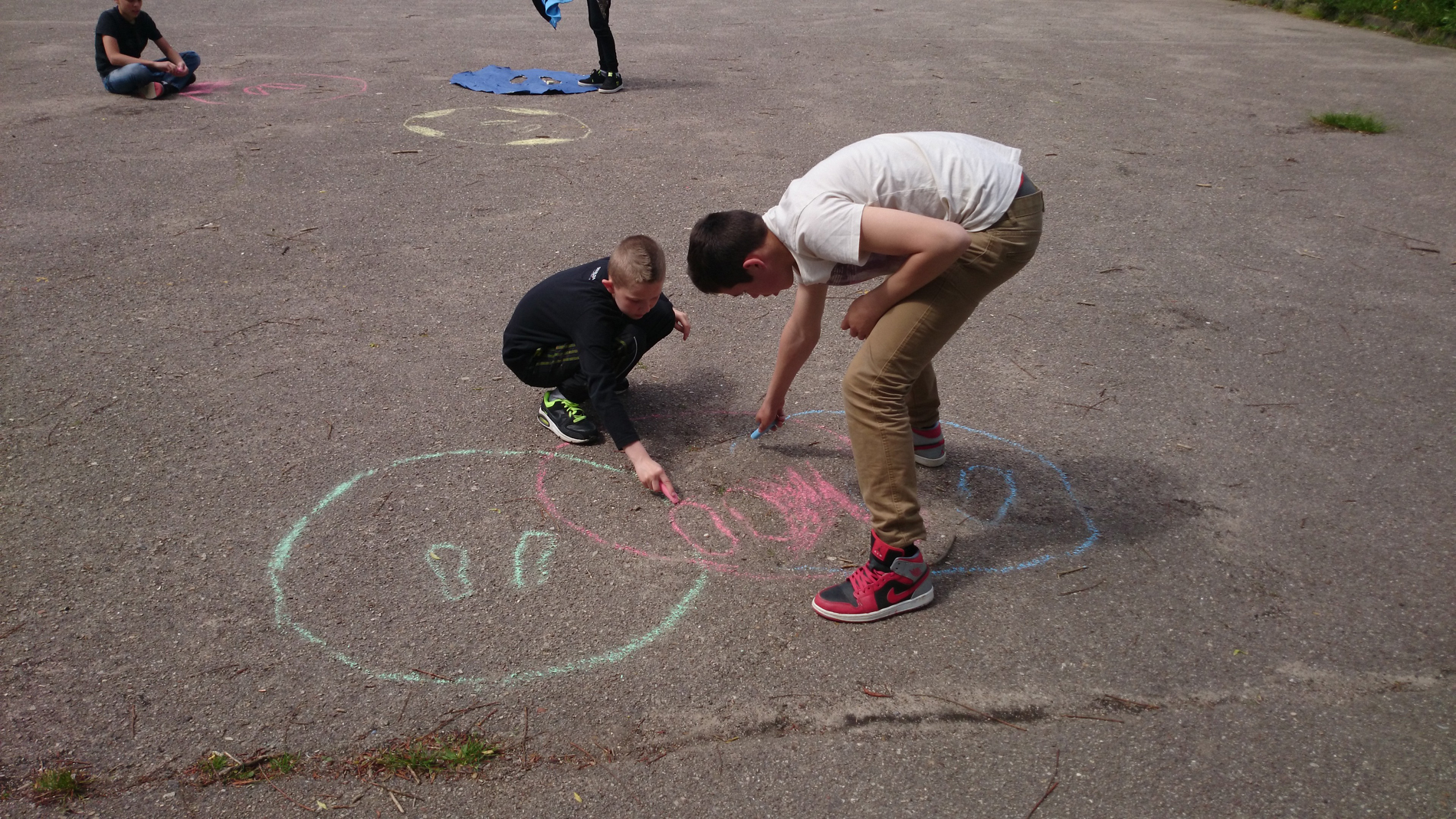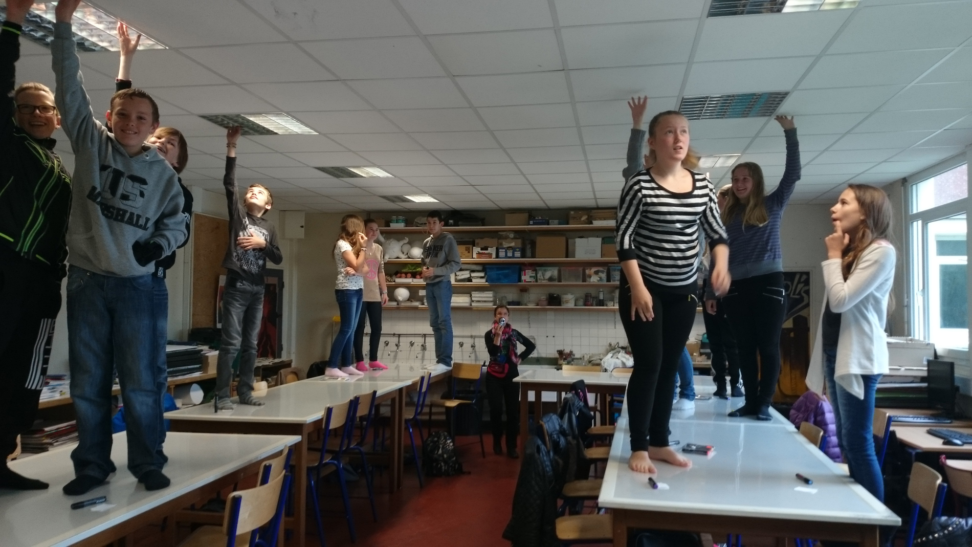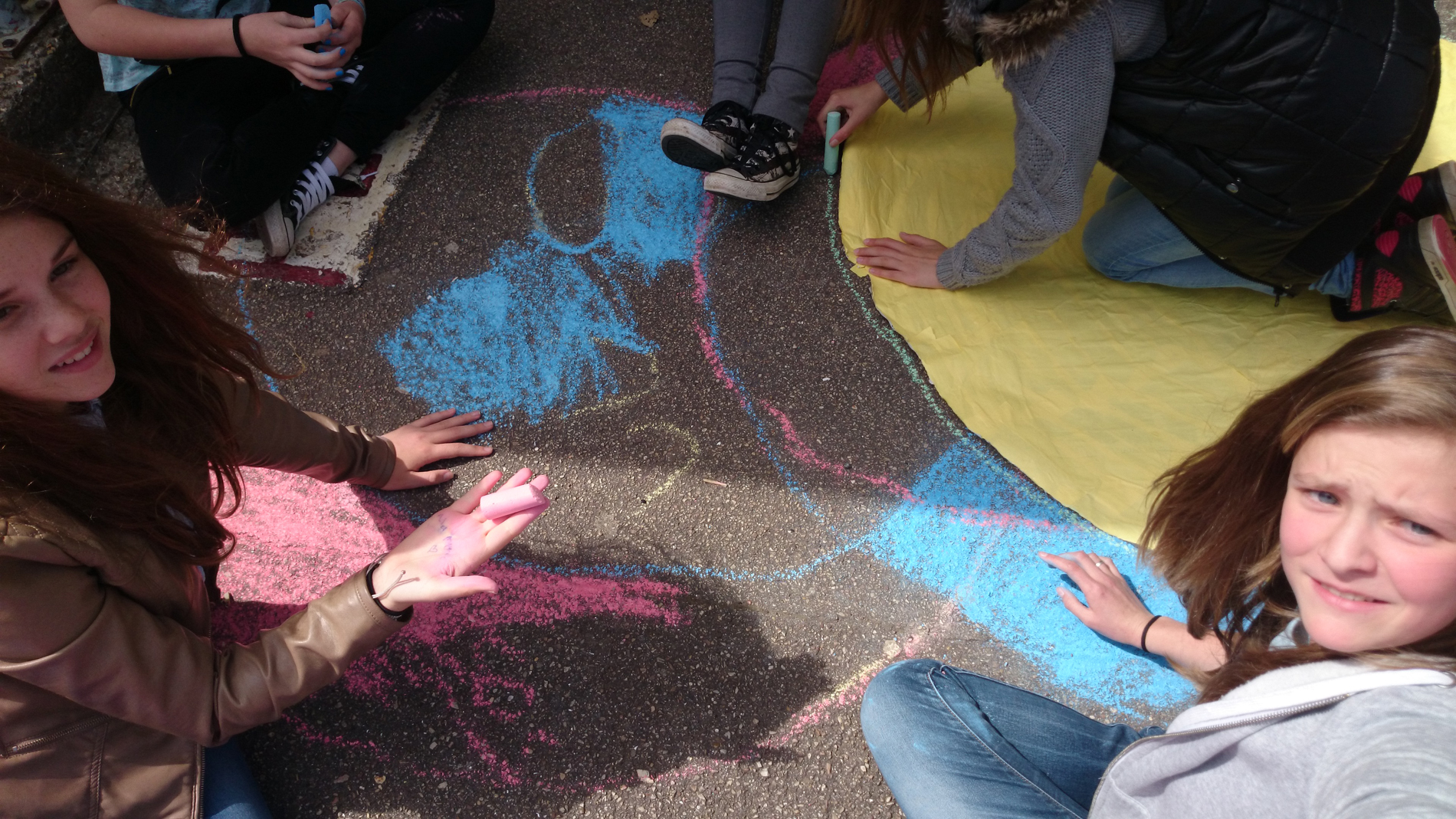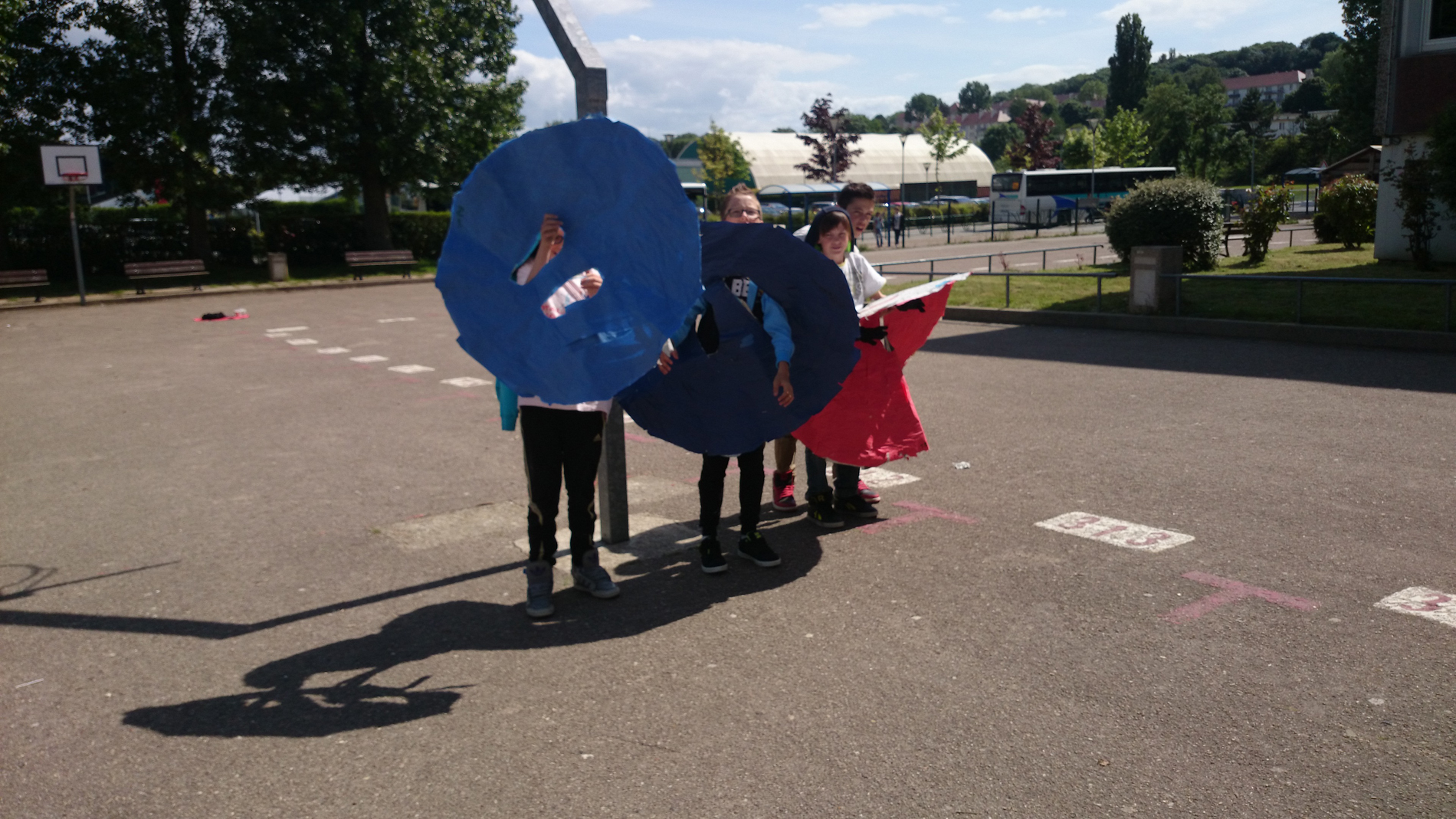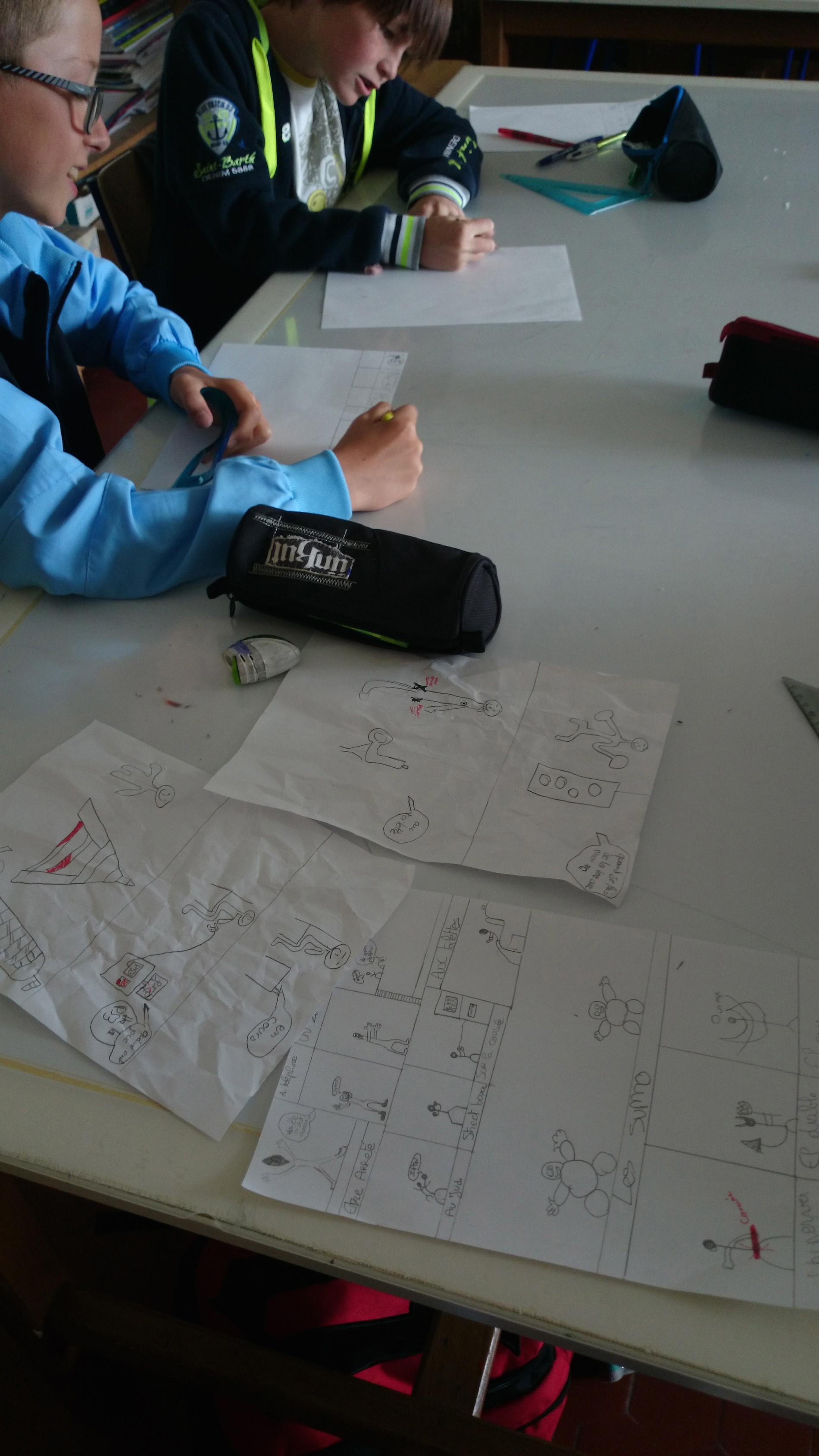 puis sélection de dessins + jeu des scènes dans la classe et photo dans la cour