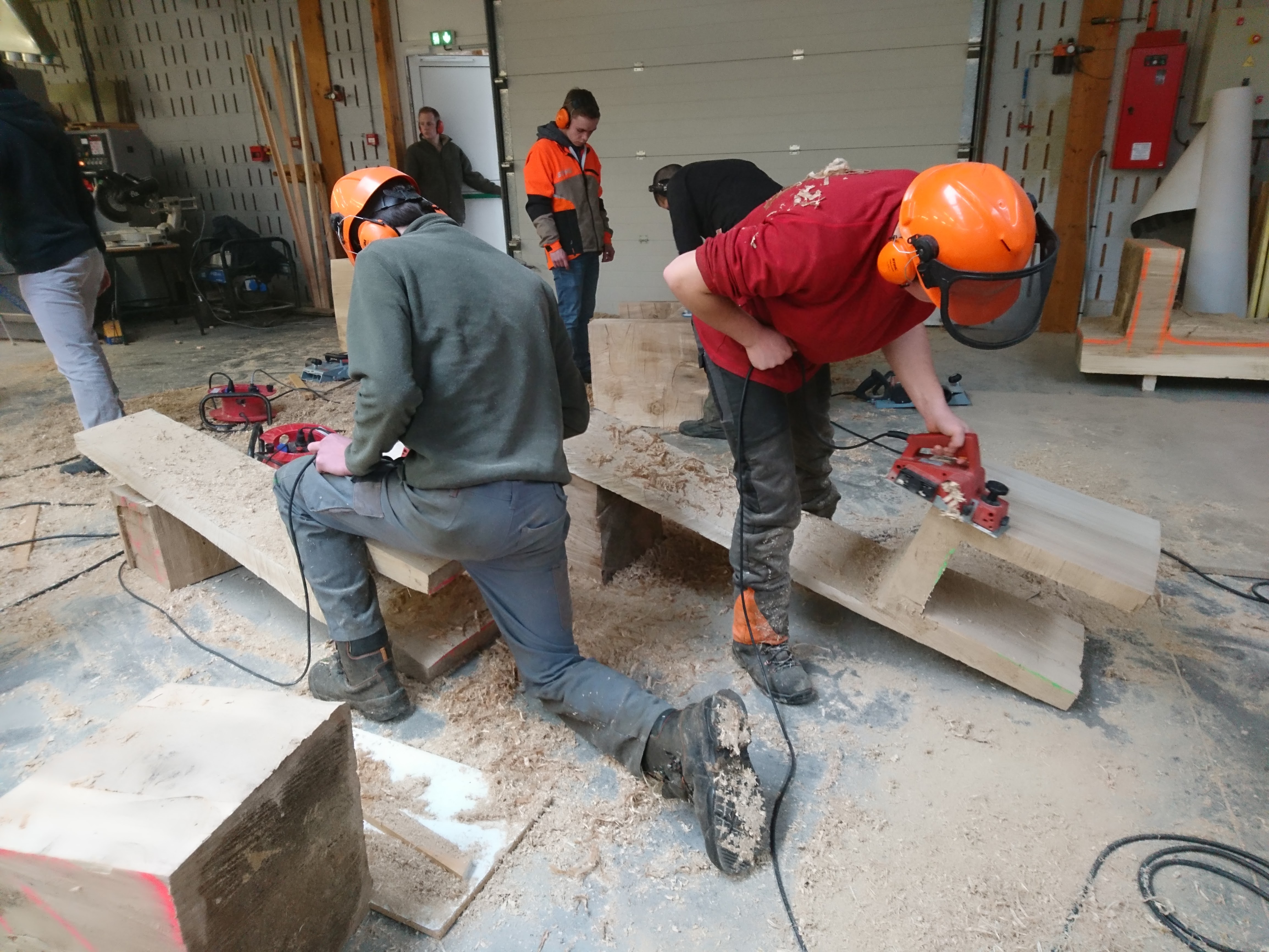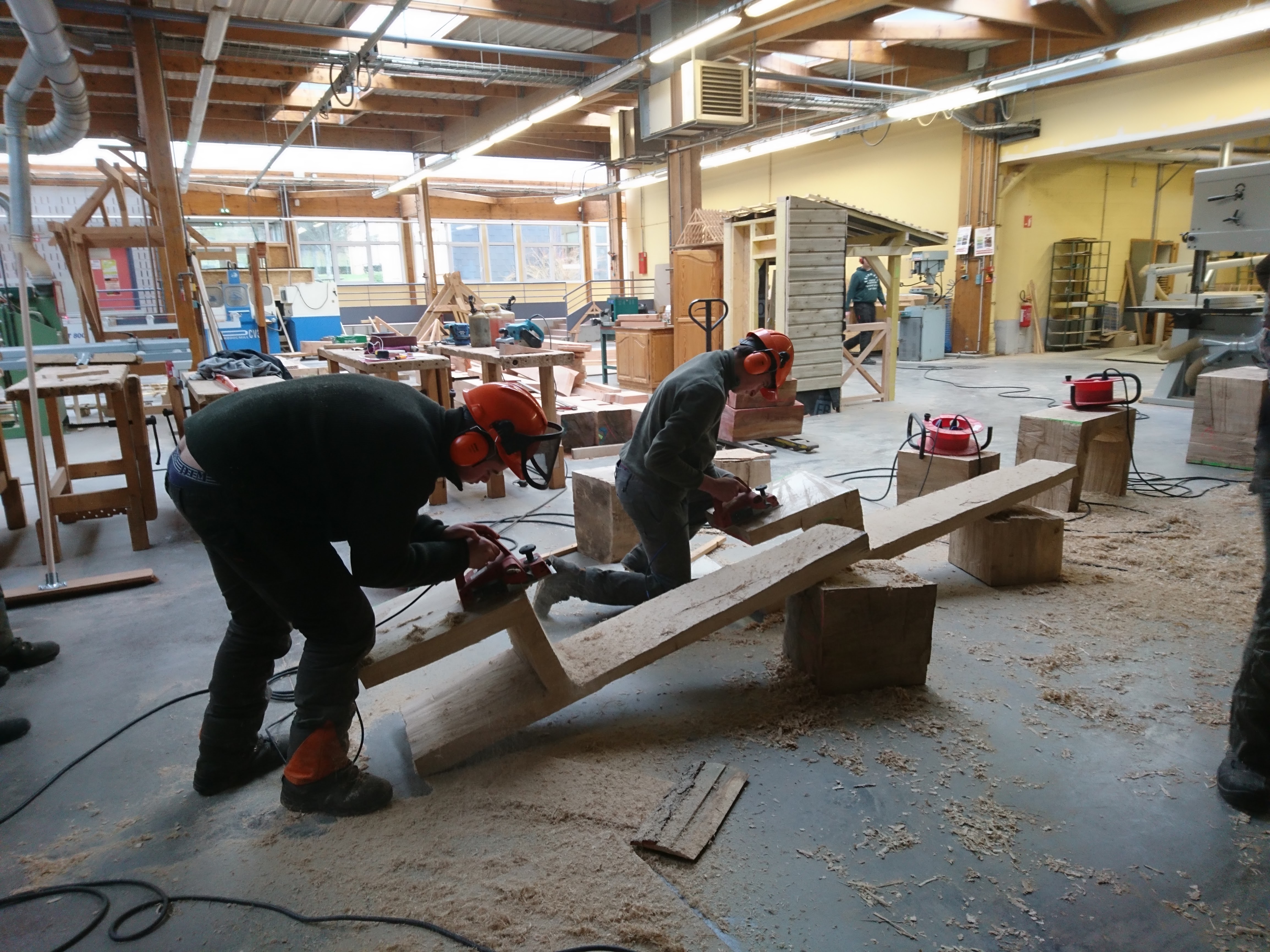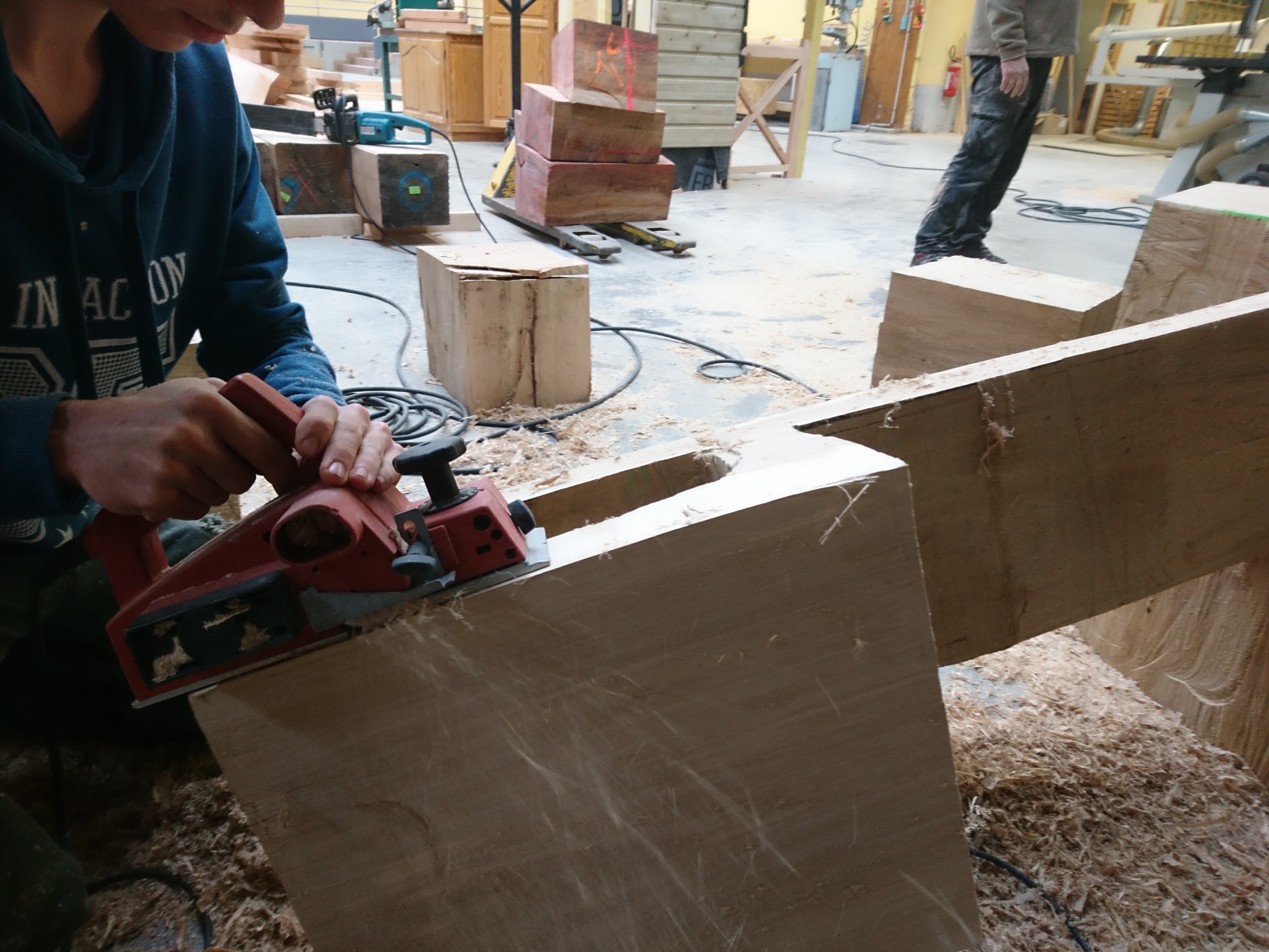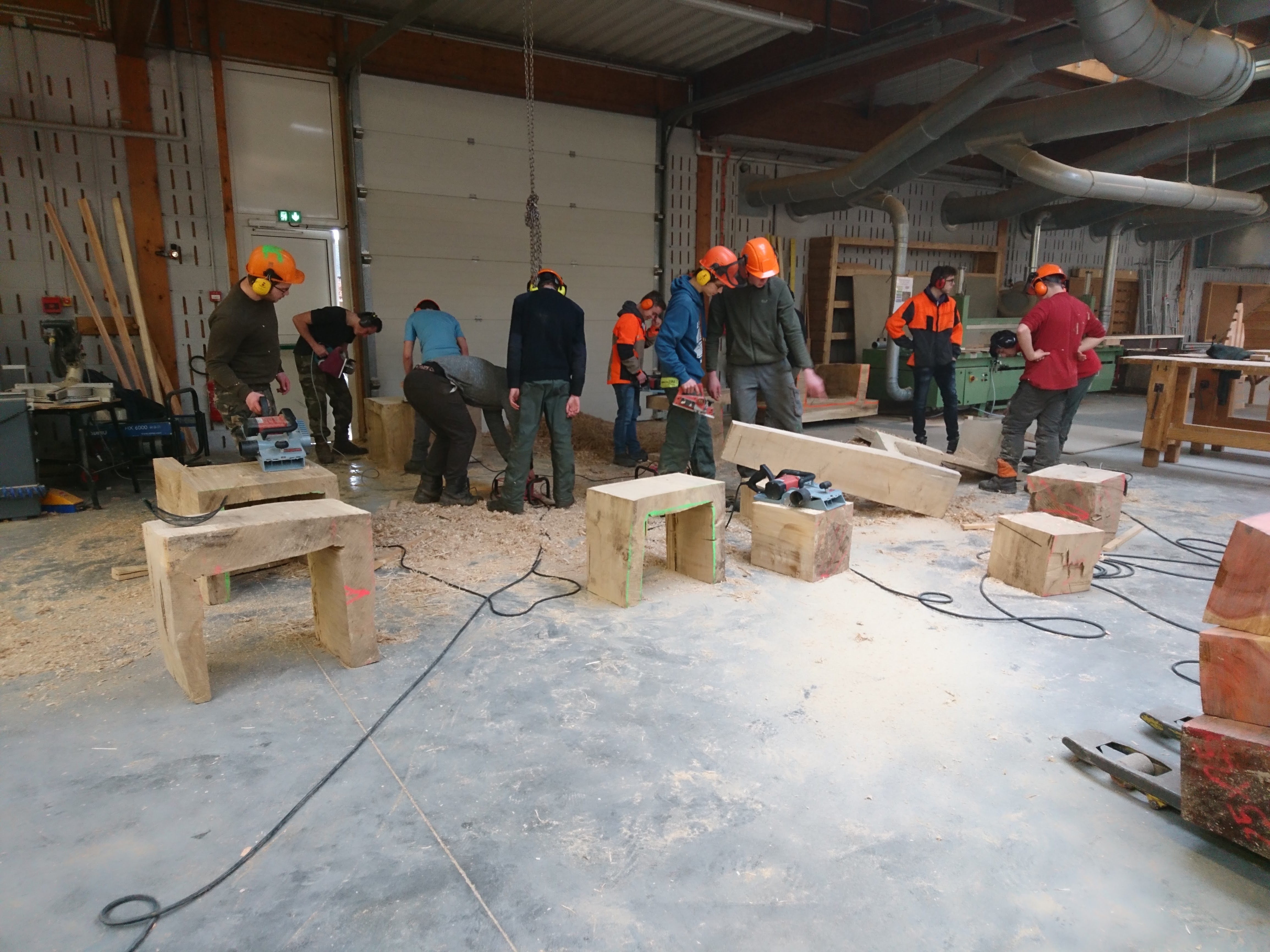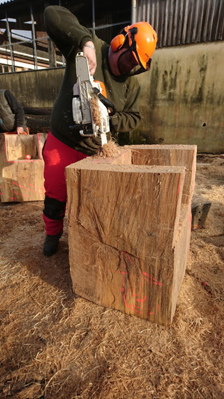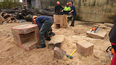 Les terminales ont appréhendé une autre manière de concevoir et considérer l’arbre et l’outil (tronçonneuse) au travers de la réalisation de fauteuils et d’une table en Monoxyle en côtoyant le savoir-faire spécifique du traitement du bois avec un ébéniste/bûcheron (Bertrand Lacourt). La Classe de terminale « Forêt » lui a été confié afin qu’au travers de réalisation de mobilier réalisé à partir de grumes de peuplier présentes à la scierie, il y partage son savoir-faire en tant qu’artisan ; ceci par l’appréhension de nouveaux gestes, une façon différente de considérer l’arbre, le bois, sa provenance, la machine, la technique et la posture du corps, l’utilisation de certains types de bois dans le domaine du luxe.