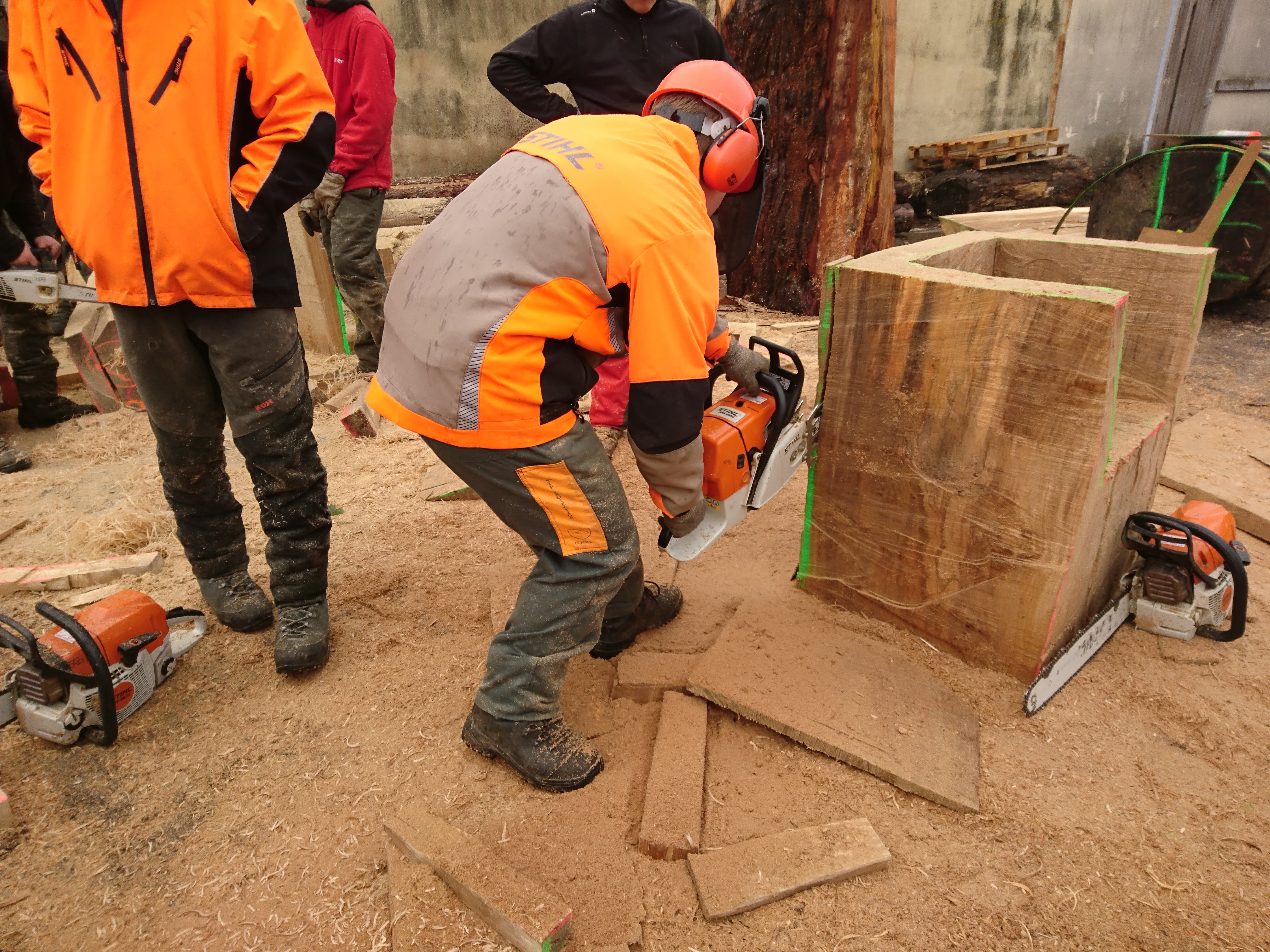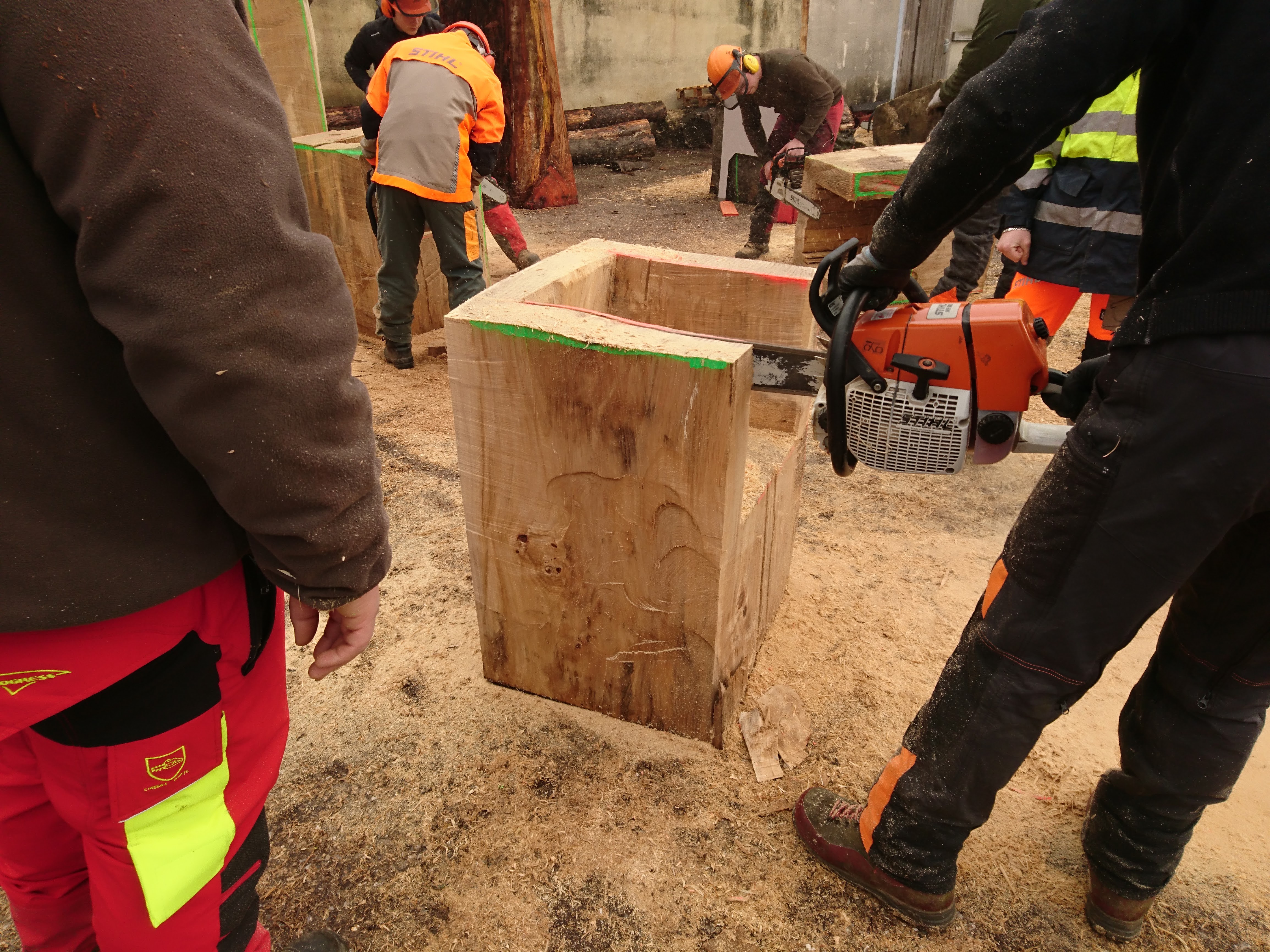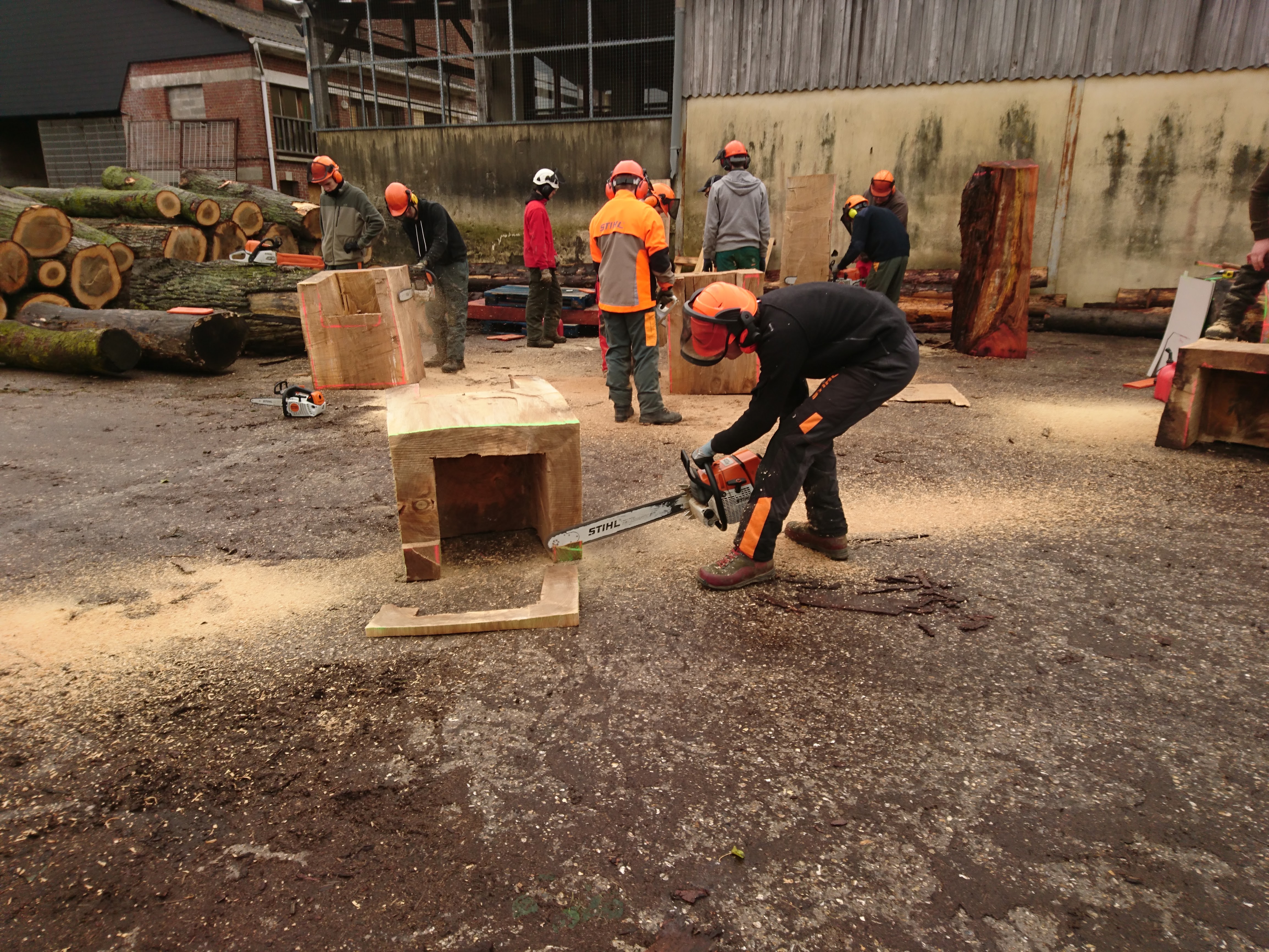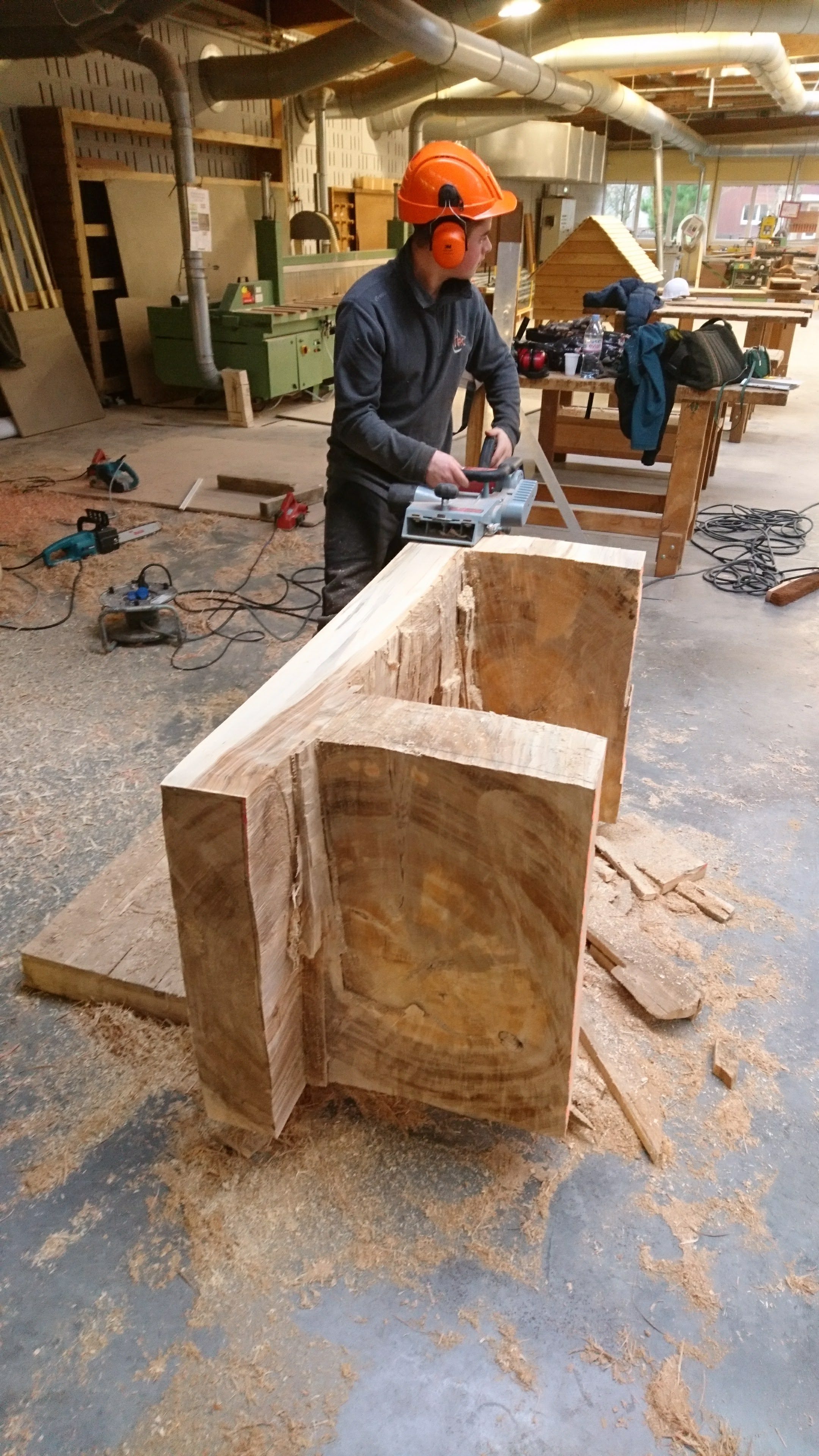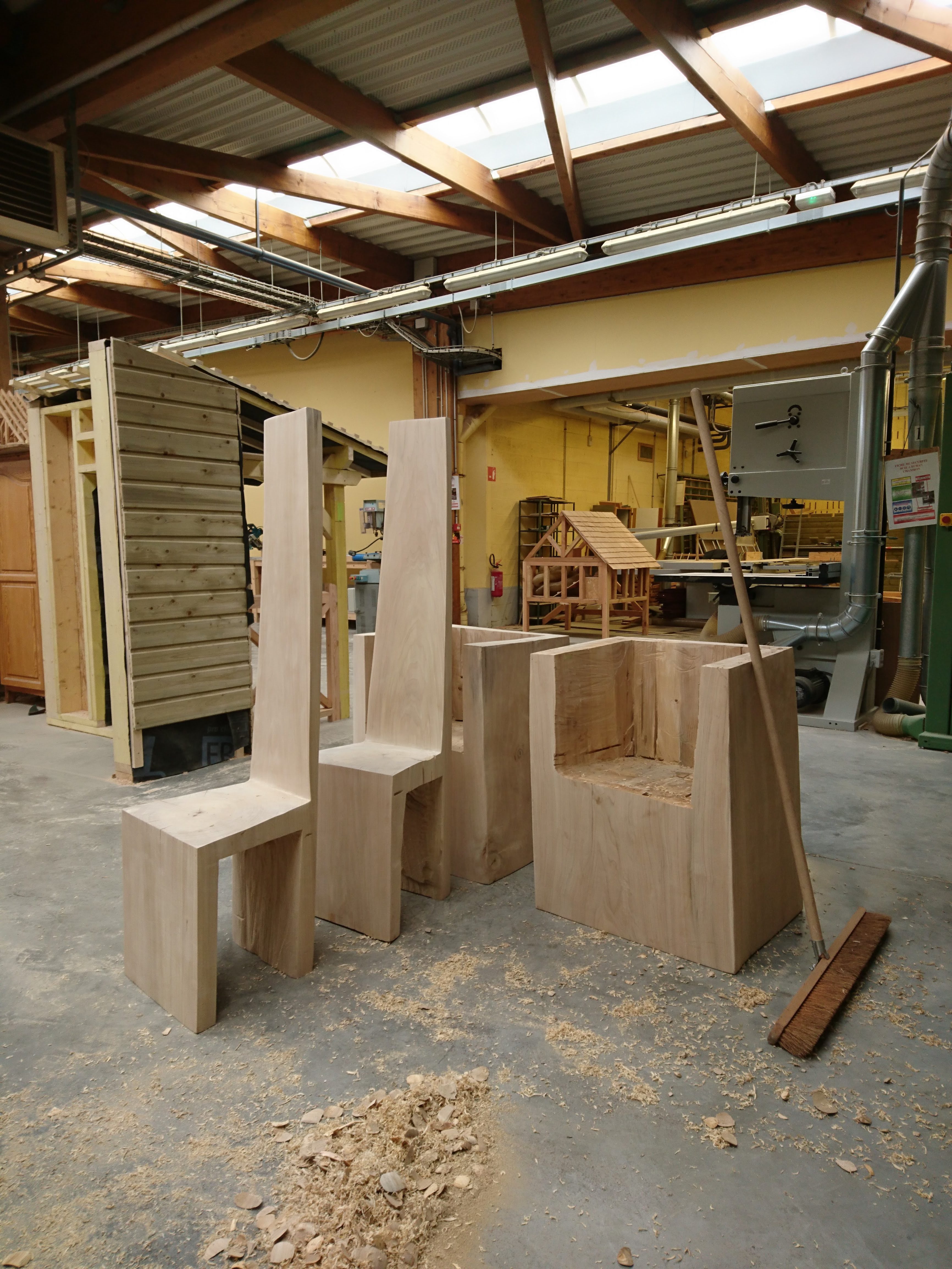 Les terminales ont appréhendé une autre manière de concevoir et considérer l’arbre et l’outil (tronçonneuse) au travers de la réalisation de fauteuils et d’une table en Monoxyle en côtoyant le savoir-faire spécifique du traitement du bois avec un ébéniste/bûcheron (Bertrand Lacourt). La Classe de terminale « Forêt » lui a été confié afin qu’au travers de réalisation de mobilier réalisé à partir de grumes de peuplier présentes à la scierie, il y partage son savoir-faire en tant qu’artisan ; ceci par l’appréhension de nouveaux gestes, une façon différente de considérer l’arbre, le bois, sa provenance, la machine, la technique et la posture du corps, l’utilisation de certains types de bois dans le domaine du luxe.