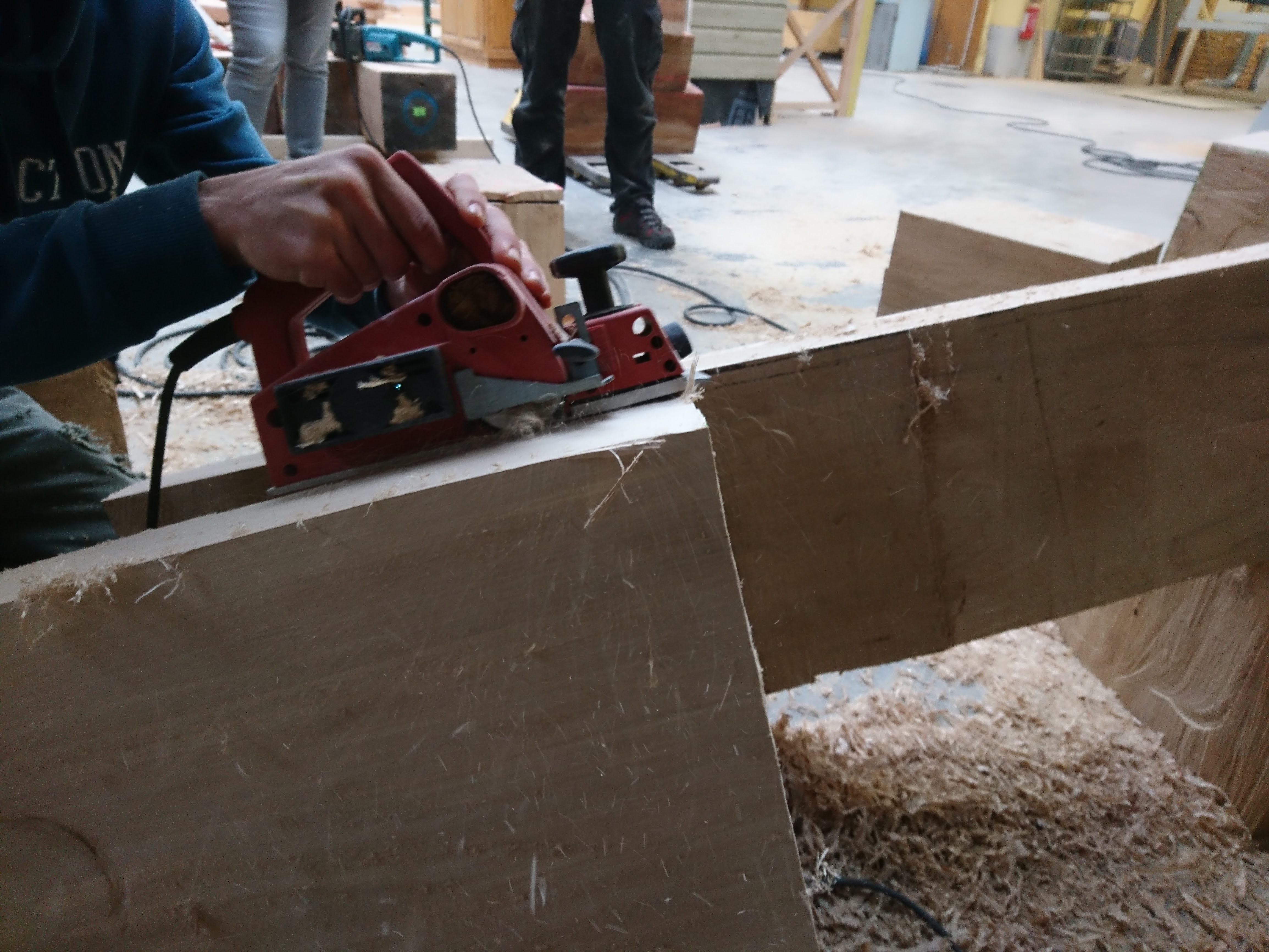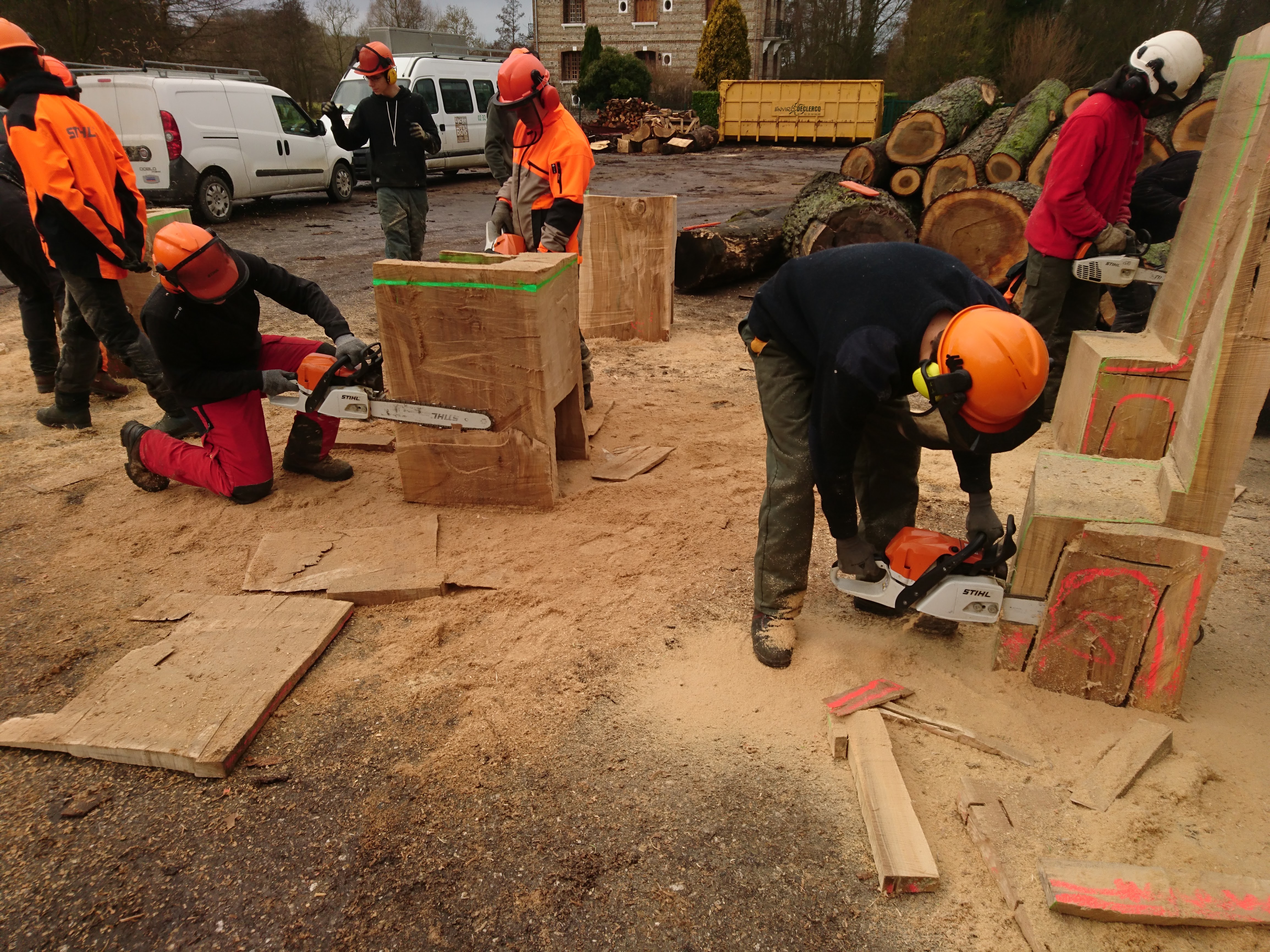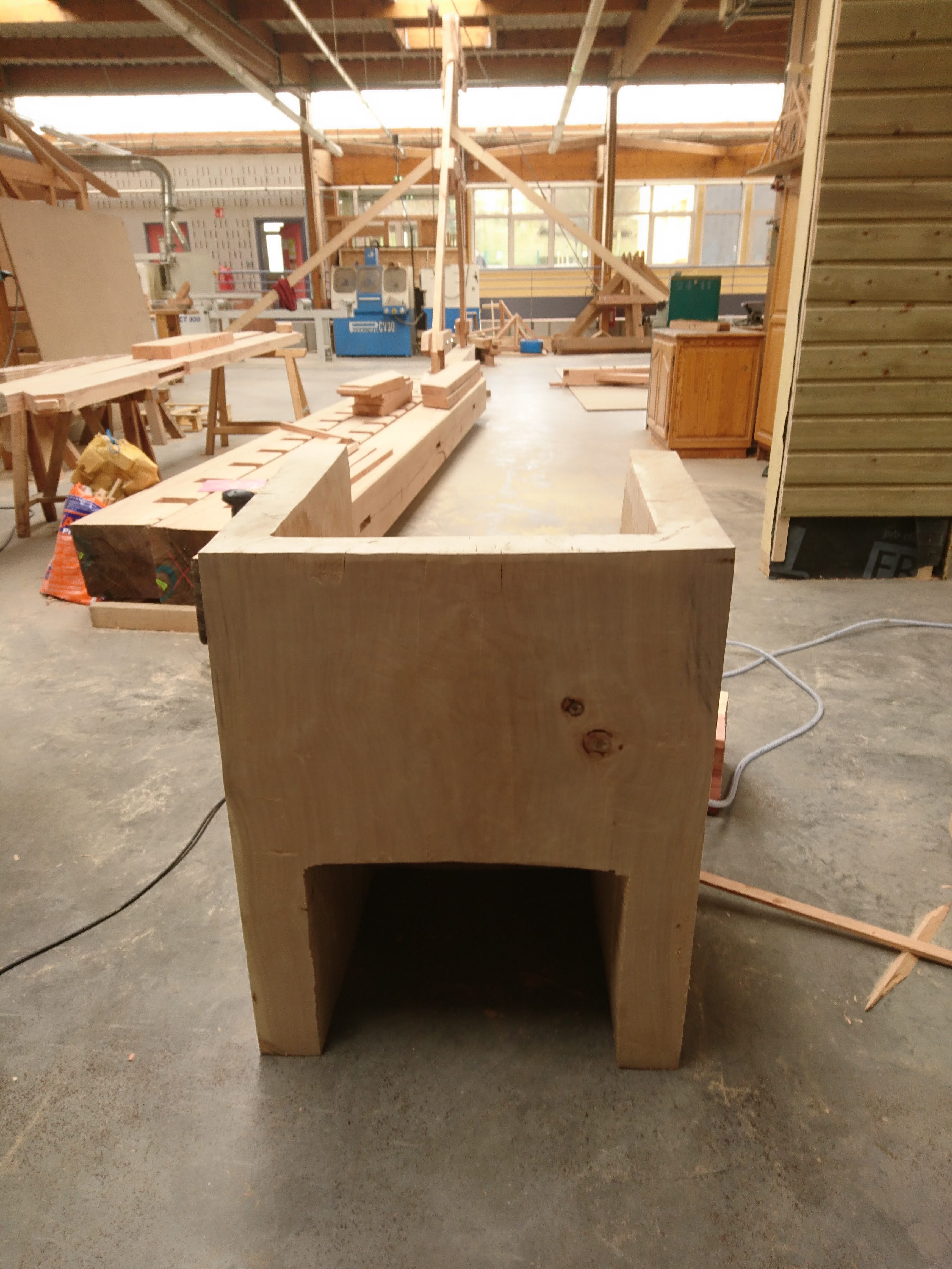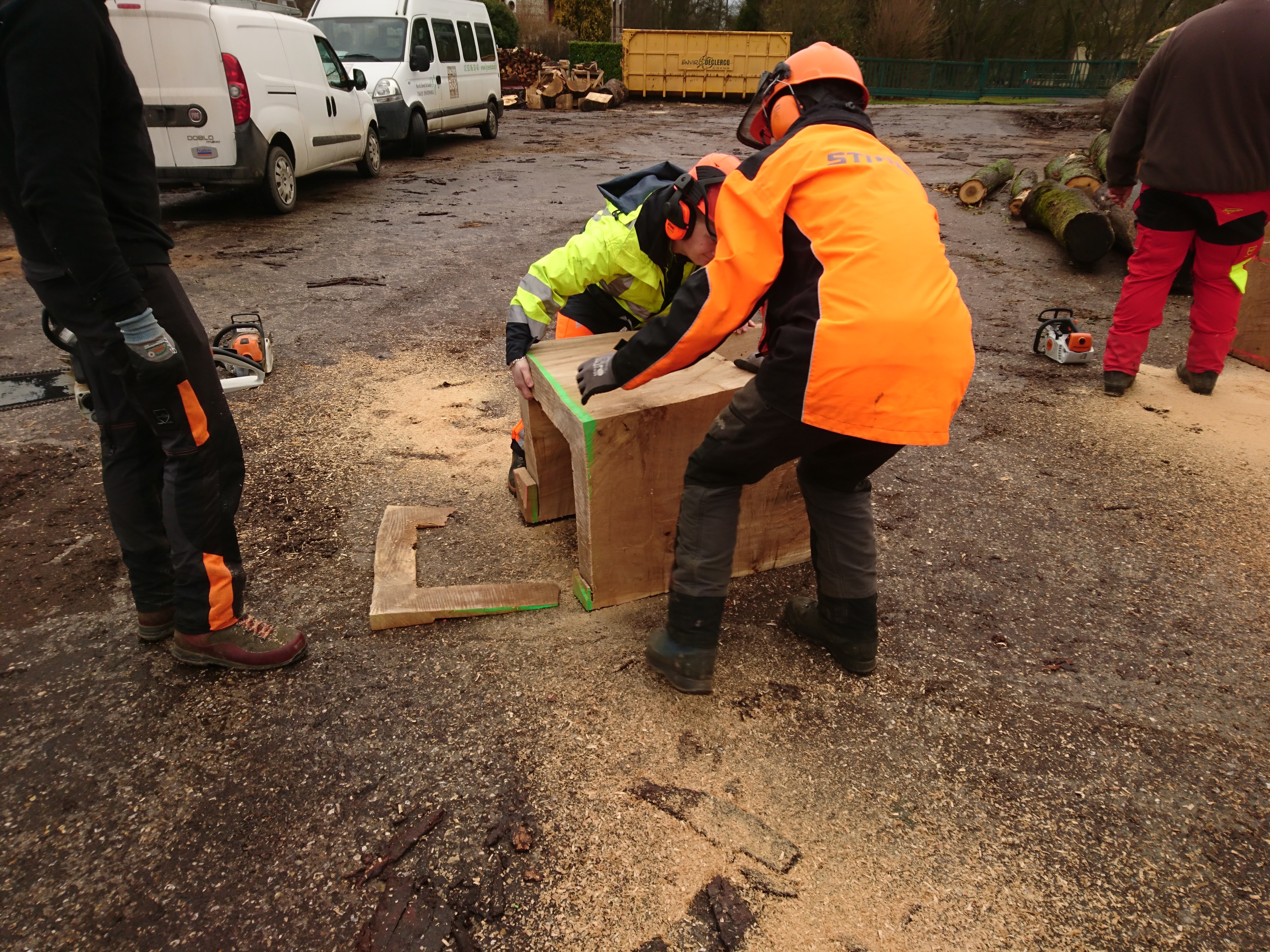 Les terminales ont appréhendé une autre manière de concevoir et considérer l’arbre et l’outil (tronçonneuse) au travers de la réalisation de fauteuils et d’une table en Monoxyle en côtoyant le savoir-faire spécifique du traitement du bois avec un ébéniste/bûcheron (Bertrand Lacourt). La Classe de terminale « Forêt » lui a été confié afin qu’au travers de réalisation de mobilier réalisé à partir de grumes de peuplier présentes à la scierie, il y partage son savoir-faire en tant qu’artisan ; ceci par l’appréhension de nouveaux gestes, une façon différente de considérer l’arbre, le bois, sa provenance, la machine, la technique et la posture du corps, l’utilisation de certains types de bois dans le domaine du luxe.