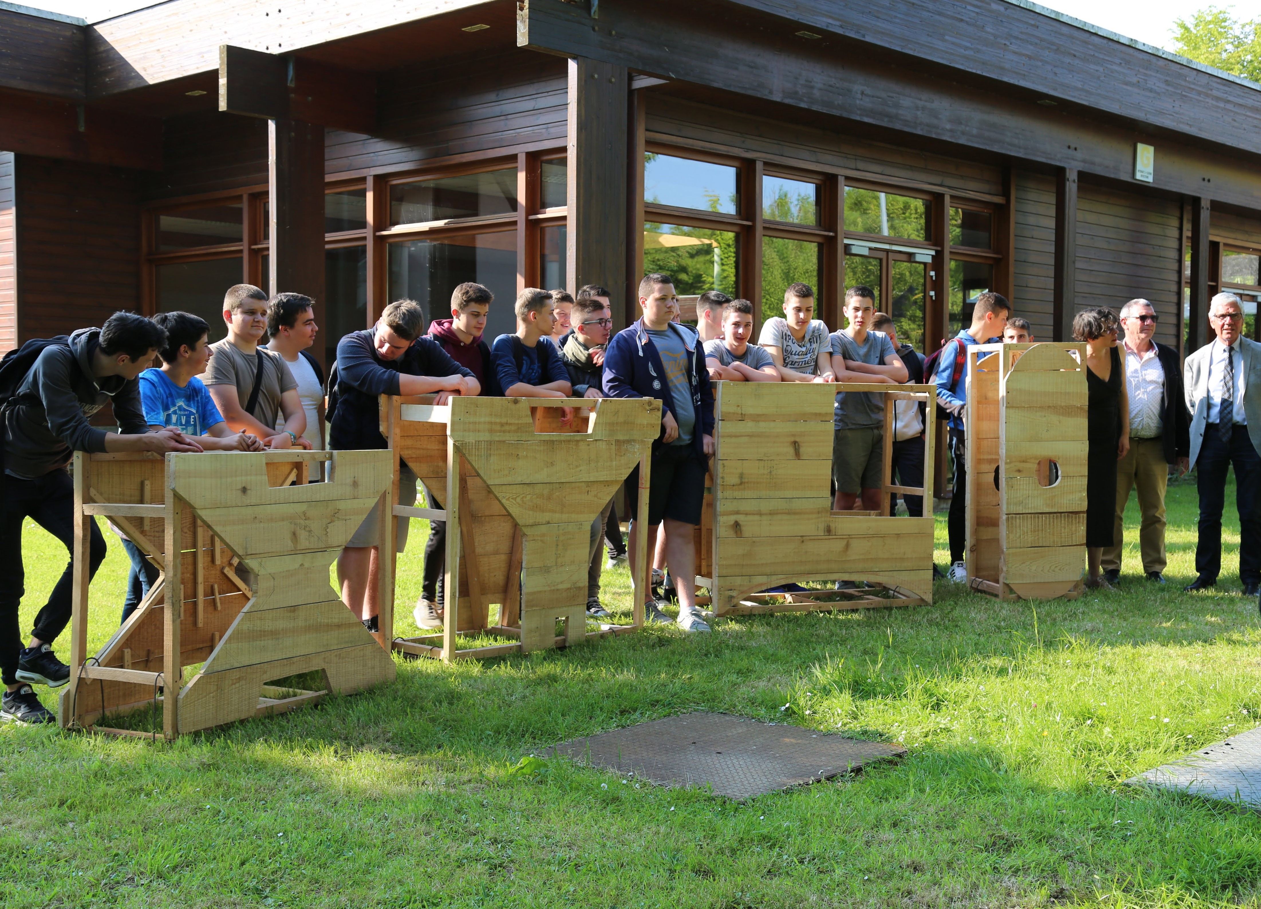 Depuis septembre 2017, l’artiste plasticienne est intervenue auprès de sept classes qui tour à tour ont participé à différentes phases de recherches et d’élaboration du projet (maquettes, vues 3D, calcul, réalisation finale…).
