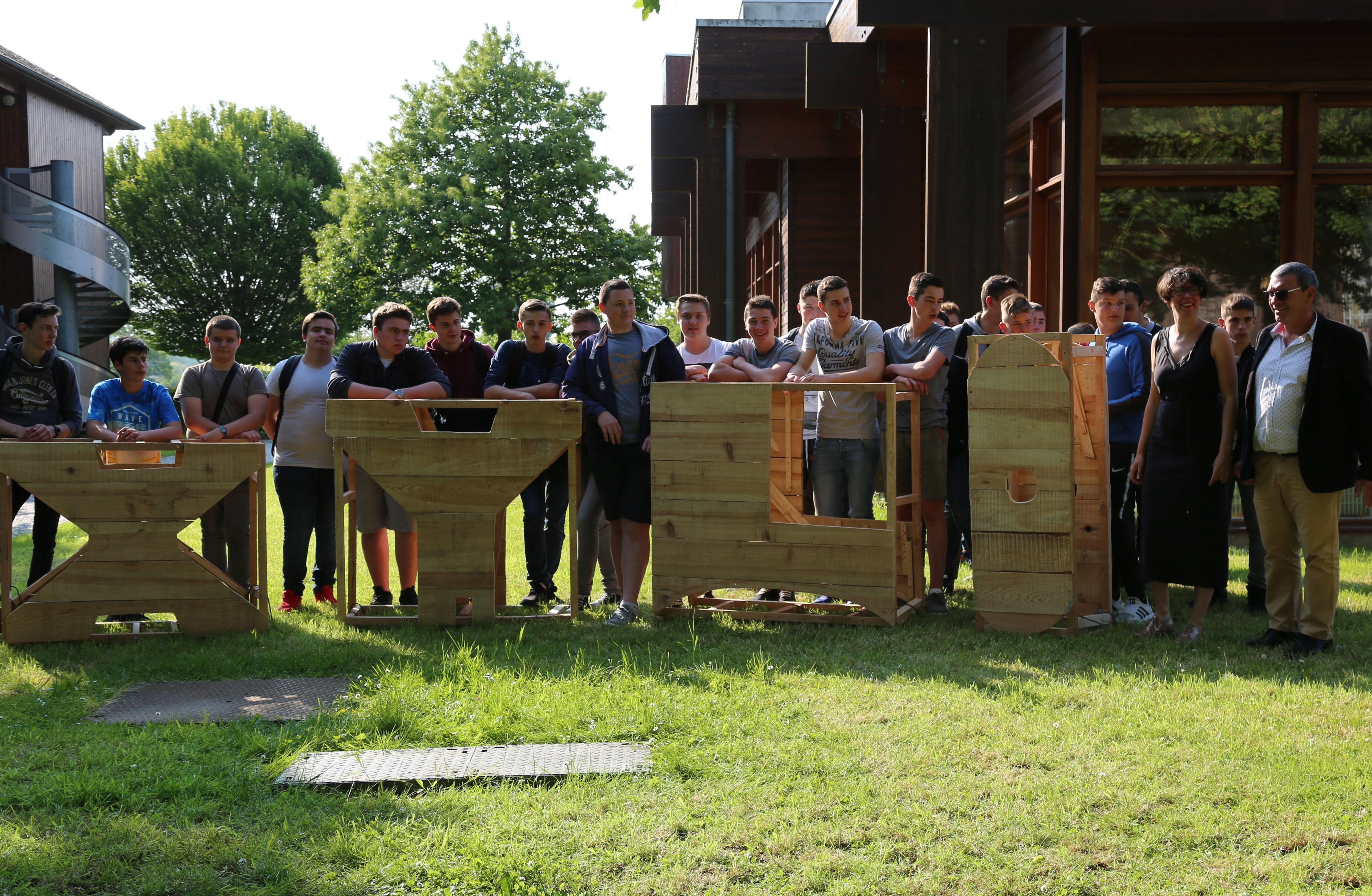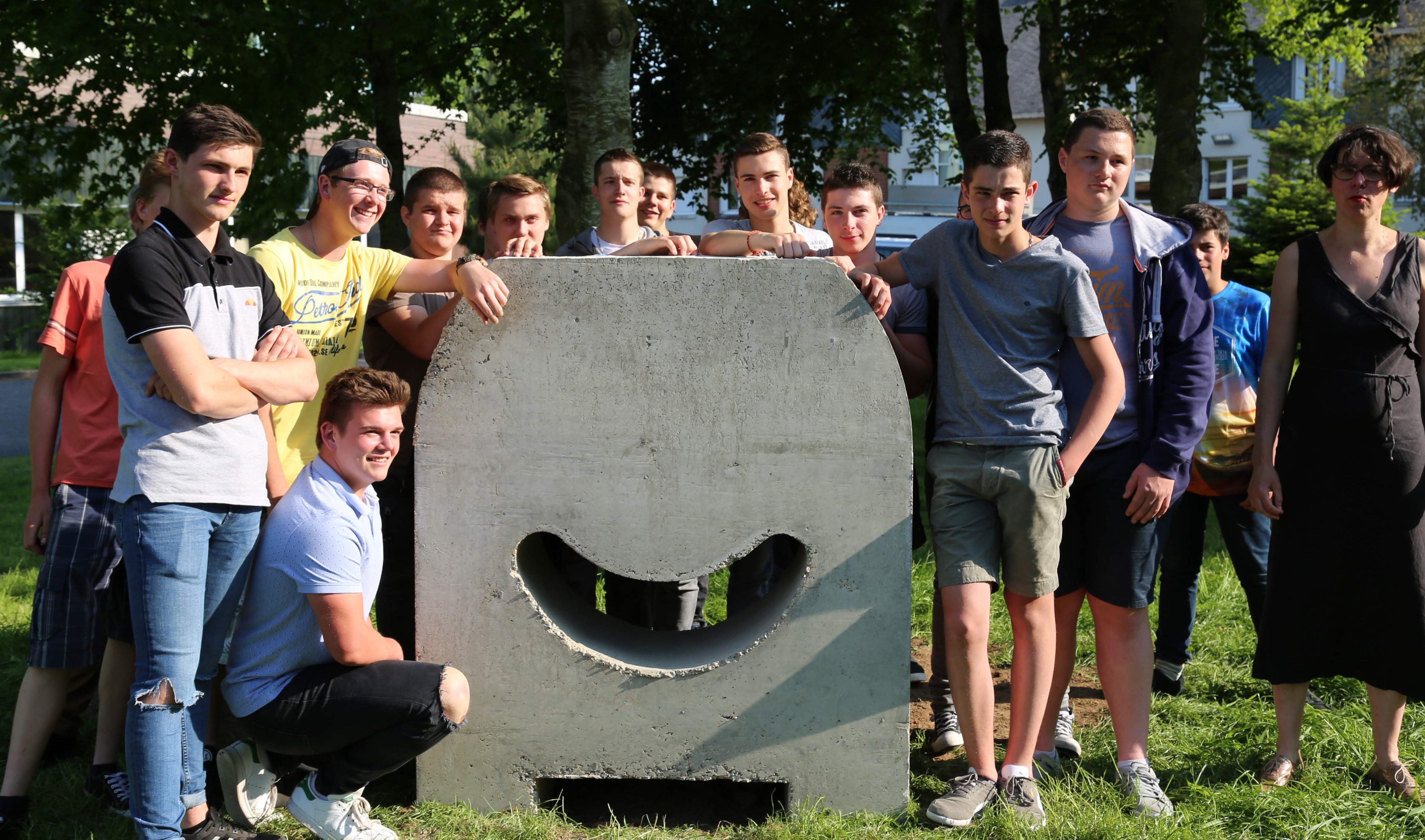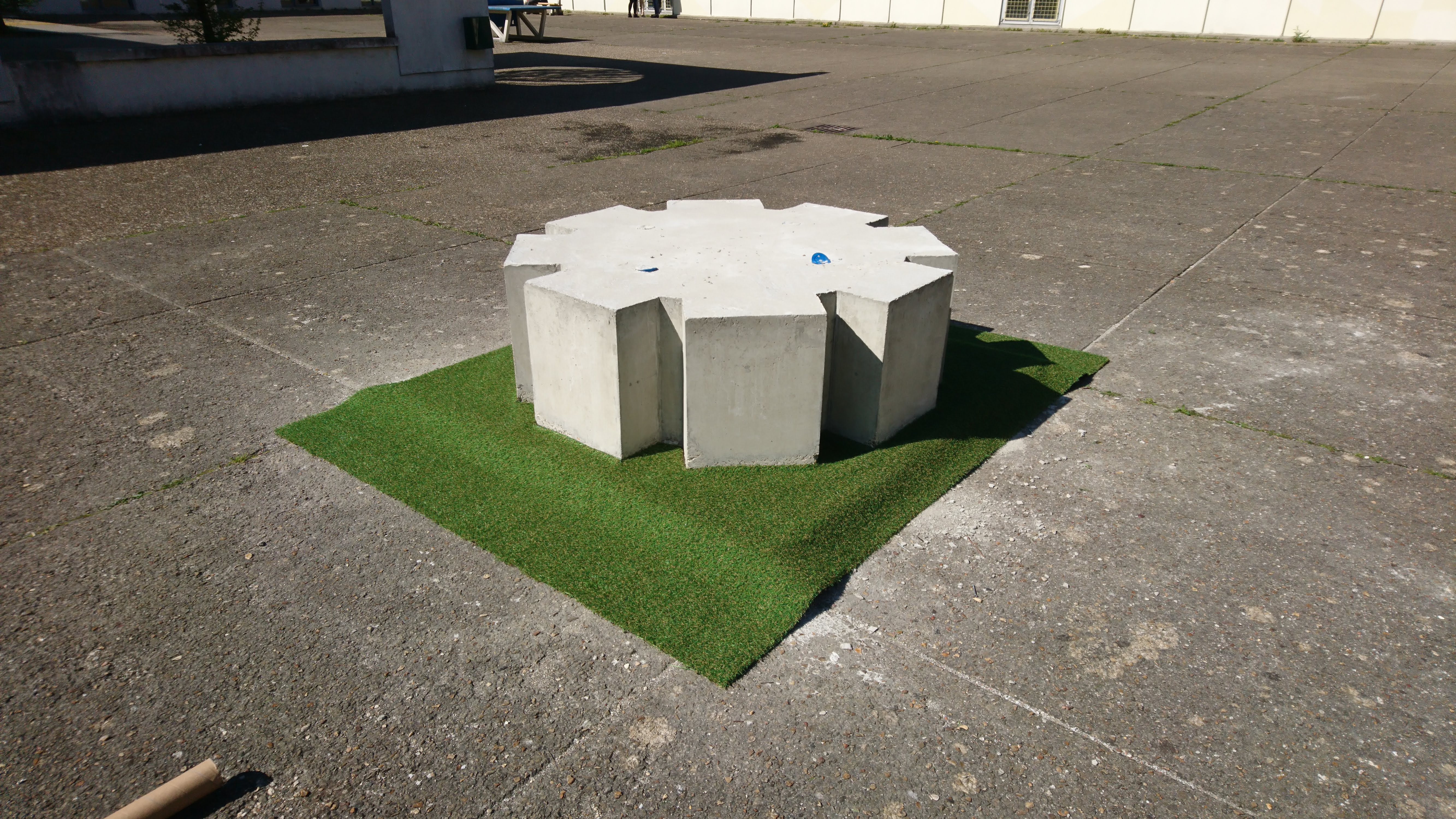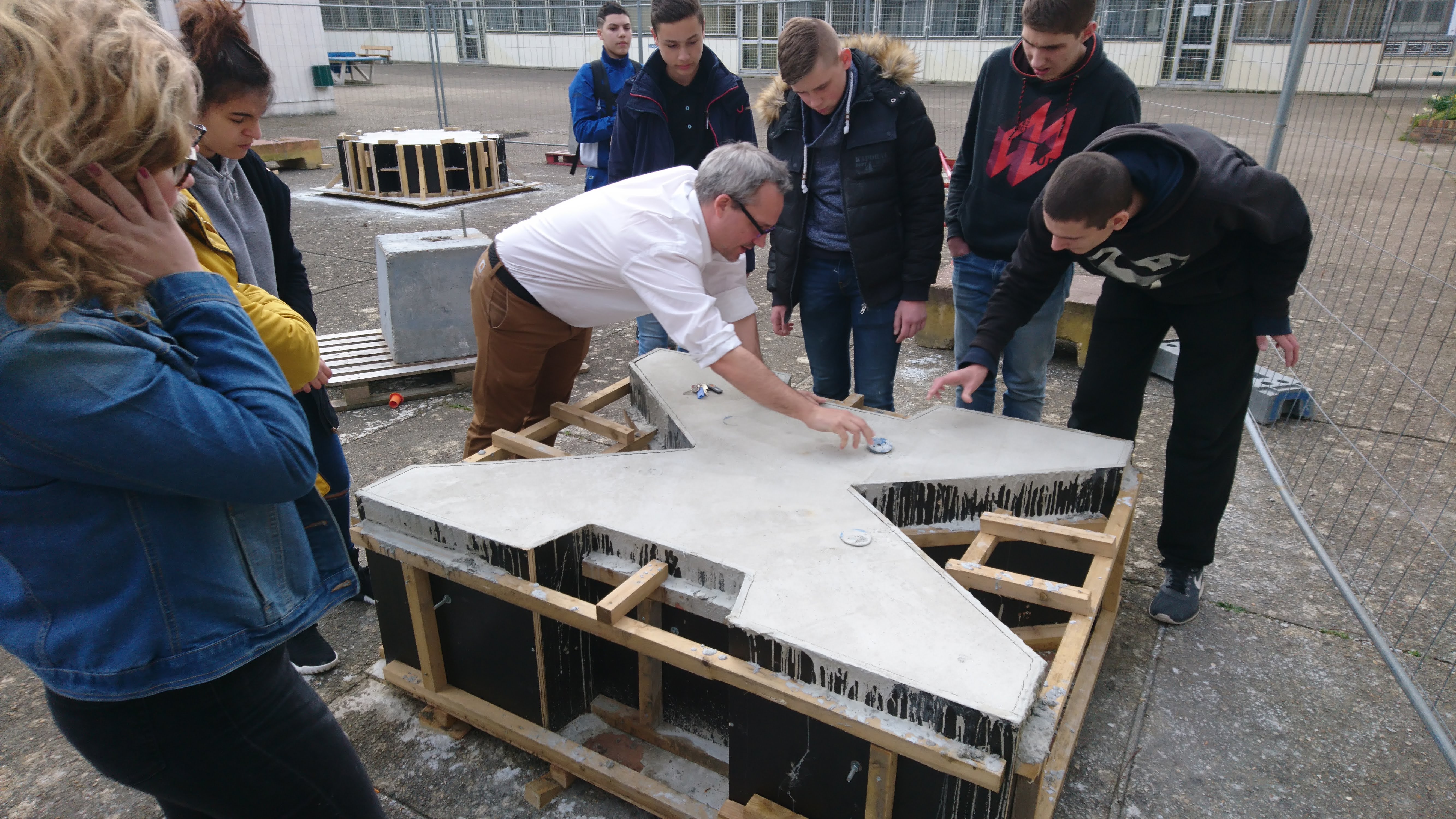 Depuis septembre 2017, l’artiste plasticienne Claire le Breton, est intervenue auprès de sept classes qui tour à tour ont participé à différentes phases de recherches et d’élaboration du projet (maquettes, vues 3D, calcul, réalisation finale…). Le résultat final se compose de plusieurs sculptures en béton et en bois (Monoxyle et Xylo).
