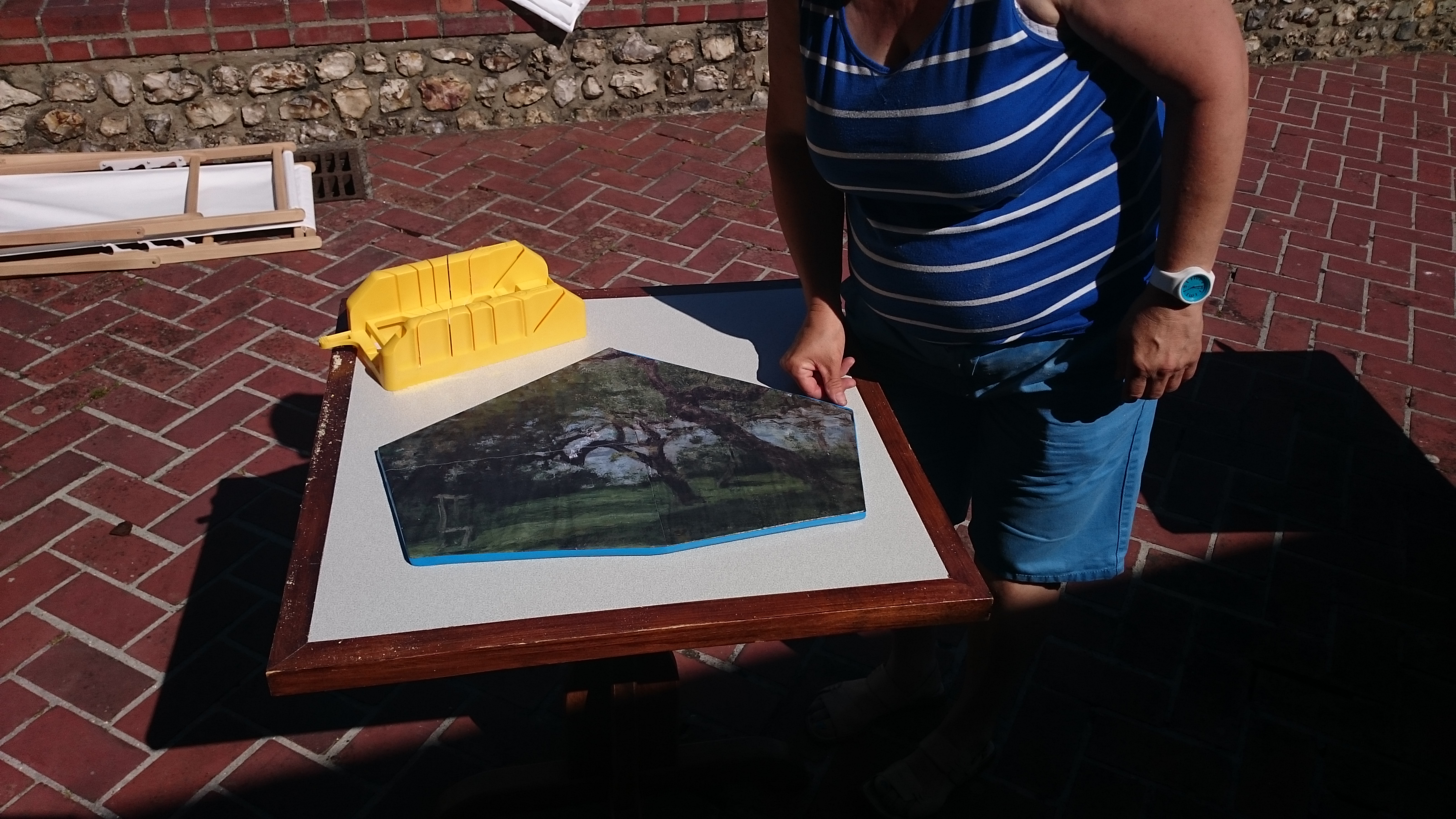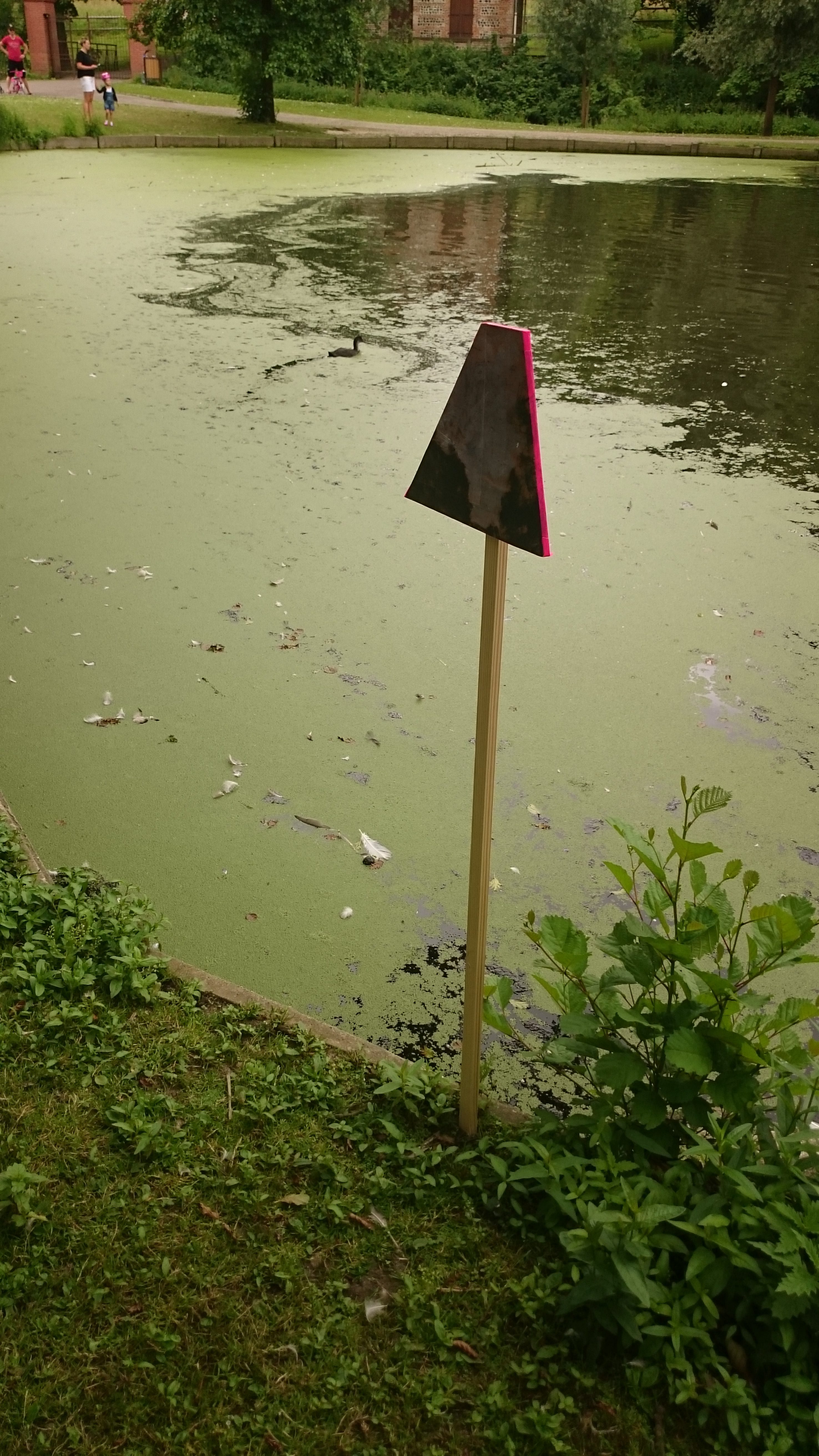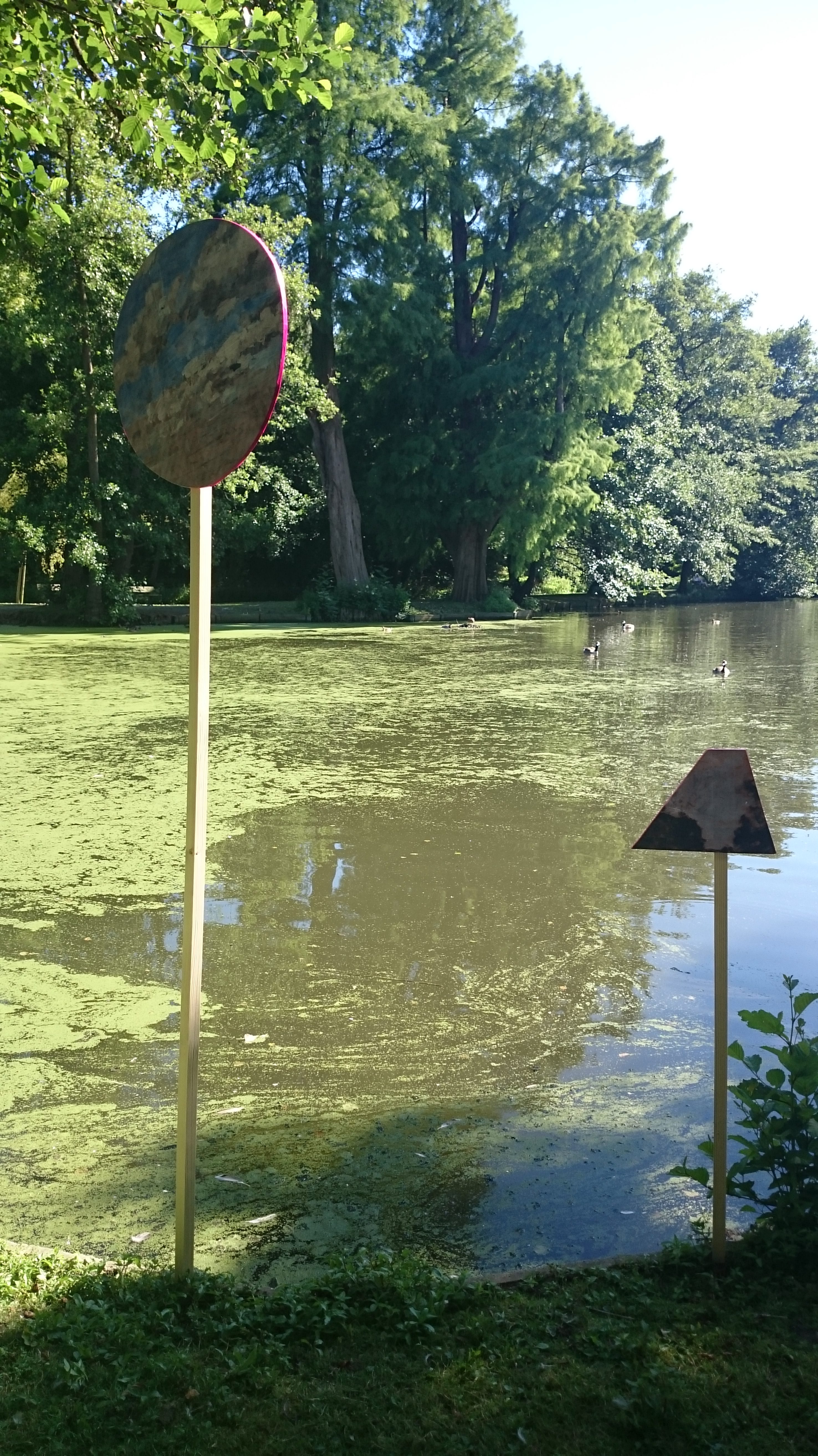 Réalisées sous forme de panneaux en bois, ces pastilles visuelles devaient être de toutes formes, sauf carré. Sur ces panneaux, les participants sont venus assembler des fragments de reproductions d’œuvres d’Eugène Boudin (collages), et en fonction de leur perception du parc.