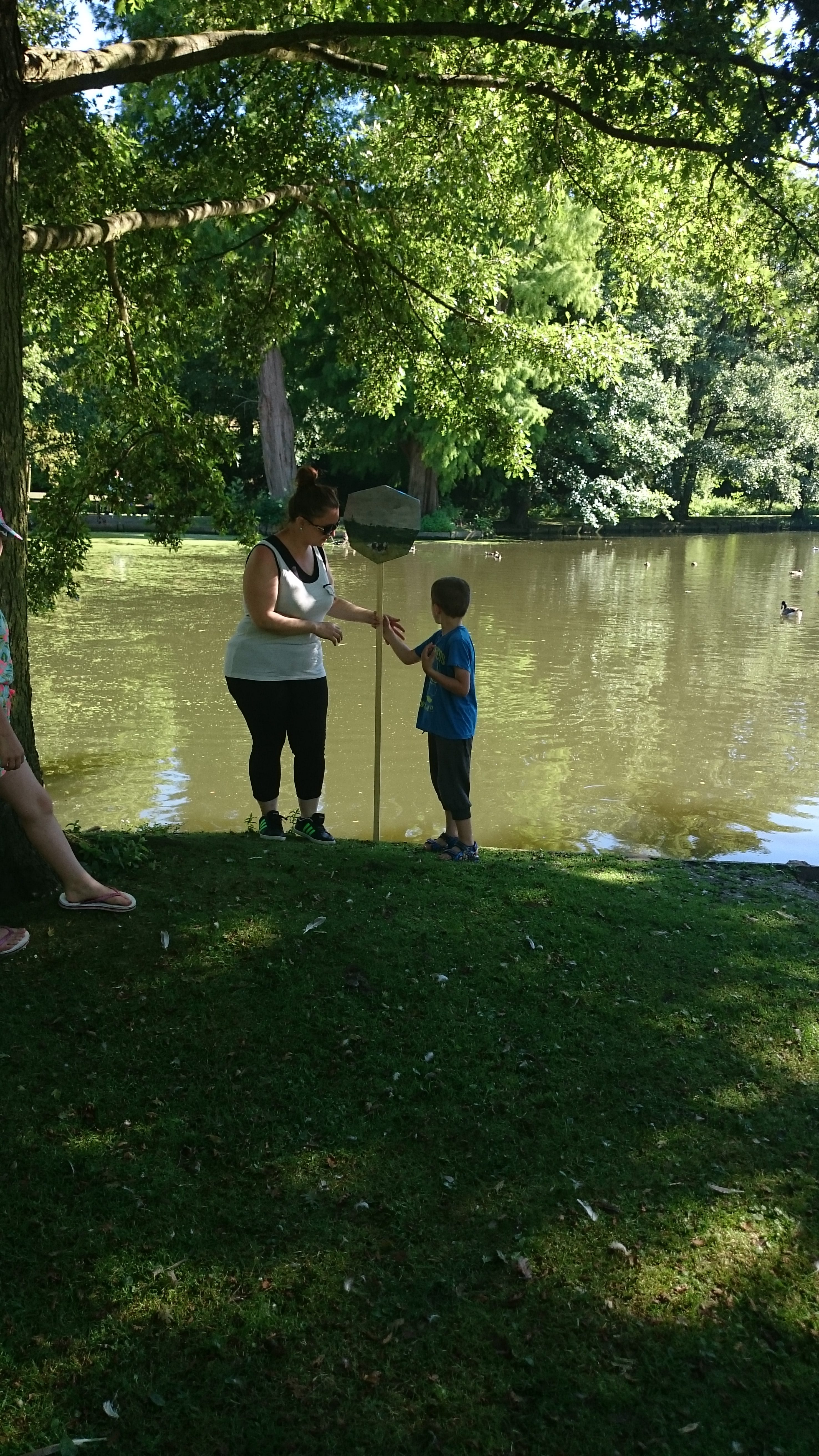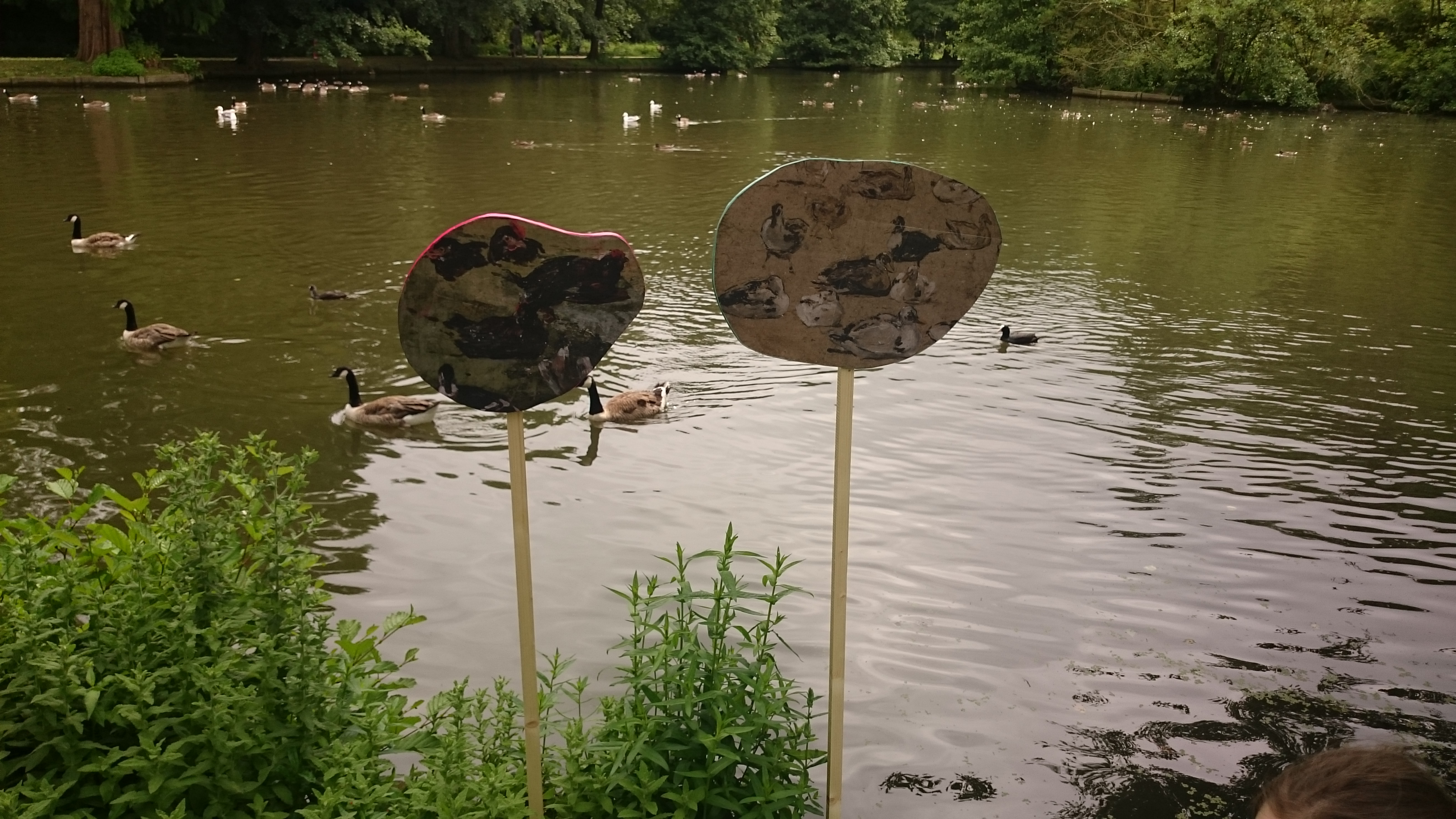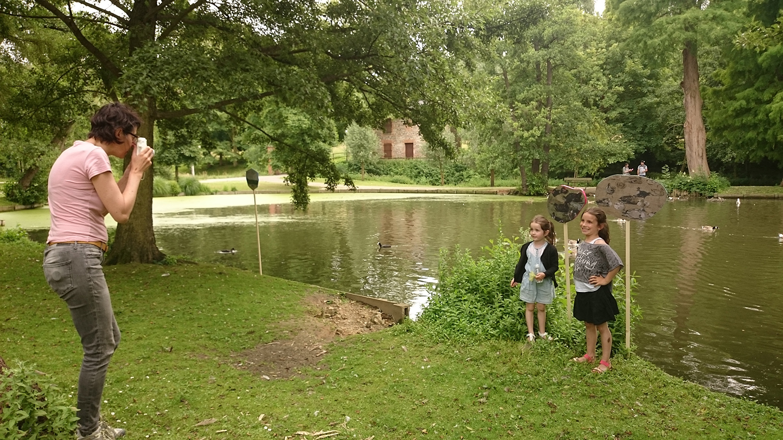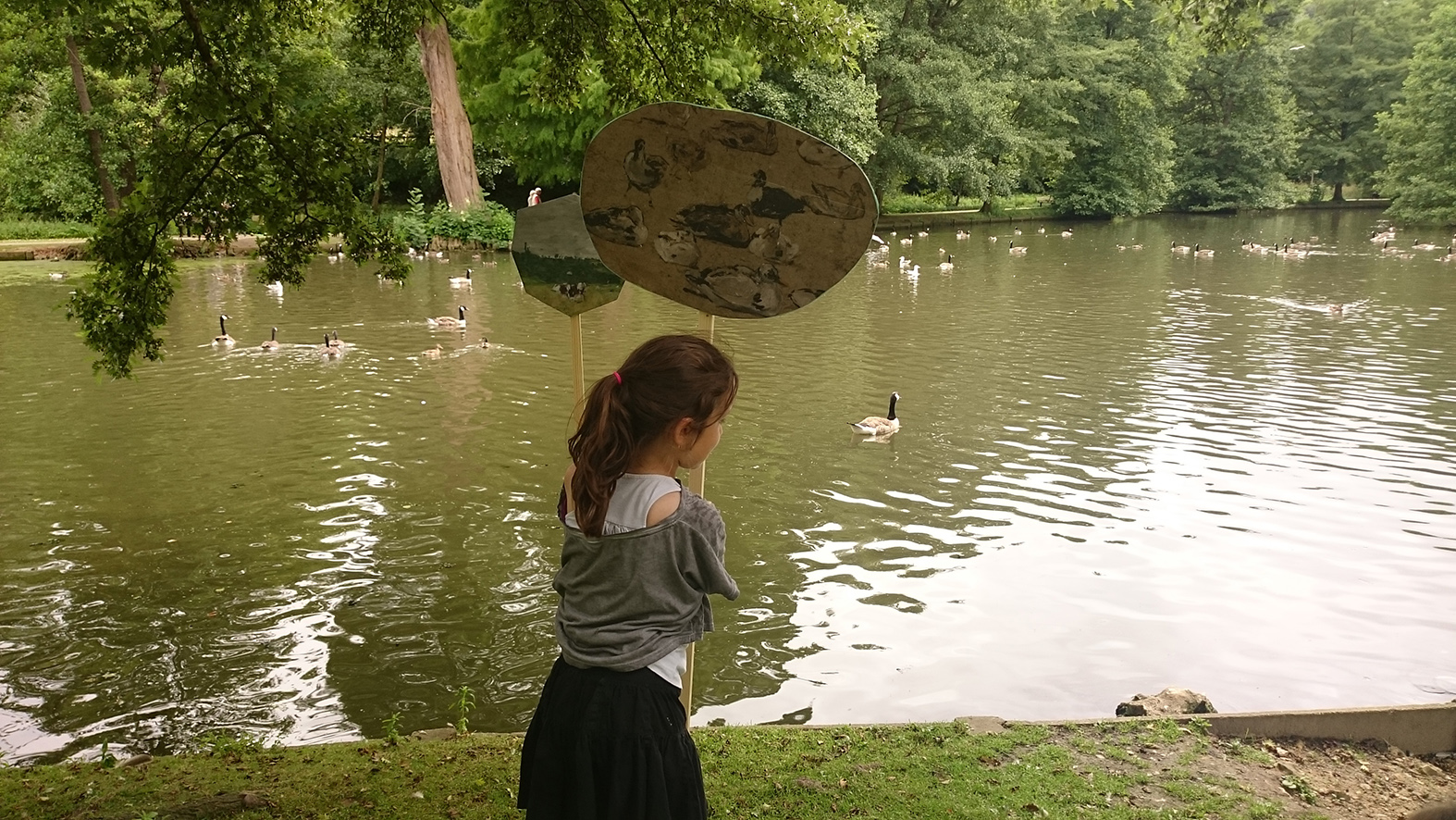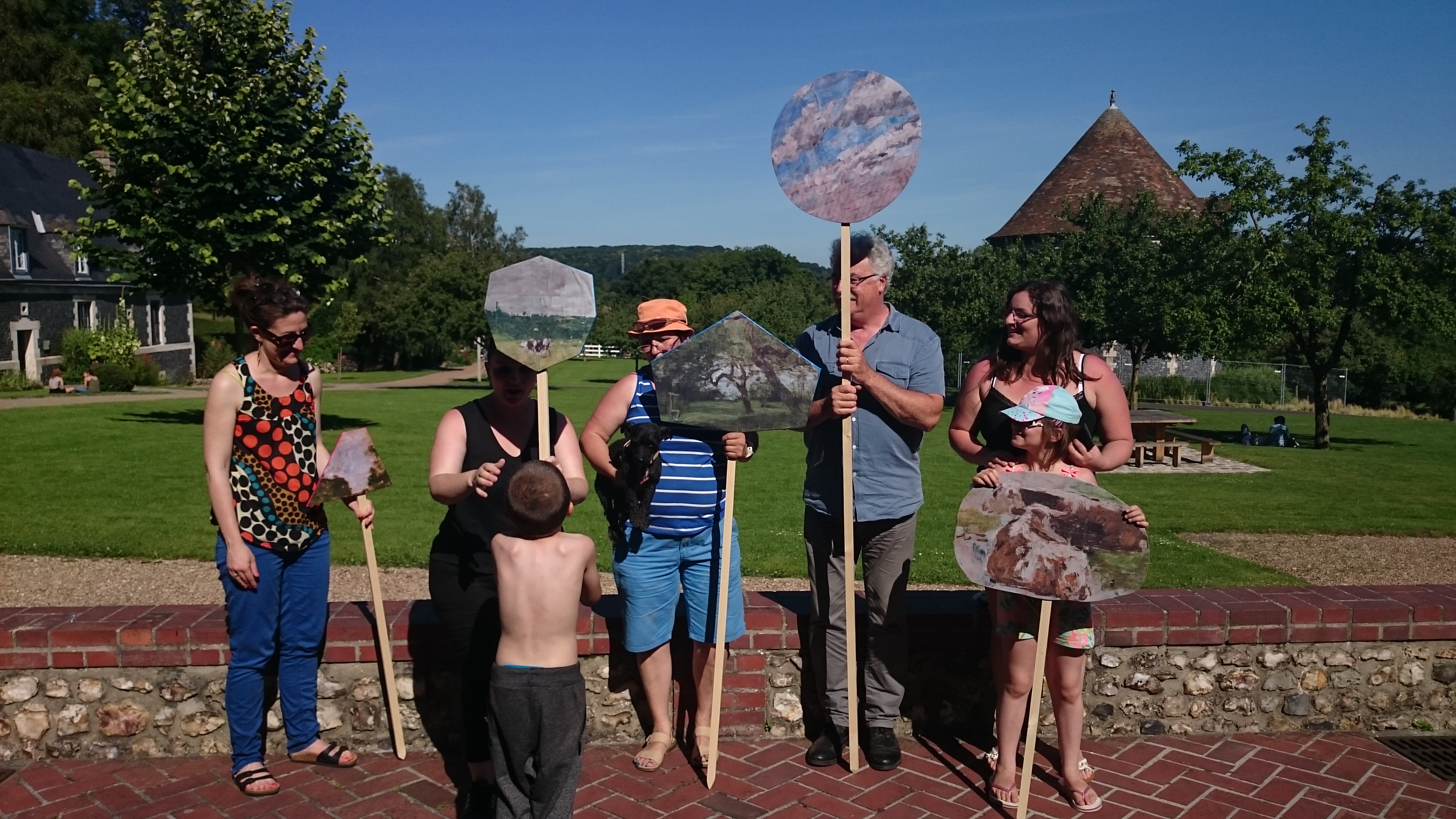 L’atelier « s’emparer du paysage » consistait à se poser la question du point de vue, celui du peintre, de l’artiste, le choix du cadre, du motif, du sujet et du parc, comme inscription du geste humain dans le paysage naturel et de son rôle dans l’inspiration. Il consistait aussi à fabriquer un objet incongru inspiré de l’œuvre d’Eugène Boudin pour ensuite déambuler dans le parc et se poser la question du lieu et de faire un choix dans le lieu.
