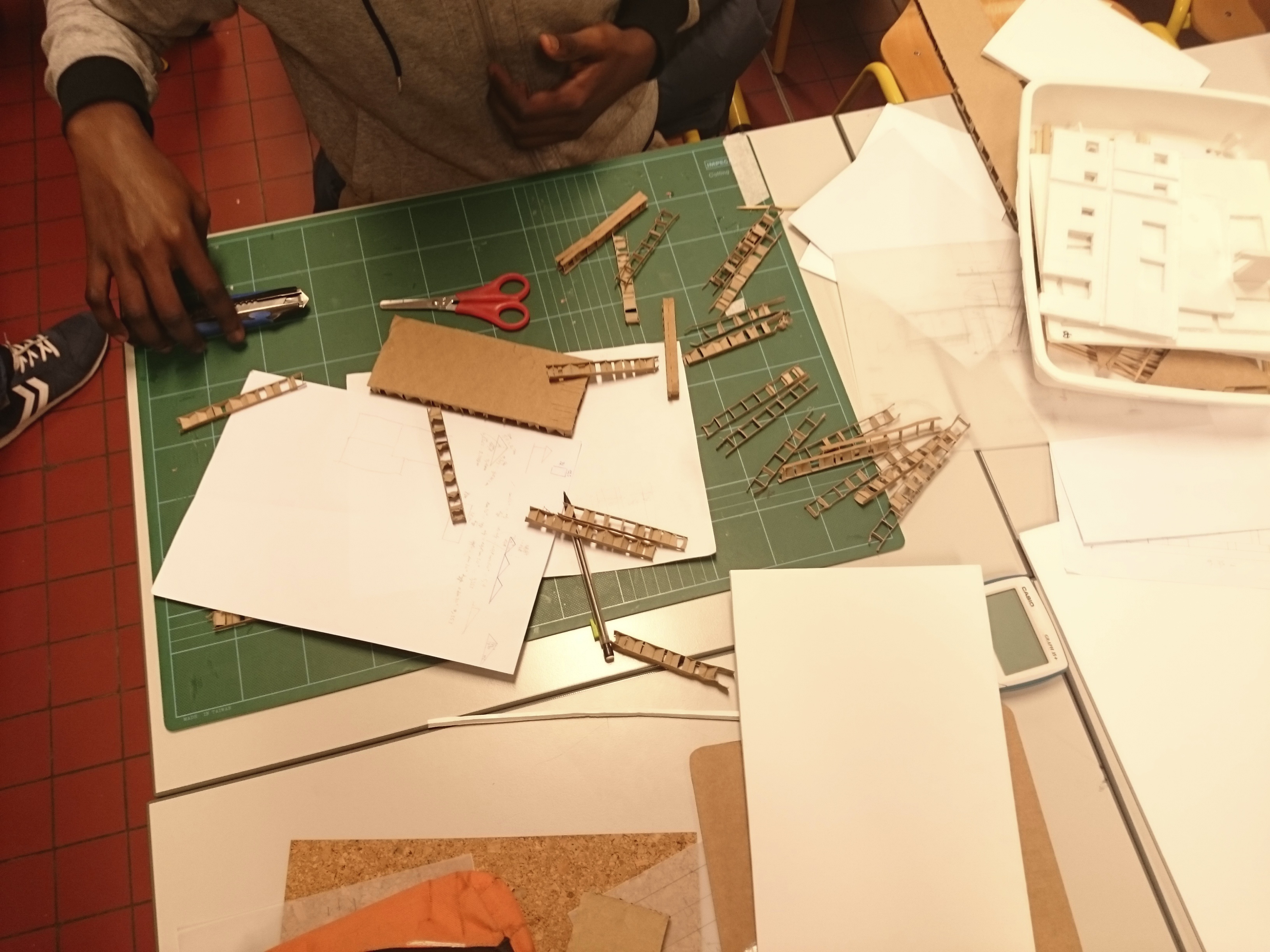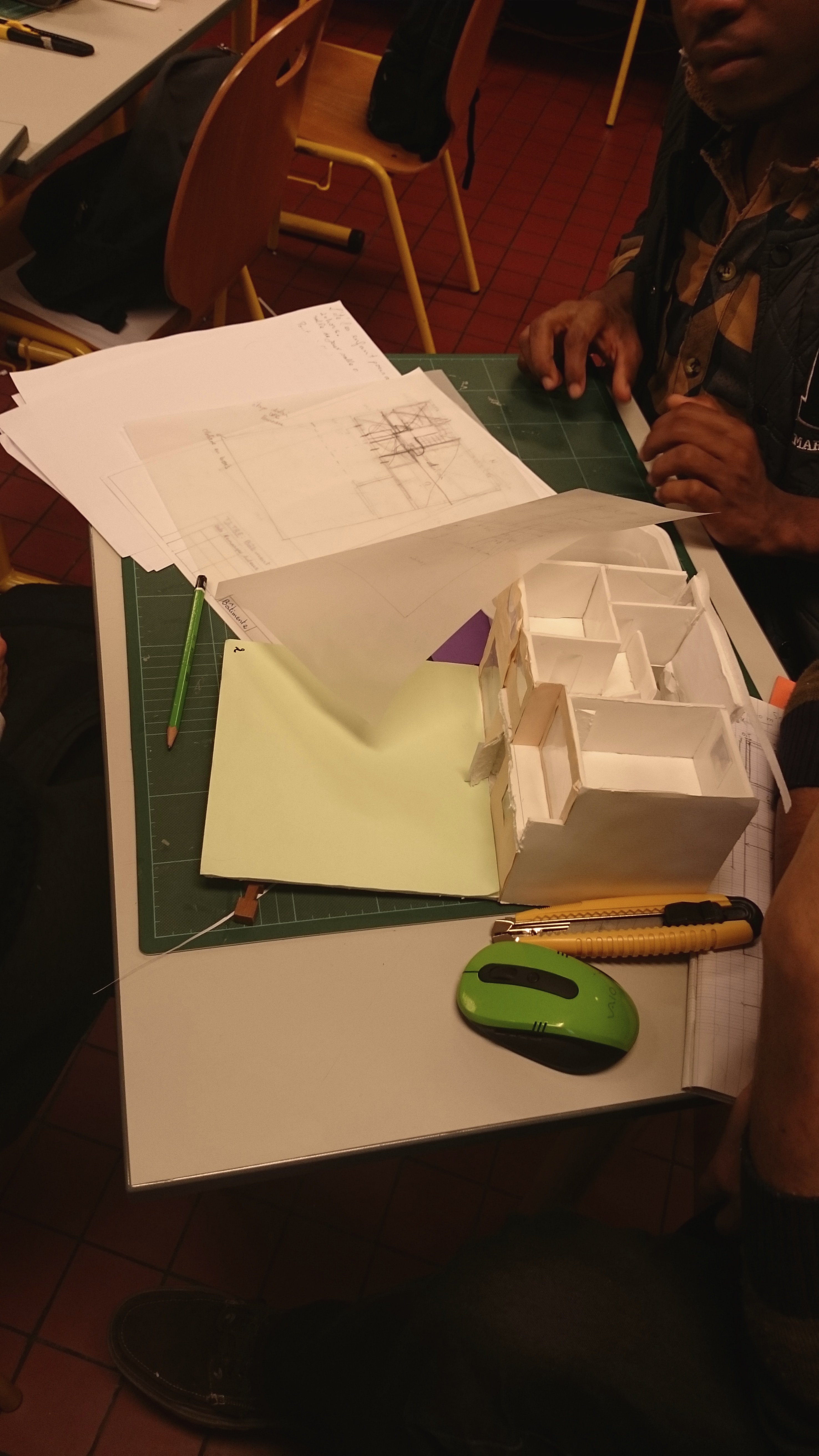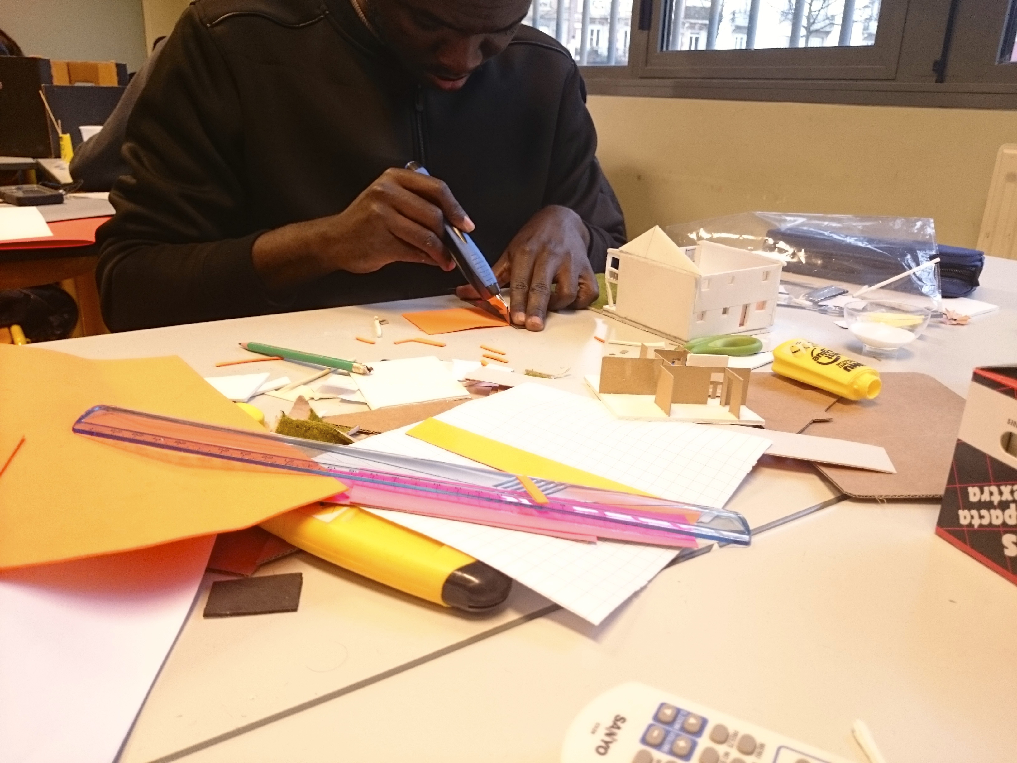À partir de maquettes en carton plume réalisées par des étudiants des années précédentes, les élèves étaient invité à réfléchir à la réhabilitation d’un habitat en lui affectant une nouvelle fonction, en questionnant leur voisinage, les matériaux. De même ils devaient expérimenter la démarche de projet architecturale en prenant en compte des problématiques tel que le « réemploi », « l’énergie grise » et « l’économie circulaire ».