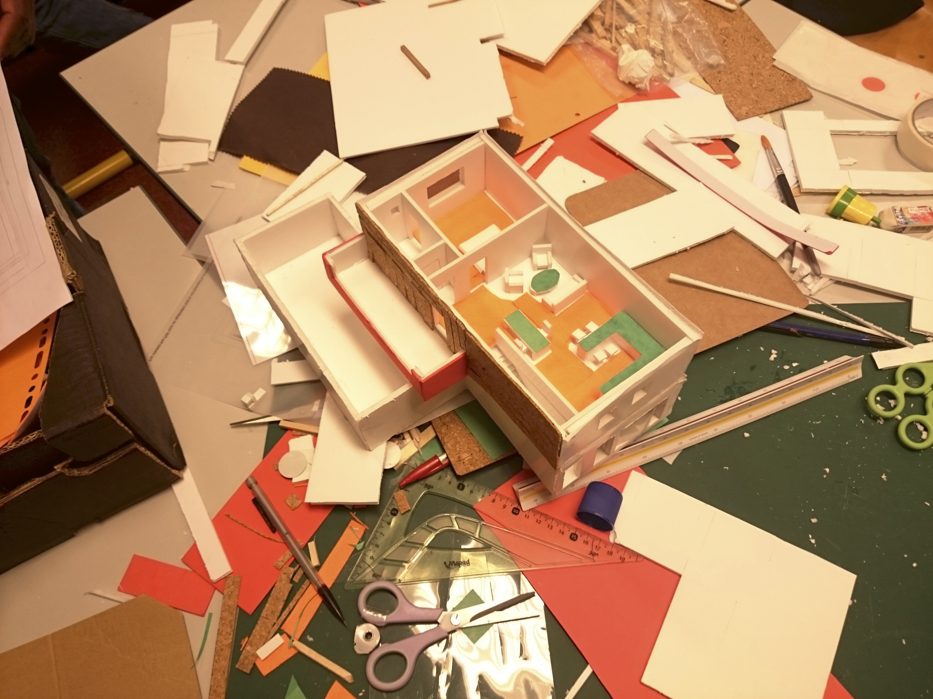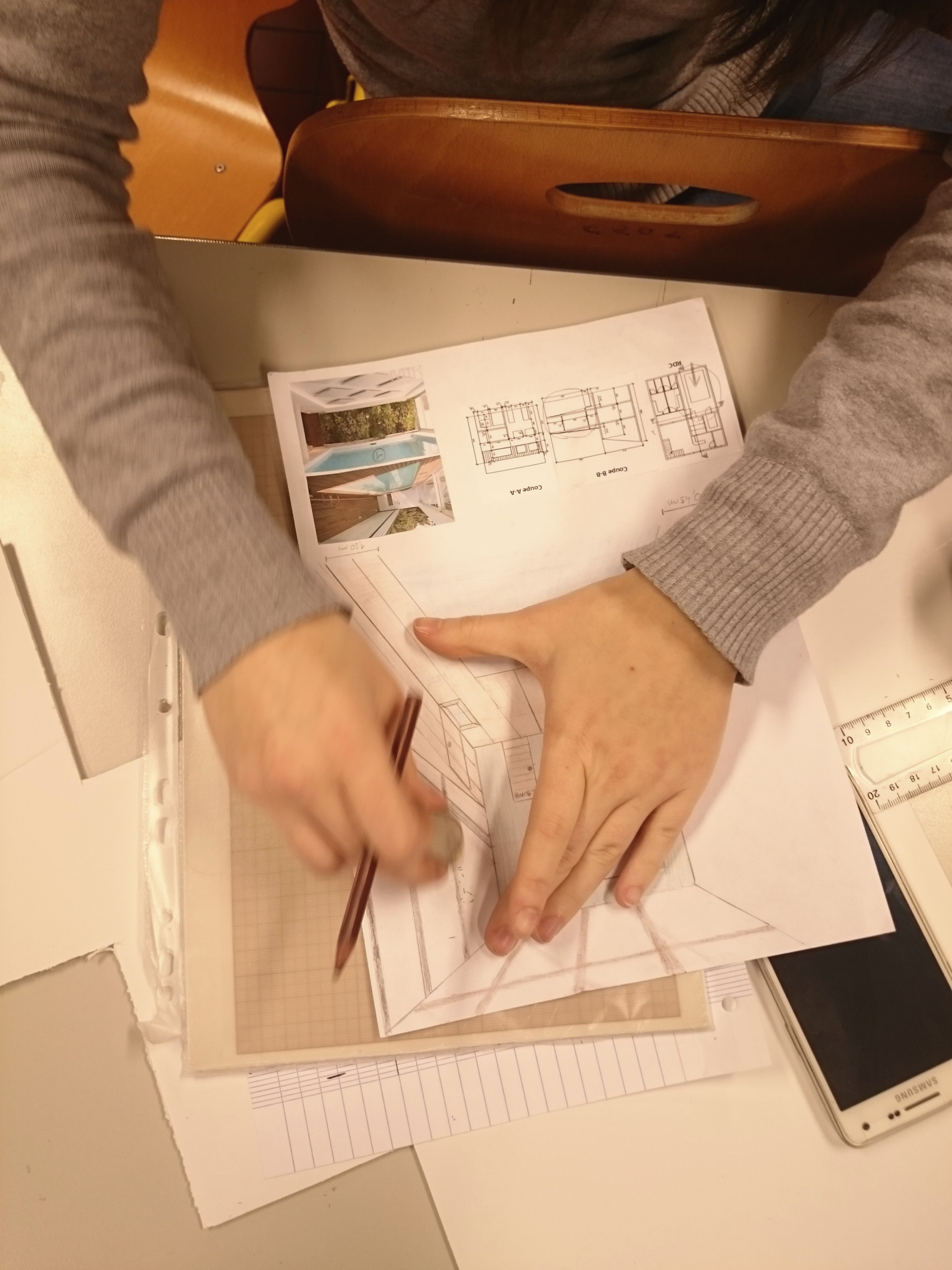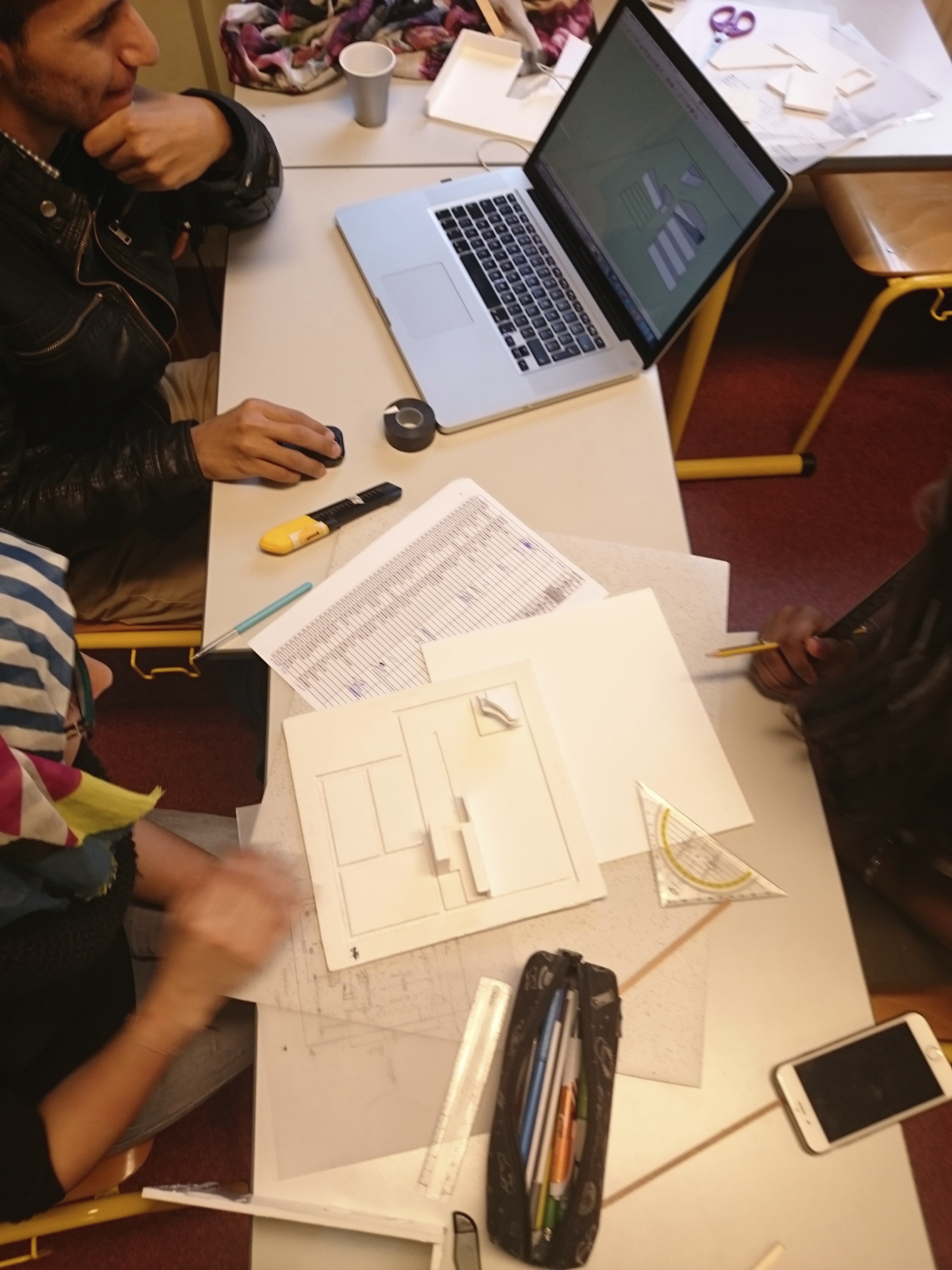 À partir de maquettes en carton plume réalisées par des étudiants des années précédentes, les élèves étaient invité à réfléchir à la réhabilitation d’un habitat en lui affectant une nouvelle fonction, en questionnant leur voisinage, les matériaux. De même ils devaient expérimenter la démarche de projet architecturale en prenant en compte des problématiques tel que le « réemploi », « l’énergie grise » et « l’économie circulaire ».