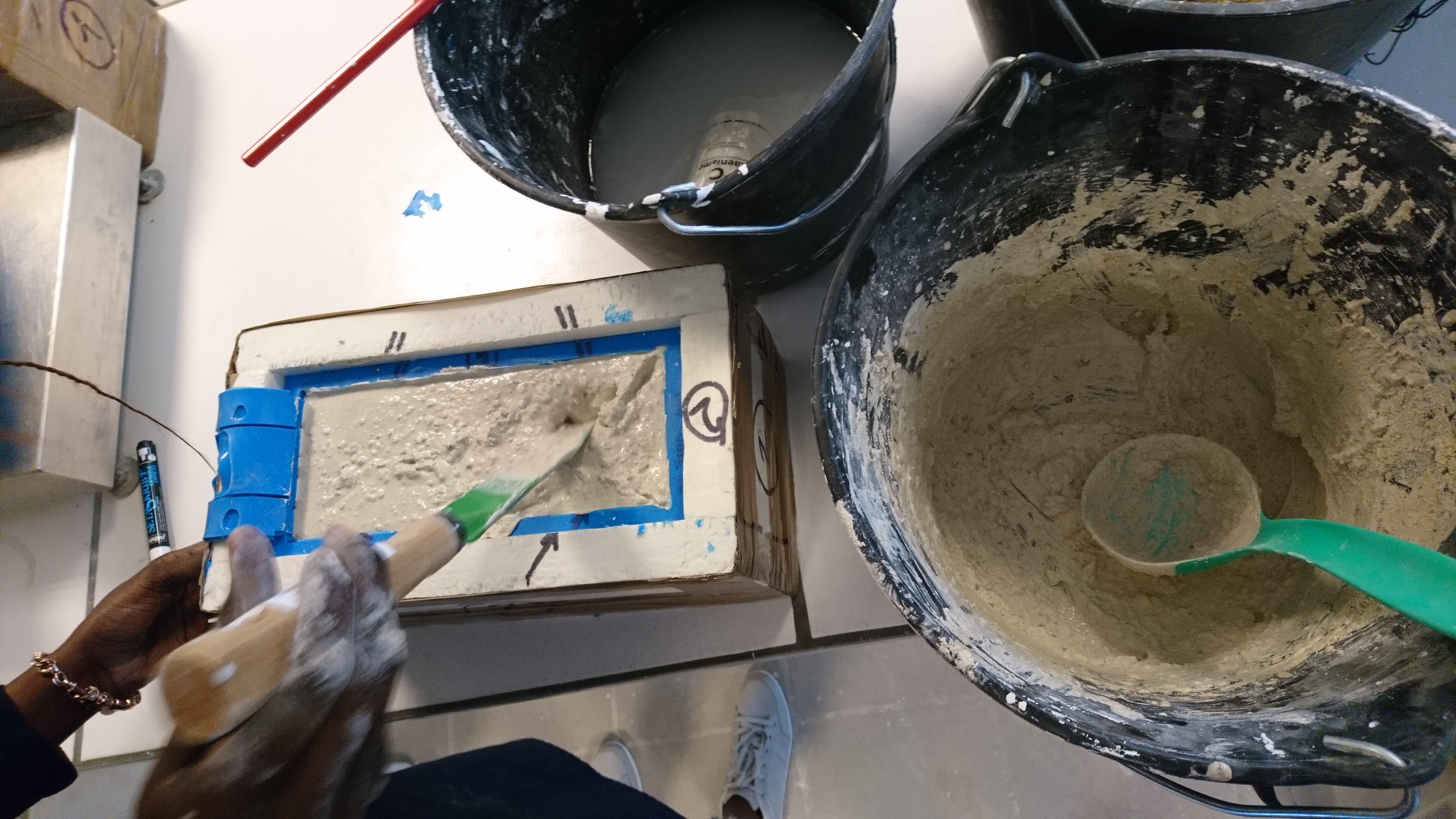 Autour du thème du conteneur, les élèves et Claire Le Breton ont travaillé diverses matières (papier, plâtre, béton, résine) lors d’ateliers d’expérimentation et de montage.