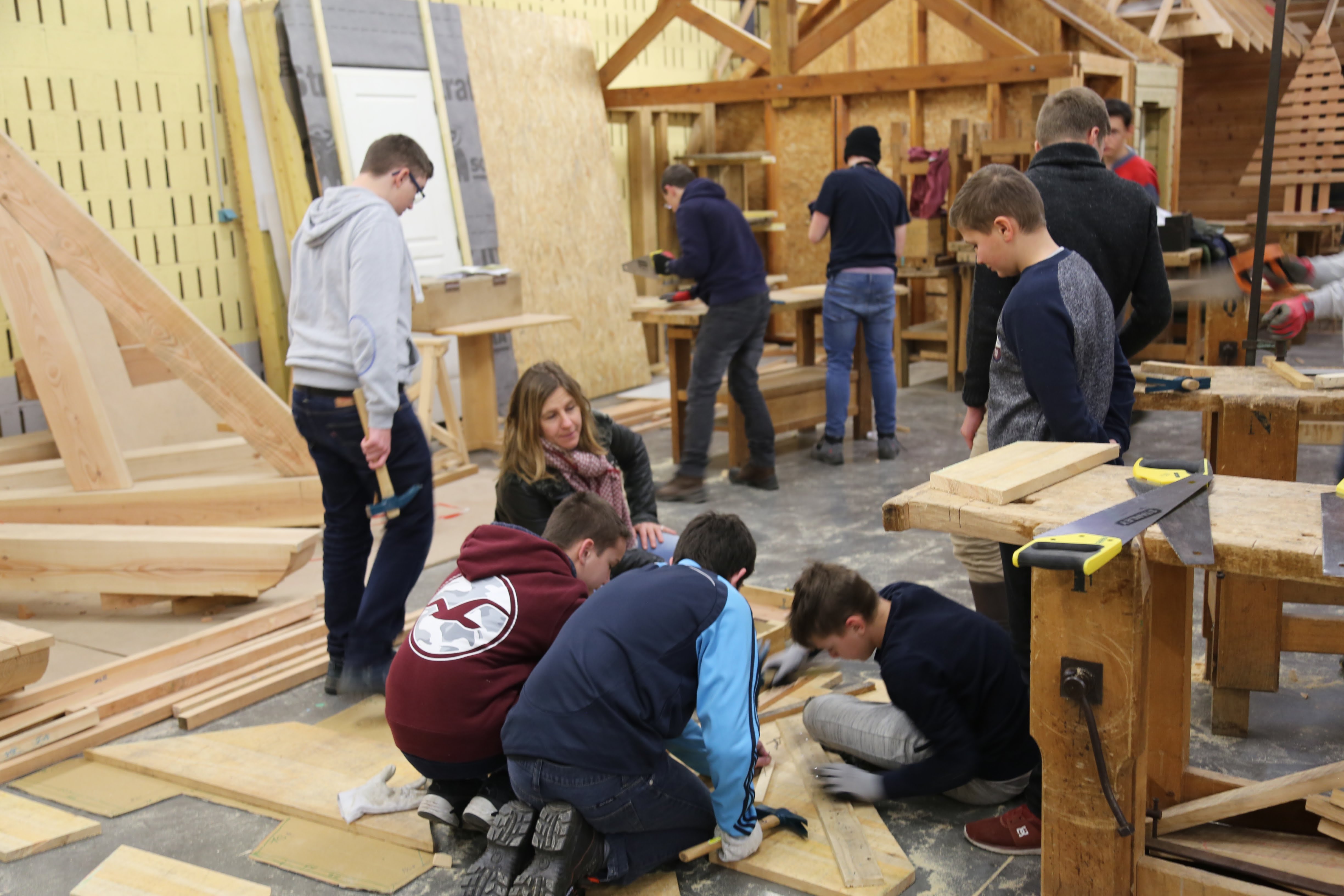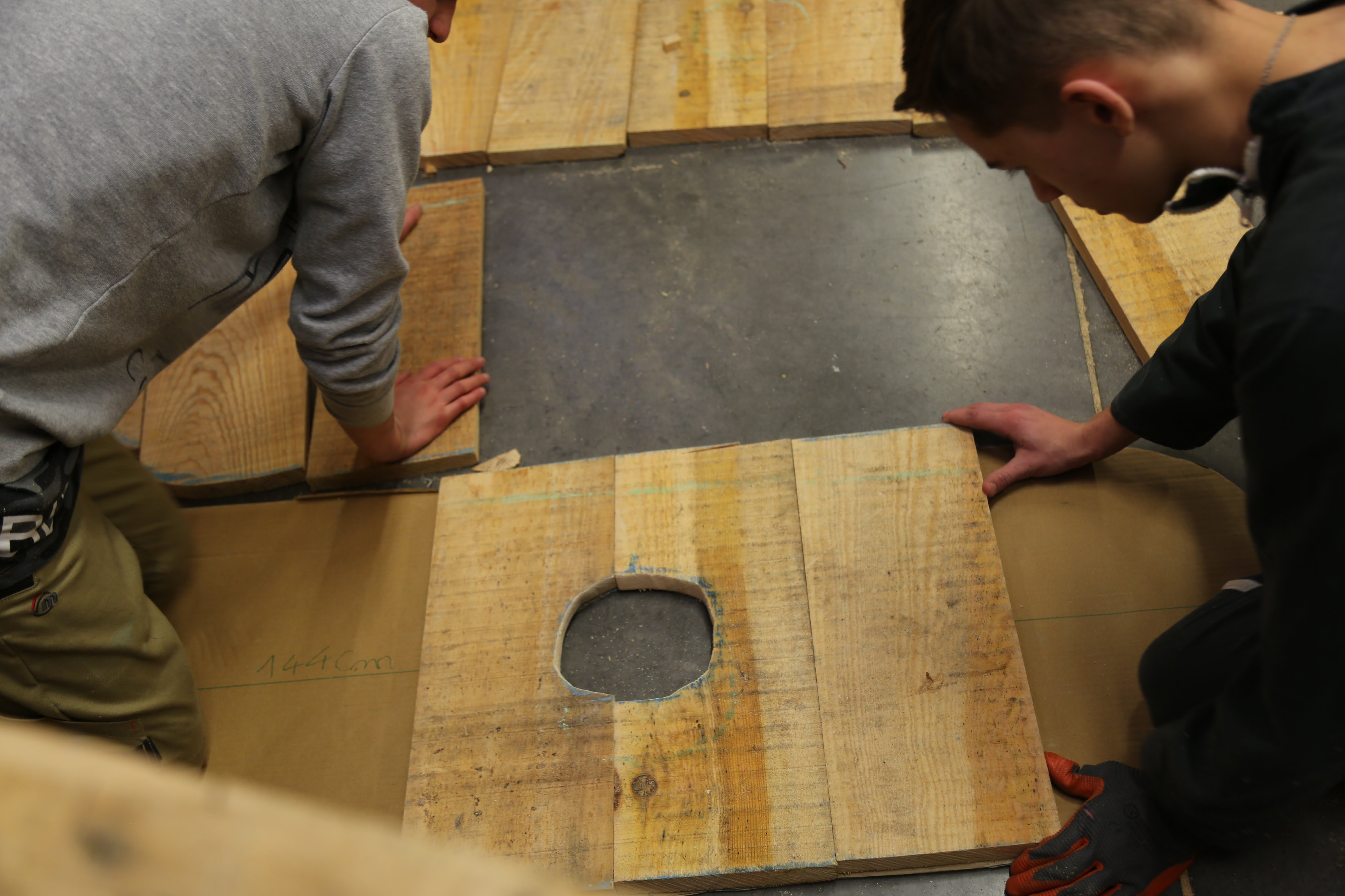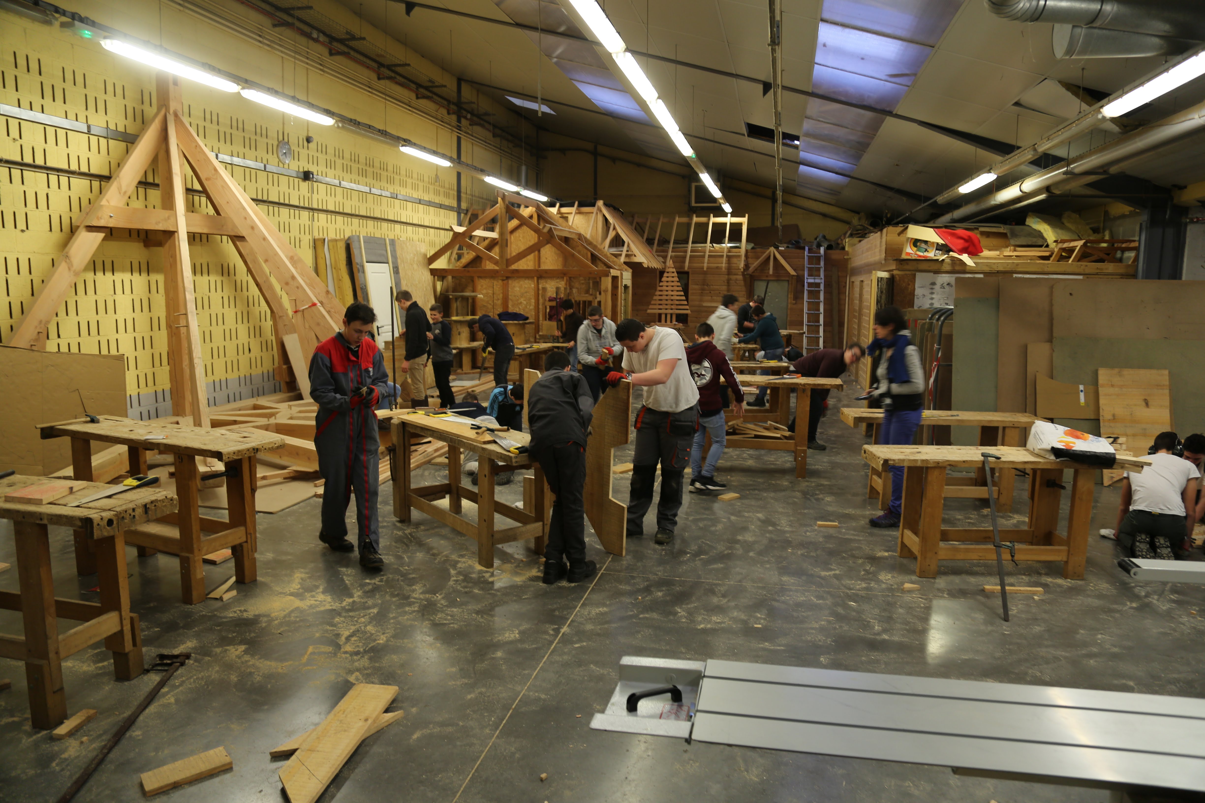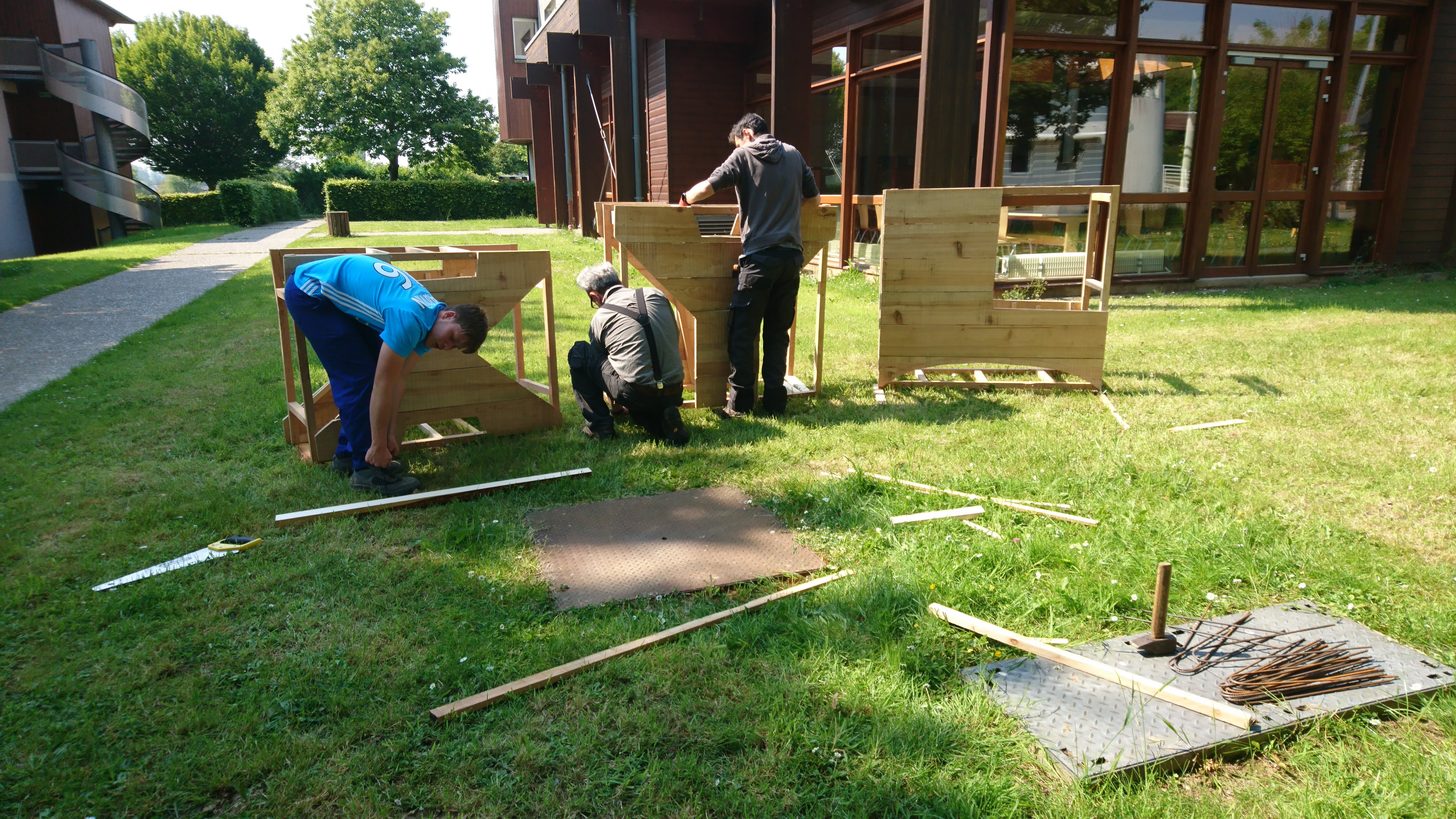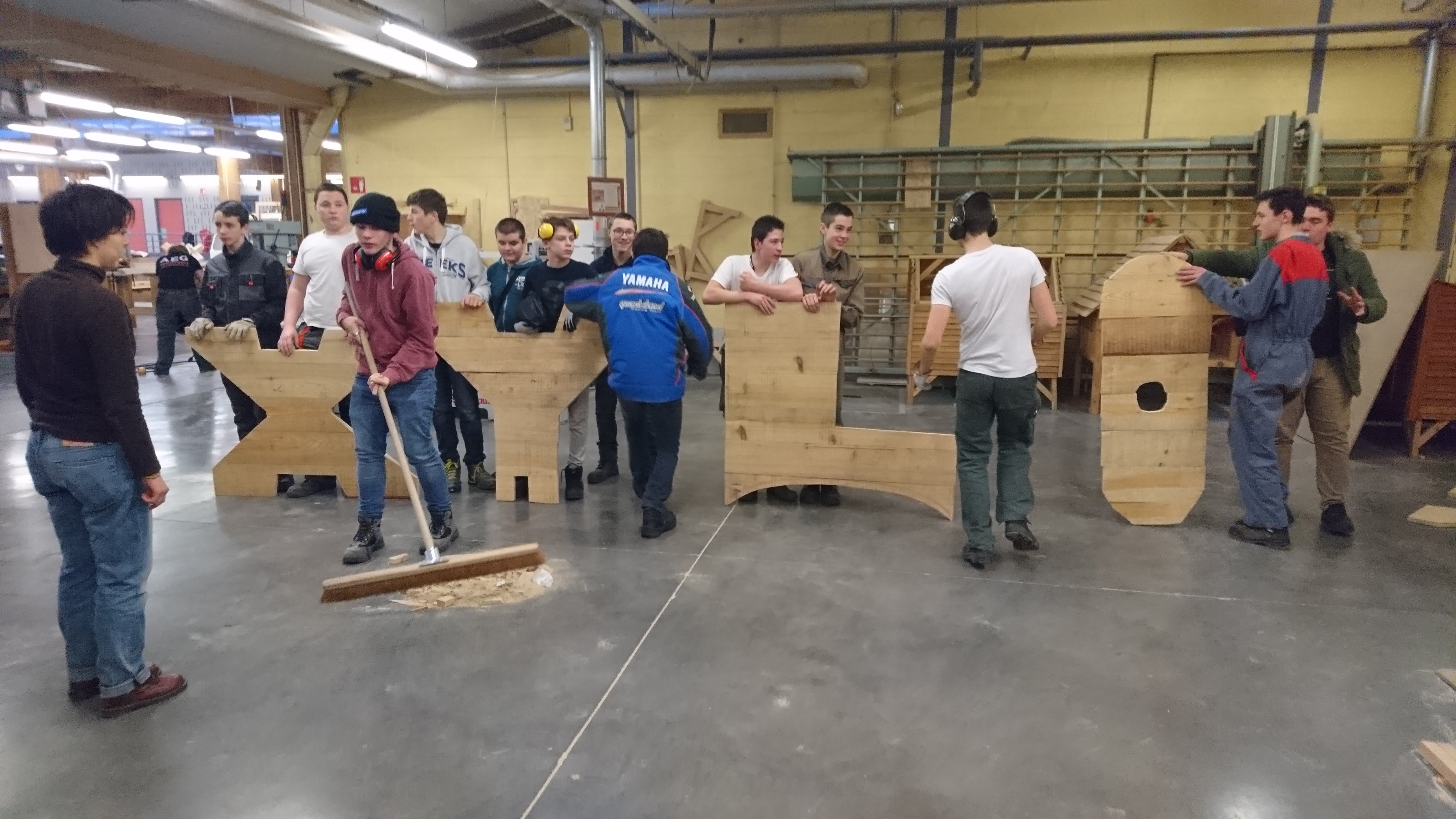 Les élèves de 3e et 4e PRÉPA PRO ont réalisés les 4 lettres du mot XYLO (BOIS en grec) en participant à l’élaboration de maquette en carton puis à la fabrication de ces sculptures typographiques en Douglas. Les planches ont été pré-débitées à la scierie pédagogique d’Envermeu pour être ensuite découpées et assemblées afin de composer le mot destiné à être présenté dans l’espace de la cours.